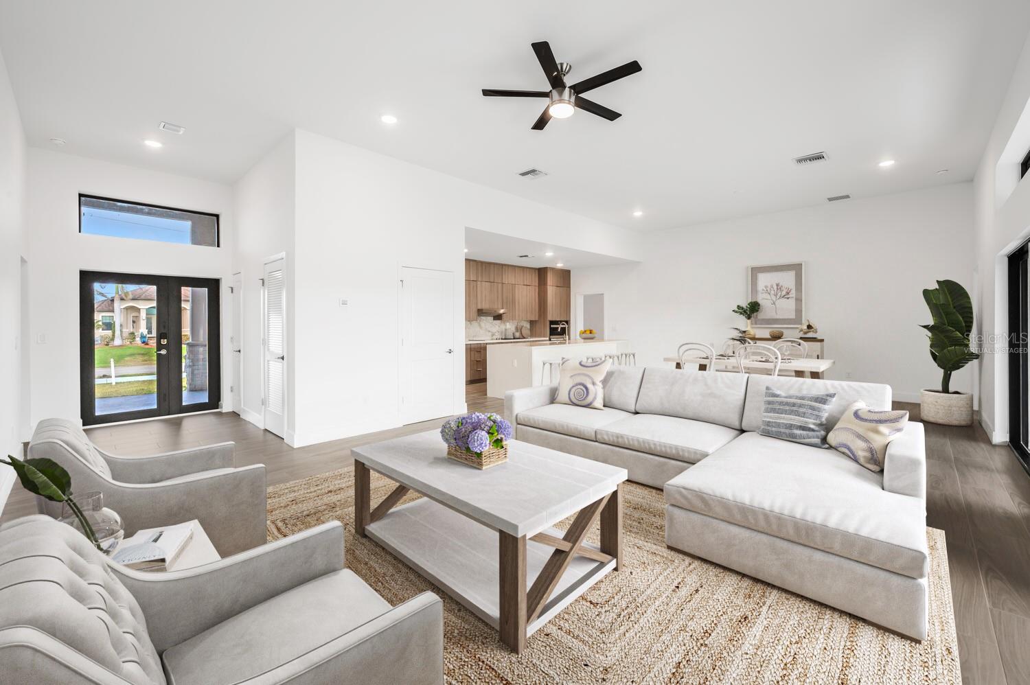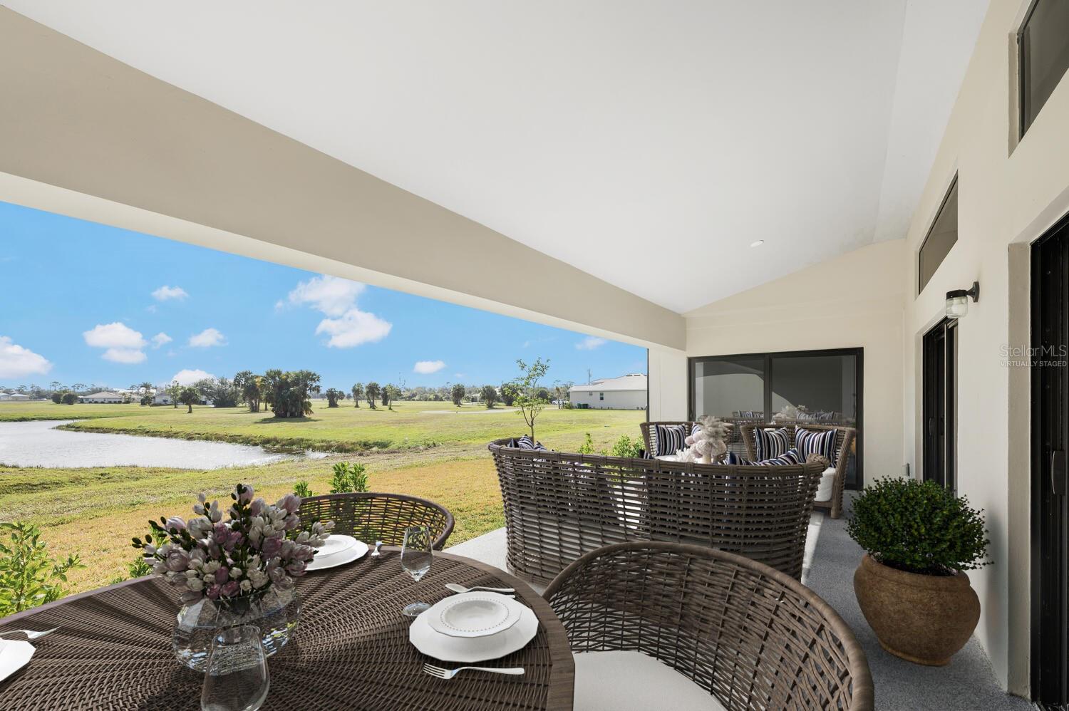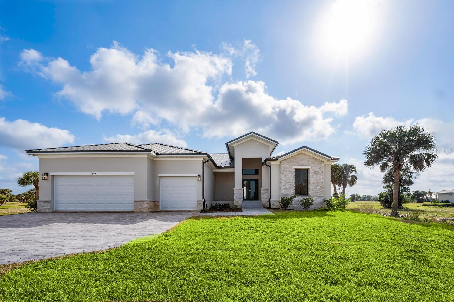 One or more photo(s) has been virtually staged. Welcome to your dream home! This beautifully designed 4 bedroom, 3 bathroom home in Burnt Store Lakes offers 2,351 sq. ft. of living space with an inviting open floor plan that seamlessly blends the kitchen, dining, and living areas—perfect for entertaining and everyday living. Explore the exclusive Onx Homes, crafted with our patented X+ Construction™, boasting pure concrete walls and elevated foundations, steel roof trusses, and high-impact windows and doors, ensuring a home that stands the test of time. With lofty ceilings and large windows inviting in abundant natural light and framing the breathtaking water views. The spacious interior offers porcelain tile flooring, a designer-style kitchen equipped with soft-close cabinets, quartz countertops, a generously sized island with seating, and abundant pantry space. All appliances are energy-efficient for added sustainability. The primary bathroom suite boasts beautiful porcelain flooring and walls, a luxurious combination of a spacious shower and freestanding soaking tub, a linen closet, and a generously sized walk-in closet. The split-bedroom floor plan ensures privacy and plenty of space for family and guests. Additionally, enjoy the convenience of a well-appointed laundry area with a washer and dryer, as well as a 3-car garage with an EV charger connection for your golf cart. Onx Homes offers closing cost credits or lower fixed interest rates to accommodate your needs. Burnt Store Lakes amenities include a community park on Spoonbill Lake with playground & restrooms plus a canoe/kayak launch on Bear Branch Creek with access to Charlotte Harbor. Enjoy a peaceful setting while maintaining access to all the area amenities including golf, boating, fishing, biking & so much more. Don't miss out on this incredible home—schedule your showing today!
