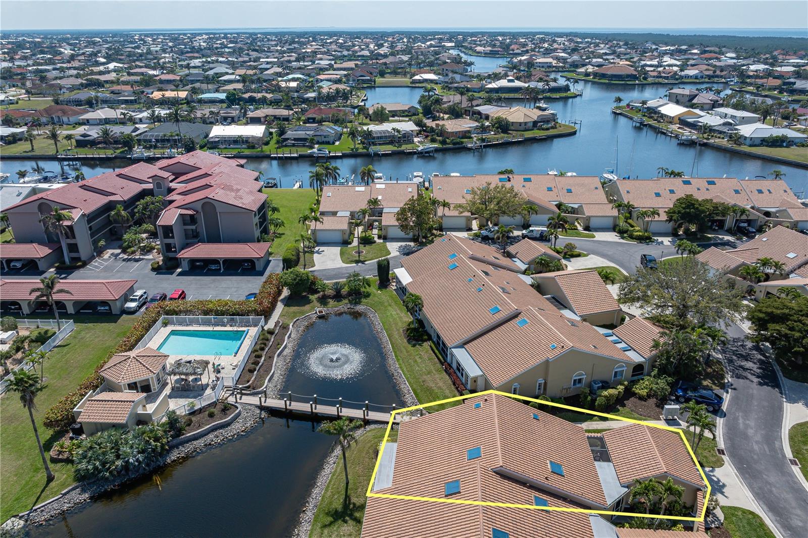 TURNKEY PGI VILLA AT MARINER'S COVE W/DEEDED DOCK & SAILBOAT ACCESS – Spacious 3 bed, 2 bath end-unit villa in Mariner’s Cove (Punta Gorda Isles), offers a stunning lake view & deeded dock with quick sailboat access to Charlotte Harbor. Inside, cathedral ceilings, skylights & a wall of new Florida room windows (installed 2019) fill the space with natural light. The open floor plan features a combined great room/dining area, oversized kitchen with walk-in pantry, & a private master suite with two walk-in closets & en-suite bath. Guest rooms share a full bath. Enjoy the serene lake view from the Florida room or relax on the tiled, screened front patio connecting the villa to a private two-car garage. Just a short walk to dock #13 with water & electric hookups—reach open water in under 10 minutes! Home is being sold with all furnishings and dishware. Other features include hurricane protection for windows. Community amenities include a heated pool, guest parking & lush, tropical landscaping. Your slice of paradise awaits! Association amenities include an in-ground pool, guest parking & beautifully-maintained, tropical landscaping creating a park-like setting throughout the community. Miles of sidewalks connect you to all parts of Punta Gorda Isles, to numerous parks, Fishermen's Village & even historic downtown Punta Gorda. Start enjoying the active lifestyle that awaits you here. Although, known for boating, Punta Gorda also boasts a lively art & music scene w/frequent weekend fairs & festivals. Start living the Florida dream here. Make an appointment today.