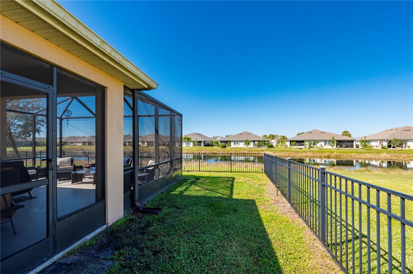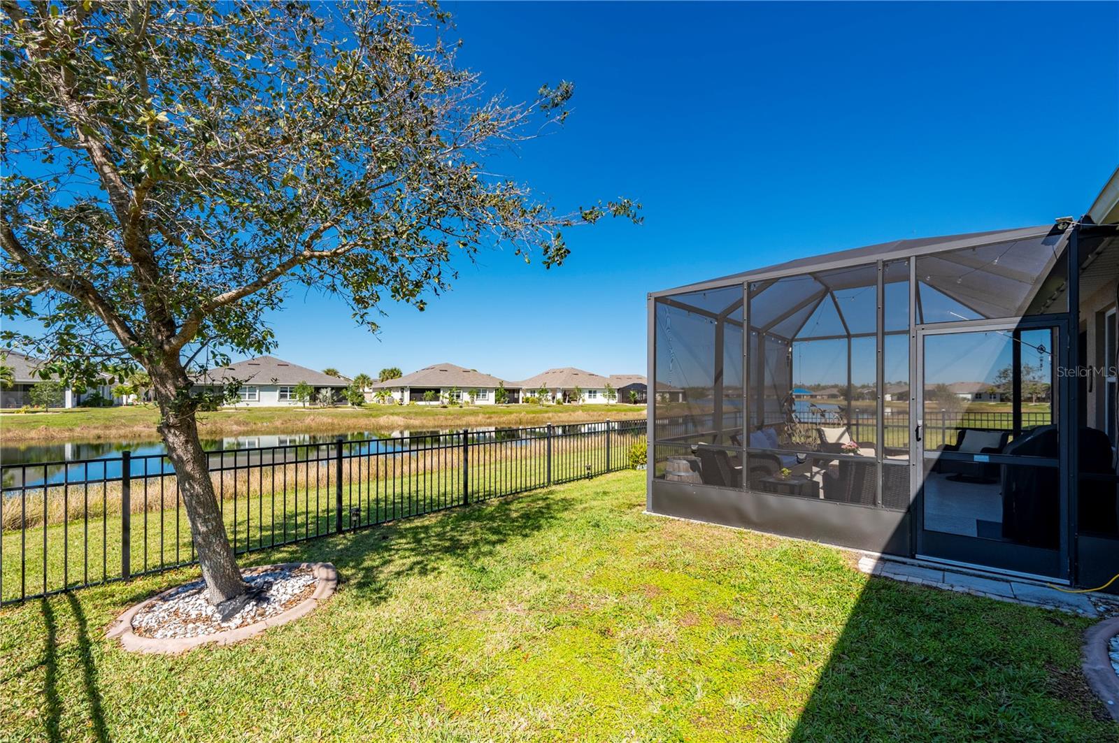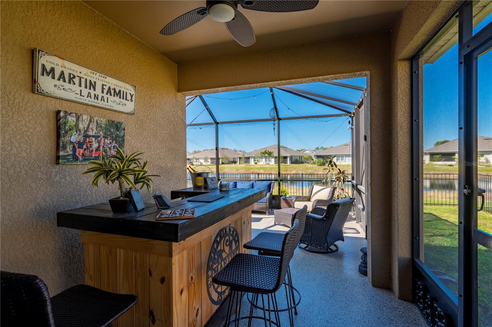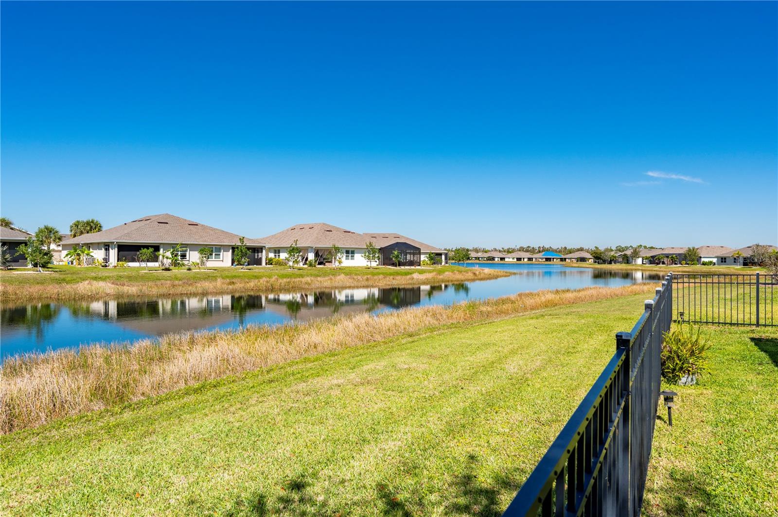 STUNNING LAKEFRONT HOME in WATERFORD ESTATES! Welcome to this beautifully updated 3-bedroom, 2-bathroom home in the highly sought-after gated community of Waterford Estates. This home offers a spacious and open split-floor plan, featuring luxury vinyl flooring and fresh carpet. The great room is filled with natural light and opens to an extended lanai with epoxy-finished floors, screening, and serene lake views—perfect for relaxing or entertaining. Enjoy 78 FEET of lake frontage and the convenience of a spacious fenced-in yard! The kitchen is a chef’s dream, boasting quartzite countertops, Samsung stainless steel appliances, a water softener, a reverse osmosis tank, a touchless faucet, and ample cabinet space. An eat-in dining area with bay windows overlooks the front yard, creating an inviting space for meals. The primary suite offers a true retreat boasting an en-suite bath featuring dual sinks, walk-in closet with built-in shelving, a linen closet, and a walk-in shower. Two additional guest bedrooms provide comfortable accommodations for family and visitors. The laundry room is thoughtfully designed with barn doors, built-in shelving, and LG appliances. Step outside to your fenced backyard oasis, where you can enjoy peaceful water views from your generous 14x20 sized lanai. Additional upgrades include a re-roof in 2022, gutters, and a screened front entry. Living in Waterford Estates means access to resort-style amenities, including two heated community pools, pickleball and bocce ball courts, and a clubhouse with a fitness center, billiards, and a card room. Ideally located near I-75 and Punta Gorda Airport, this home is minutes from historic downtown Punta Gorda, offering easy access to shopping, dining, entertainment, and scenic walking/biking paths. Don't miss your chance to own this exceptional lakefront home in one of Punta Gorda’s premier communities. Schedule your private showing today!