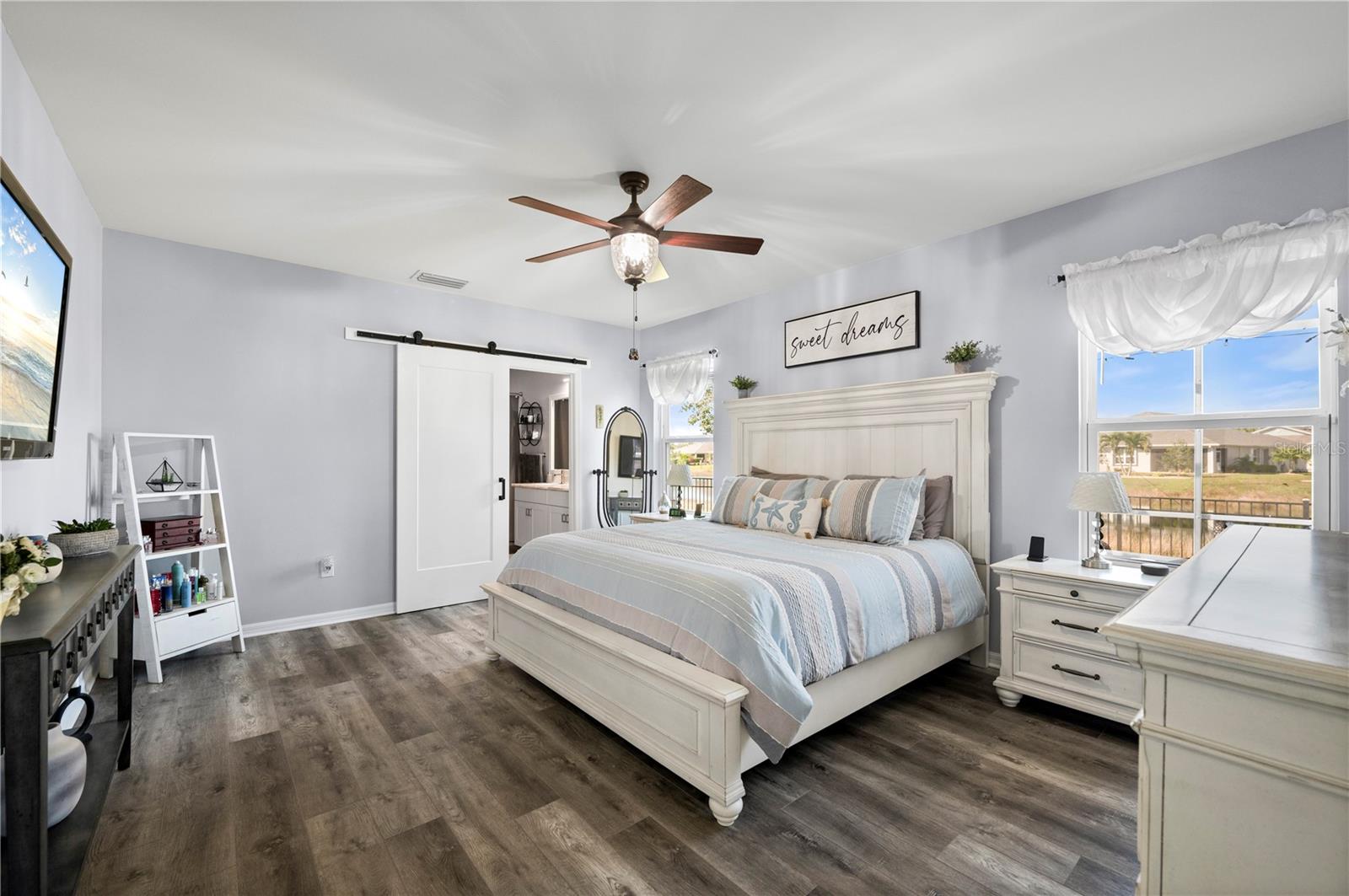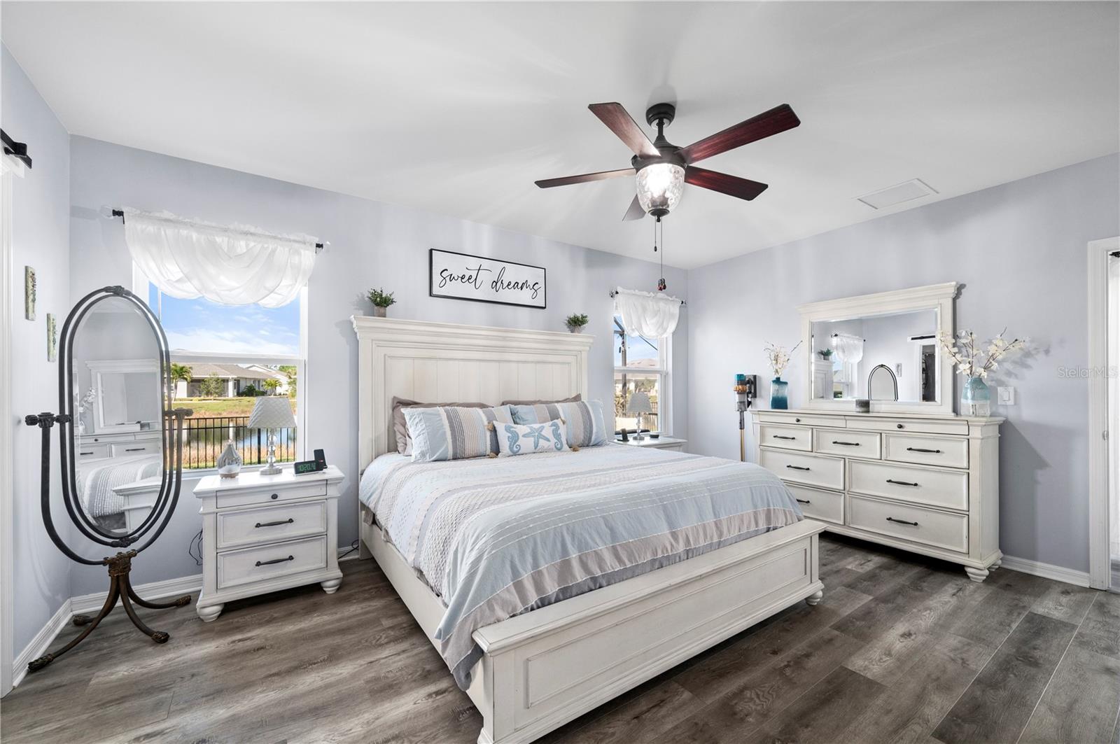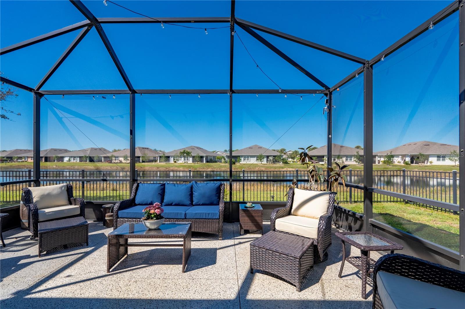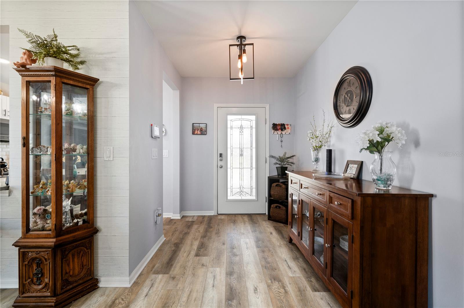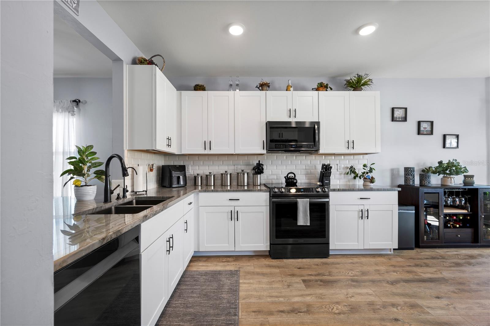 STUNNING LAKEFRONT HOME in WATERFORD ESTATES! Welcome to this beautifully updated 3-bedroom, 2-bathroom home in the highly sought-after gated community of Waterford Estates. This home offers a spacious and open split-floor plan, featuring luxury vinyl flooring and fresh carpet. The great room is filled with natural light and opens to an extended lanai with epoxy-finished floors, screening, and serene lake views—perfect for relaxing or entertaining. Enjoy 78 FEET of lake frontage and the convenience of a spacious fenced-in yard! The kitchen is a chef’s dream, boasting quartzite countertops, Samsung stainless steel appliances, a water softener, a reverse osmosis tank, a touchless faucet, and ample cabinet space. An eat-in dining area with bay windows overlooks the front yard, creating an inviting space for meals. The primary suite offers a true retreat boasting an en-suite bath featuring dual sinks, walk-in closet with built-in shelving, a linen closet, and a walk-in shower. Two additional guest bedrooms provide comfortable accommodations for family and visitors. The laundry room is thoughtfully designed with barn doors, built-in shelving, and LG appliances. Step outside to your fenced backyard oasis, where you can enjoy peaceful water views from your generous 14x20 sized lanai. Additional upgrades include a re-roof in 2022, gutters, and a screened front entry. Living in Waterford Estates means access to resort-style amenities, including two heated community pools, pickleball and bocce ball courts, and a clubhouse with a fitness center, billiards, and a card room. Ideally located near I-75 and Punta Gorda Airport, this home is minutes from historic downtown Punta Gorda, offering easy access to shopping, dining, entertainment, and scenic walking/biking paths. Don't miss your chance to own this exceptional lakefront home in one of Punta Gorda’s premier communities. Schedule your private showing today!