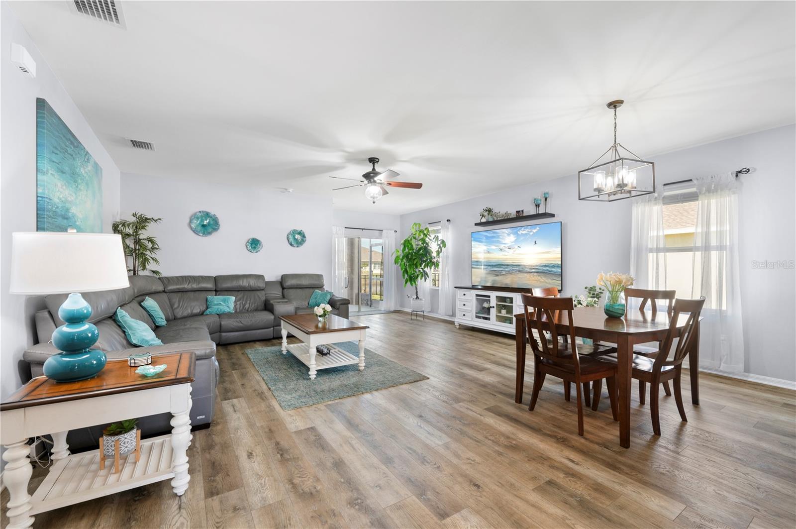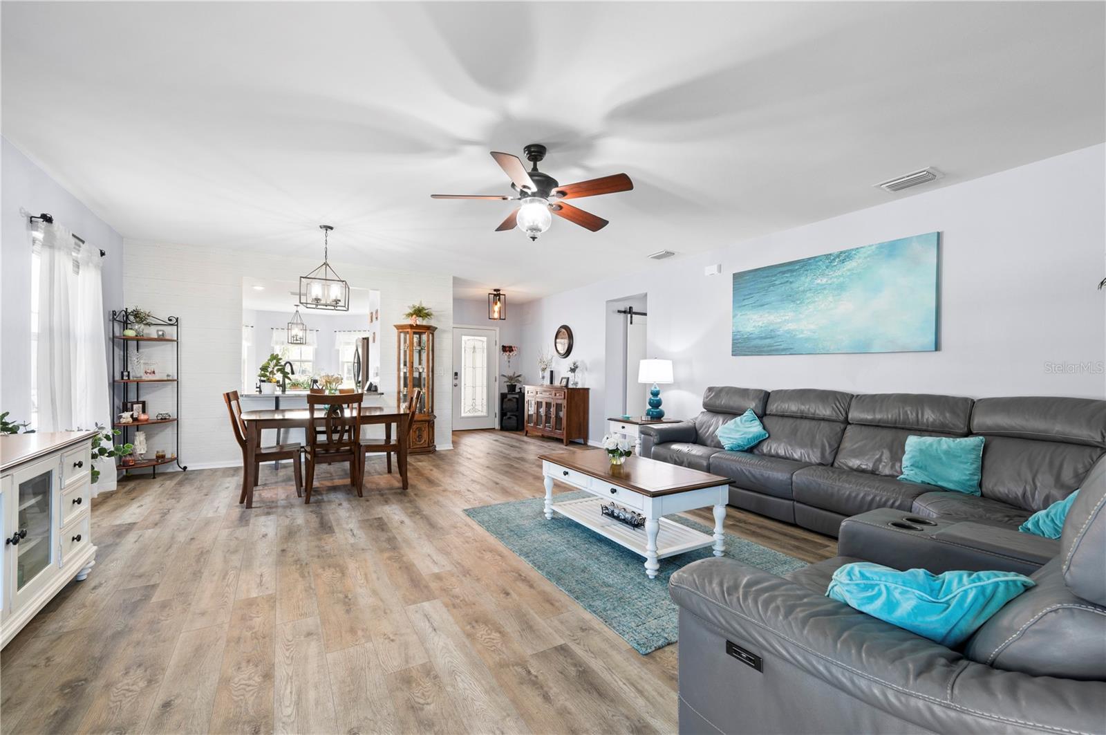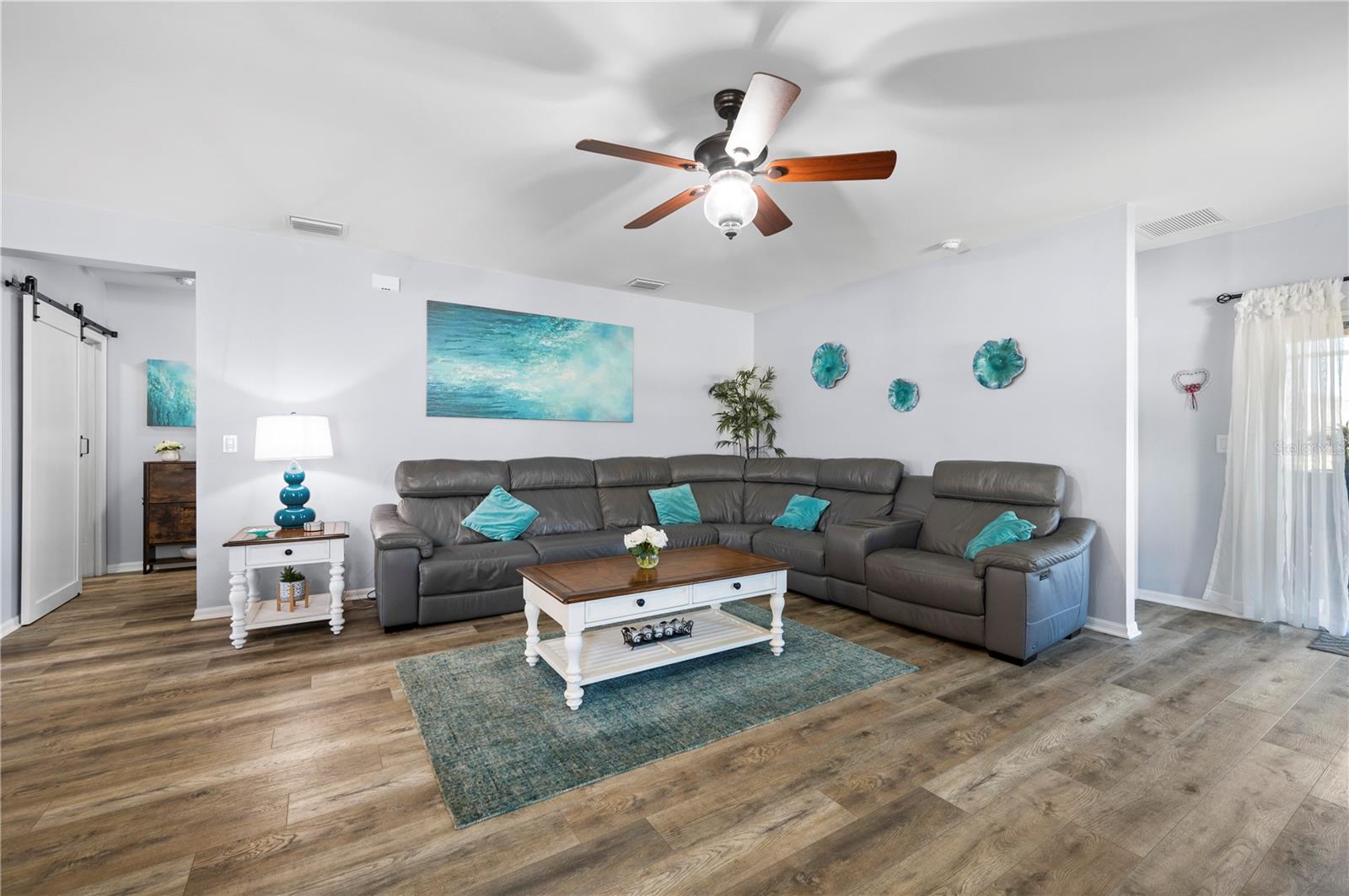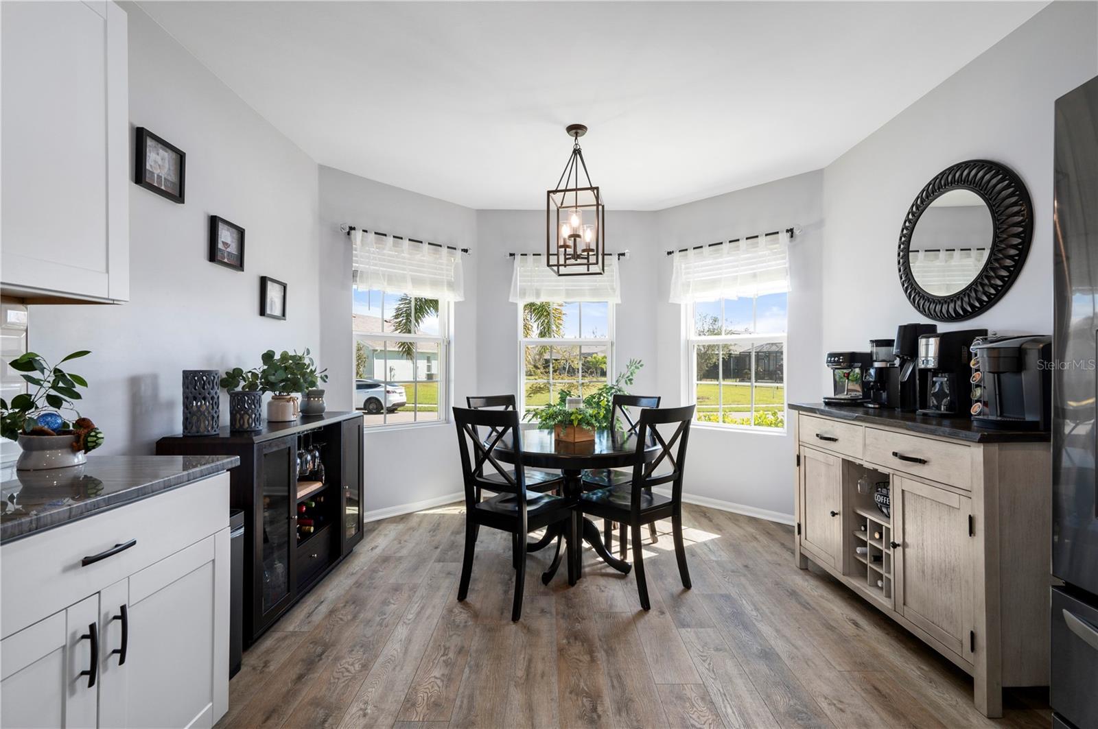 STUNNING LAKEFRONT HOME in WATERFORD ESTATES! Welcome to this beautifully updated 3-bedroom, 2-bathroom home in the highly sought-after gated community of Waterford Estates. This home offers a spacious and open split-floor plan, featuring luxury vinyl flooring and fresh carpet. The great room is filled with natural light and opens to an extended lanai with epoxy-finished floors, screening, and serene lake views—perfect for relaxing or entertaining. Enjoy 78 FEET of lake frontage and the convenience of a spacious fenced-in yard! The kitchen is a chef’s dream, boasting quartzite countertops, Samsung stainless steel appliances, a water softener, a reverse osmosis tank, a touchless faucet, and ample cabinet space. An eat-in dining area with bay windows overlooks the front yard, creating an inviting space for meals. The primary suite offers a true retreat boasting an en-suite bath featuring dual sinks, walk-in closet with built-in shelving, a linen closet, and a walk-in shower. Two additional guest bedrooms provide comfortable accommodations for family and visitors. The laundry room is thoughtfully designed with barn doors, built-in shelving, and LG appliances. Step outside to your fenced backyard oasis, where you can enjoy peaceful water views from your generous 14x20 sized lanai. Additional upgrades include a re-roof in 2022, gutters, and a screened front entry. Living in Waterford Estates means access to resort-style amenities, including two heated community pools, pickleball and bocce ball courts, and a clubhouse with a fitness center, billiards, and a card room. Ideally located near I-75 and Punta Gorda Airport, this home is minutes from historic downtown Punta Gorda, offering easy access to shopping, dining, entertainment, and scenic walking/biking paths. Don't miss your chance to own this exceptional lakefront home in one of Punta Gorda’s premier communities. Schedule your private showing today!