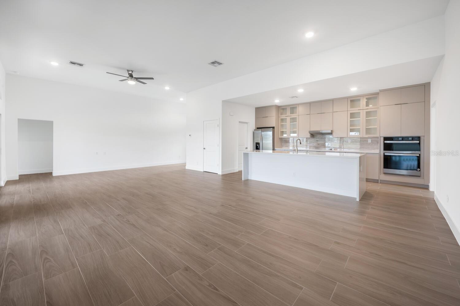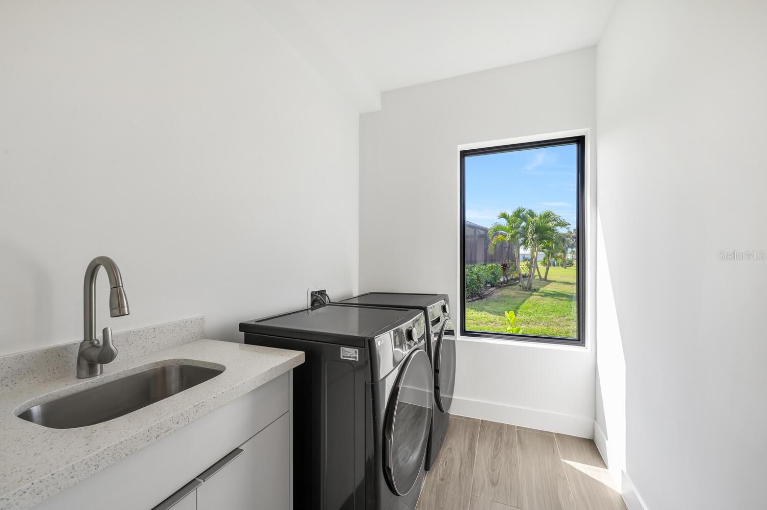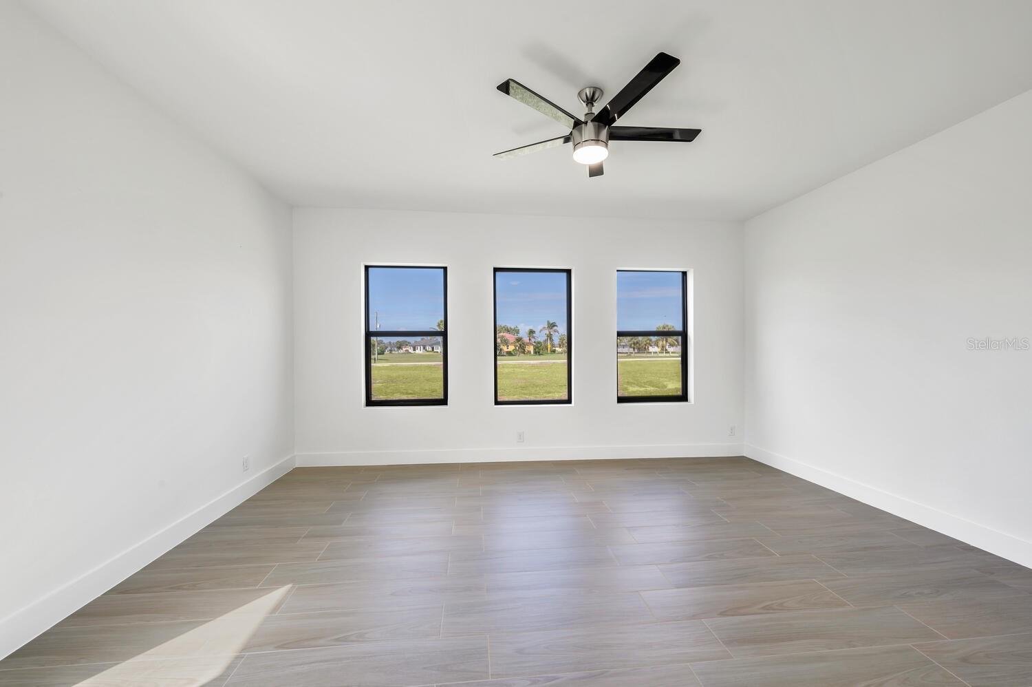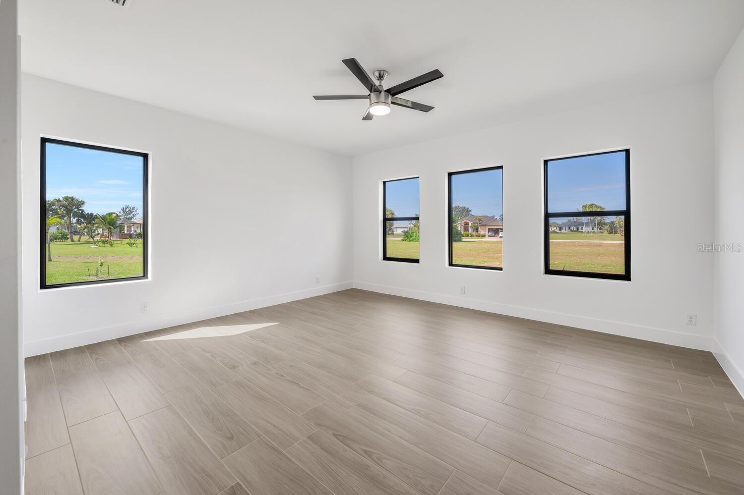 This exceptional new construction home, built by OnX Homes, is move-in ready and offers an unparalleled blend of luxury, durability, and energy efficiency. From the moment you arrive, the striking stone facade, sleek metal roof, and lush landscaping create a captivating first impression, setting the tone for the elegance within. Step inside to discover gorgeous, modern porcelain tile floors throughout and soaring 12’ ceilings that enhance the sense of space and grandeur. The open floor plan is designed for both comfort and functionality, with two sets of impact-resistant sliding doors that flood the home with natural light and seamlessly connect indoor and outdoor living. At the heart of the home, the sleek Euro-style kitchen is a true showpiece, offering a sprawling quartz island with a waterfall edge, a full backsplash, and Whirlpool stainless steel appliances, including a wall oven and cooktop. A walk-in pantry ensures ample storage, while glass-fronted display cabinets add a touch of elegance. The primary suite serves as a private sanctuary, featuring a spa-like ensuite bath with dual vanities, a free-standing tub, a glass-enclosed shower, and a spacious walk-in closet. Three additional bedrooms offer plenty of flexibility for family, guests, or a dedicated office or fitness space. A large in-residence laundry room with a utility sink and additional storage adds convenience. The three-car garage stands out with its epoxy floors and built-in EV plug, providing ample space for vehicles, storage, and charging capabilities. Built with OnX Homes’ patented technology, this home is engineered for superior durability and energy efficiency. Insulated concrete walls and ceilings, a reinforced stem wall foundation, double impact-resistant windows, and LGS trusses provide storm protection up to 175 mph winds. Sustainability is a priority, with Energy Star-rated appliances, thermal insulation, and a smart HVAC system ensuring year-round comfort and efficiency. Nestled within the deed-restricted community of Burnt Store Lakes, residents enjoy picturesque lakes, lush green spaces, and an array of outdoor amenities. Spend your days exploring the community kayak launch, enjoying a scenic park with a pavilion, or gathering with neighbors at the playground and picnic areas. Whether you're looking for tranquility or an active lifestyle, this sought-after community offers the perfect balance of both. Don’t miss the opportunity to own this incredible, move-in-ready home!