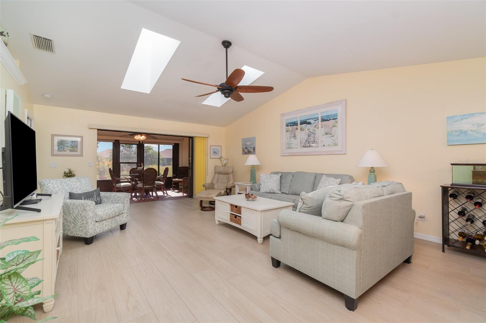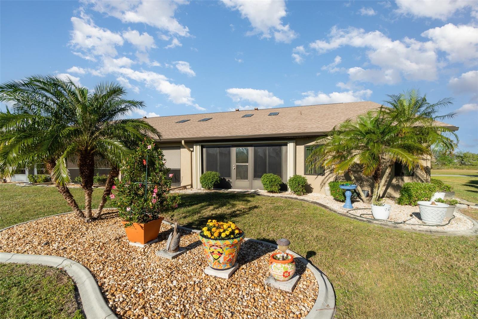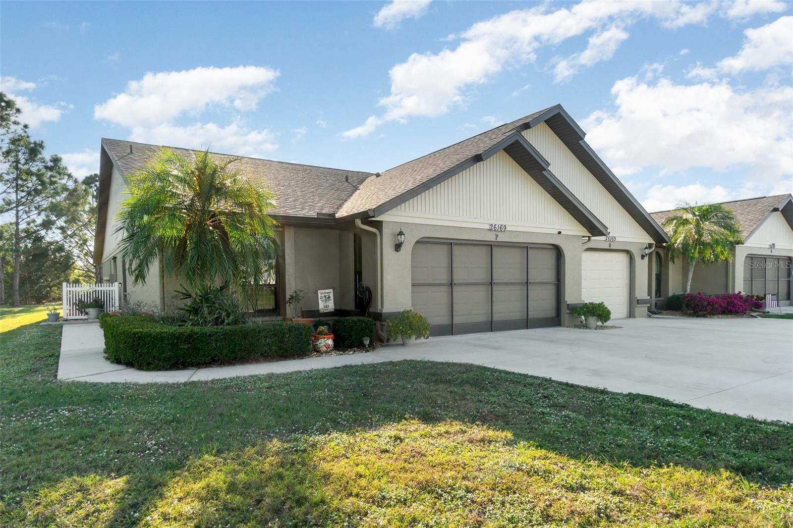 TURN-KEY END-UNIT 2 Bedroom, 2 Bathroom, 2 Car Garage Villa with a flex floor plan to include a home office, located in the Pine View Villas a 55+ community in the heart of Deep Creek . CLICK ON THE VIRTUAL TOUR LINK 1 FOR THE VIDEO AND VIRTUAL LINK 2 FOR THE 3D TOUR. Featuring a bright & airy floor plan, porcelain tile flooring in the main living areas, vaulted ceilings, skylights, and MUCH MORE! An inviting dining area seamlessly flows into a spacious living room, creating the perfect layout for entertaining and everyday living. The dining room offers ample space for hosting gatherings, while the adjoining living room provides a warm and expansive setting for relaxation. The kitchen offers ALL Stainless-steel appliances, granite countertops, tile backsplash, wood cabinets with under-cabinet lighting, a tray ceiling with a ceiling fan, and a breakfast counter. The spacious master bedroom features a built-in closet and a private en-suite bathroom with a linen closet, and a tiled walk-in shower. Adjacent to the master, is a versatile office space that offers endless possibilities — perfect for work, relaxation, or easily converted into a third bedroom with the option to close it off for added privacy. The guest bedroom has a built-in closet and a private en-suite bathroom with a shower/tub combo and an oversized vanity with plenty of storage space. Expand your living and entertaining space with the Florida room where you can sip your morning coffee or unwind with your favorite evening beverage while enjoying the beautiful Florida weather. 2023 ROOF - 2024 WHOLE HOME GENERATOR TRANSFER BOX INSTALLED - 12K DUAL FUEL WHOLE HOME GENERATOR - 2024 WATER HEATER - 2022 ELECTRIC CIRCUIT BREAKER PANEL REPLACED - 2022 UPDATED PORCELAIN TILE - HURRICANE IMPACT WINDOWS & DOORS + SHUTTERS - REINFORCED GARAGE DOOR. Please see attached exclusion list for excluded items. The Pine View Villas community has a community pool & spa. Deep Creek is a growing, deed-restricted community with a semi-private golf course, playground, tennis court, basketball court & miles of sidewalks. Schedule your showing TODAY!