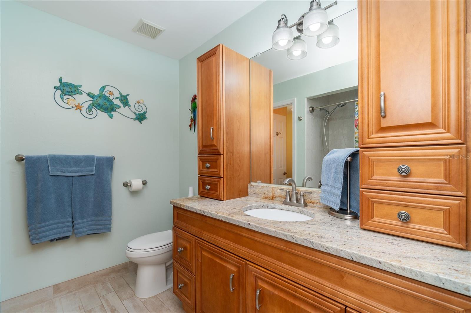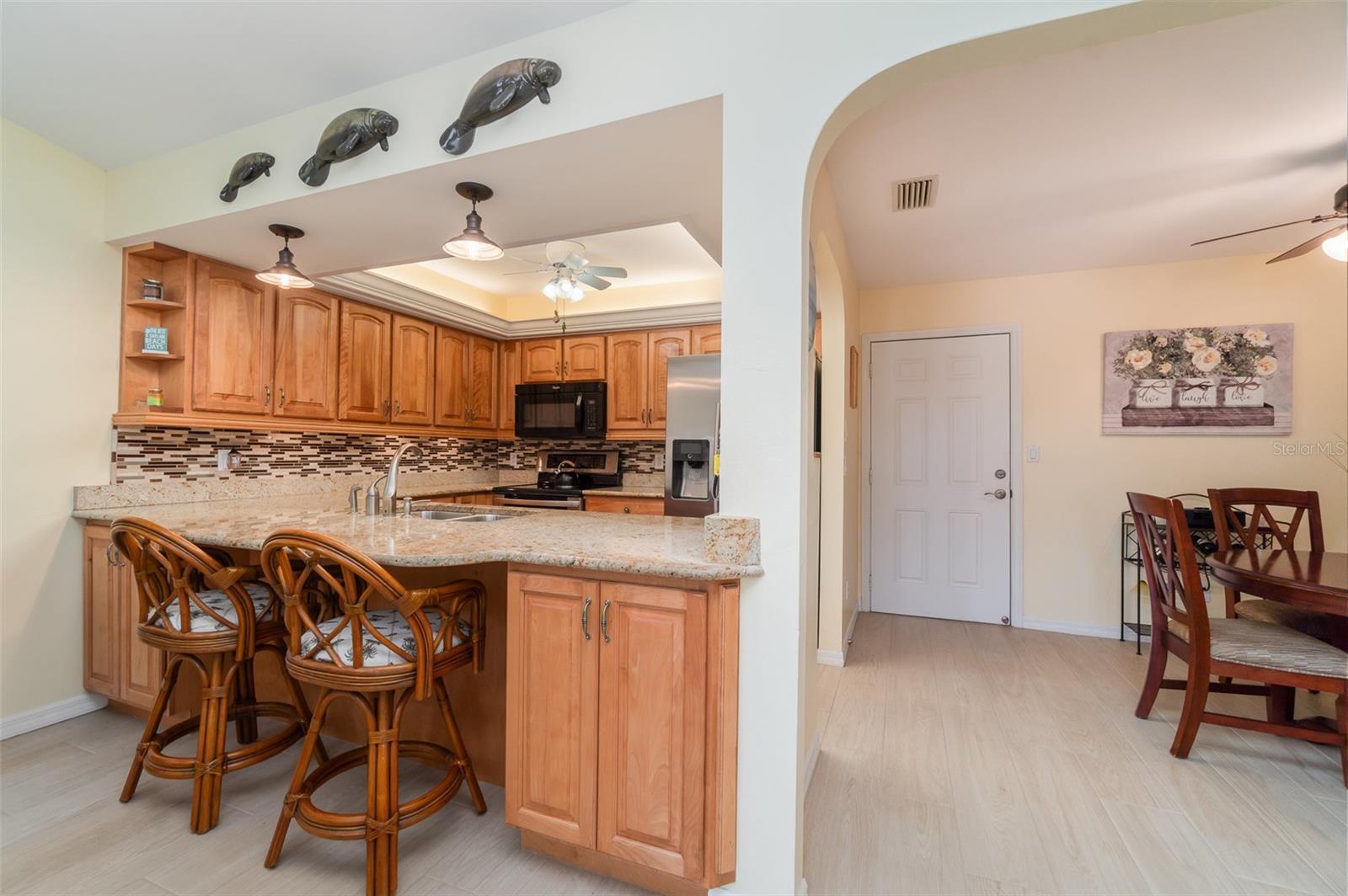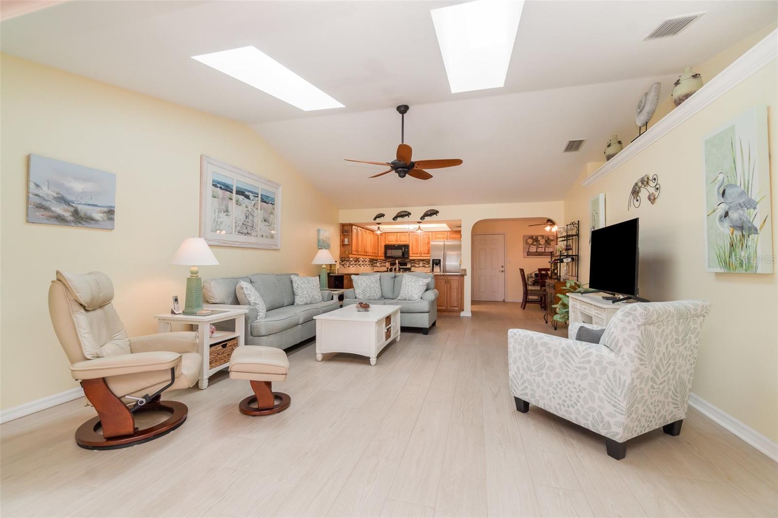 TURN-KEY END-UNIT 2 Bedroom, 2 Bathroom, 2 Car Garage Villa with a flex floor plan to include a home office, located in the Pine View Villas a 55+ community in the heart of Deep Creek . CLICK ON THE VIRTUAL TOUR LINK 1 FOR THE VIDEO AND VIRTUAL LINK 2 FOR THE 3D TOUR. Featuring a bright & airy floor plan, porcelain tile flooring in the main living areas, vaulted ceilings, skylights, and MUCH MORE! An inviting dining area seamlessly flows into a spacious living room, creating the perfect layout for entertaining and everyday living. The dining room offers ample space for hosting gatherings, while the adjoining living room provides a warm and expansive setting for relaxation. The kitchen offers ALL Stainless-steel appliances, granite countertops, tile backsplash, wood cabinets with under-cabinet lighting, a tray ceiling with a ceiling fan, and a breakfast counter. The spacious master bedroom features a built-in closet and a private en-suite bathroom with a linen closet, and a tiled walk-in shower. Adjacent to the master, is a versatile office space that offers endless possibilities — perfect for work, relaxation, or easily converted into a third bedroom with the option to close it off for added privacy. The guest bedroom has a built-in closet and a private en-suite bathroom with a shower/tub combo and an oversized vanity with plenty of storage space. Expand your living and entertaining space with the Florida room where you can sip your morning coffee or unwind with your favorite evening beverage while enjoying the beautiful Florida weather. 2023 ROOF - 2024 WHOLE HOME GENERATOR TRANSFER BOX INSTALLED - 12K DUAL FUEL WHOLE HOME GENERATOR - 2024 WATER HEATER - 2022 ELECTRIC CIRCUIT BREAKER PANEL REPLACED - 2022 UPDATED PORCELAIN TILE - HURRICANE IMPACT WINDOWS & DOORS + SHUTTERS - REINFORCED GARAGE DOOR. Please see attached exclusion list for excluded items. The Pine View Villas community has a community pool & spa. Deep Creek is a growing, deed-restricted community with a semi-private golf course, playground, tennis court, basketball court & miles of sidewalks. Schedule your showing TODAY!