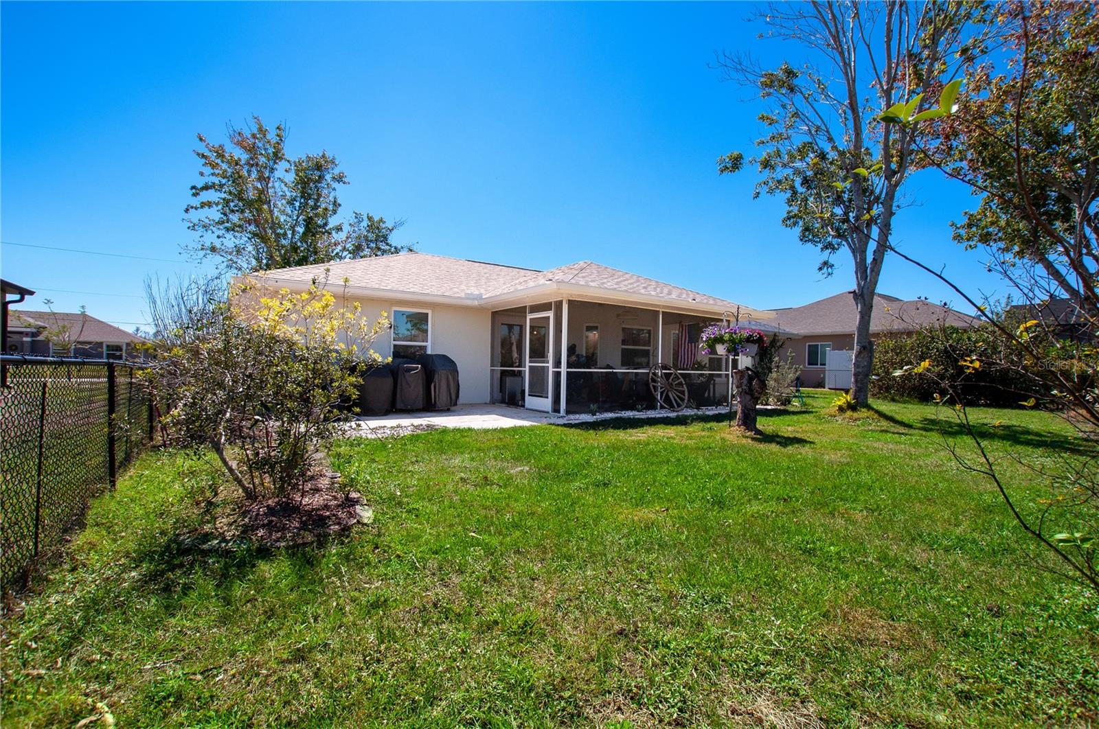 *BACK ON THE MARKET, Due to no fault of its own!* Welcome to Your Punta Gorda Happy Place! Looking for a home that’s updated, clean, and low-maintenance so you can actually enjoy Florida living? You’ve found it! This beautifully landscaped, private yard oasis sits high and dry in a non-flood zone with no damage from recent storms—giving you peace of mind before you even unpack. You’ll love the bright, updated feel throughout, perfect for cozy mornings and breezy Florida evenings. Enjoy brand new windows, brand new AC, and a newer roof, meaning all the big stuff is done! Just bring your toothbrush and your sunglasses and move right in. No pool? No problem! This spacious yard has plenty of room for your dream pool while still leaving green space for pets, play, and entertaining under the palms. The back screened in porch is a place you will find connection and serenity with nature. Local scrub jays and cardinals frequent the area not to mention the tortoises who frolic in the abundances of green space in deep creek. You will have a sense of connection with nature while having all the modern conveniences of living in suburbia. This Fully fenced yard allows for safety of your pets or small children. Privacy, you got it! With well planned out landscape that is easy to maintain but beautiful. But proceed with caution you may never want to leave this home. Location? Perfect! You’re just a short drive to beautiful Gulf beaches, with easy access to I-75 for downtown Punta Gorda and Port Charlotte, not to mention world-class fishing in Charlotte Harbor. Like to golf? Beautiful golf course conveniently located in deep creek with many more courses just a short drive away. Deep creek offers pickle ball, tennis and basketball courts nearby. This location has endless recreational activities year-round thanks to Florida’s sunshine and perfect weather Whether you’re a snowbird ready for sunshine or looking for your forever Florida home, this property lets you live your Punta Gorda dream without the stress of renovations. Clean, updated, and ready to go—your move-in-ready slice of Florida paradise awaits!