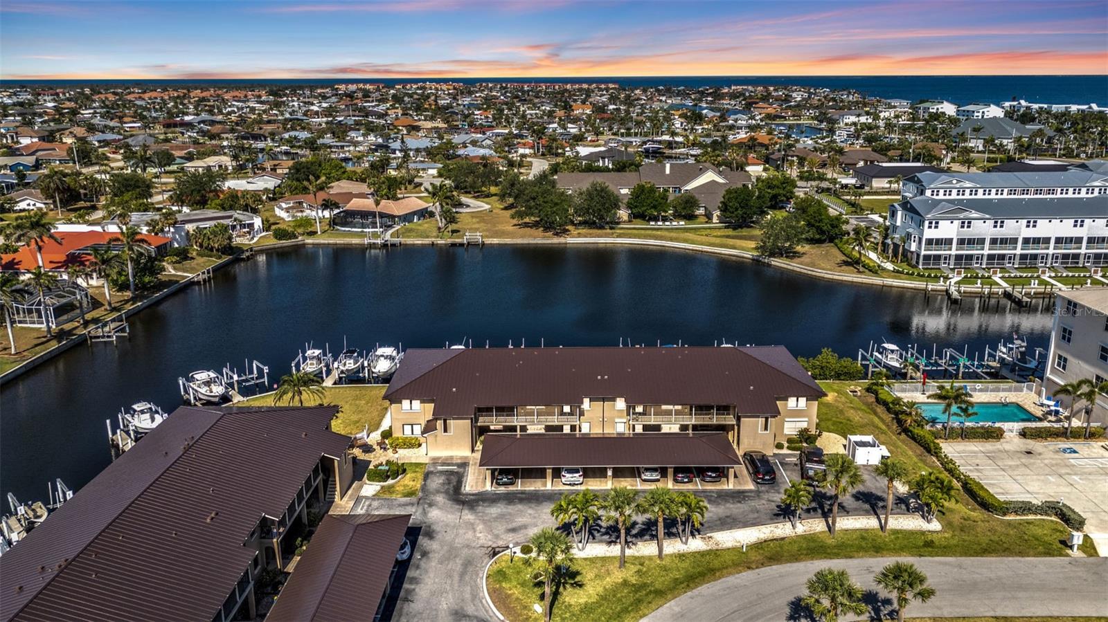 Location, location, location! Check out this 2-bedroom 2-bathroom ground floor wide-canal front condo located in the desirable Sea Isles Condo complex in Punta Gorda Isles. This unit has a dock located just steps away from your back door! The condo comes partially furnished and has an open split floor plan that is perfect for entertaining guests. The large primary bedroom has a walk-in closet, and an en-suite bathroom equipped with a shower. The guest bedroom has ample space, and the guest bathroom is equipped with a shower tub combo. Wake up each morning and walk over to the heated pool where you can dip your toes or go for a morning swim, or you can sit on your lanai and enjoy the water views or watch amazing sunsets in the evening with your favorite beverage. Additional features include impact windows, AC system just replaced in 2025, Roof replaced 2025, Electric panel was recently installed and brought up to code, indoor laundry room with full size washer and dryer, fridge and oven replaced in 2023, lanai has a large storage area, and all units are now getting new roofs. This condo had no damage from Hurricanes Milton and Helene and is ready for you to add your personal touches. Perfect location…. You will have quick access by boat to Charlotte Harbor and you are just blocks away from Fisherman’s Village, shopping and local restaurants. This complex is just minutes away from downtown Punta Gorda, the military museum, public library, parks and walking and bicycle paths. Don’t miss the opportunity to enjoy your own little piece of paradise! This is building 4, unit #412.