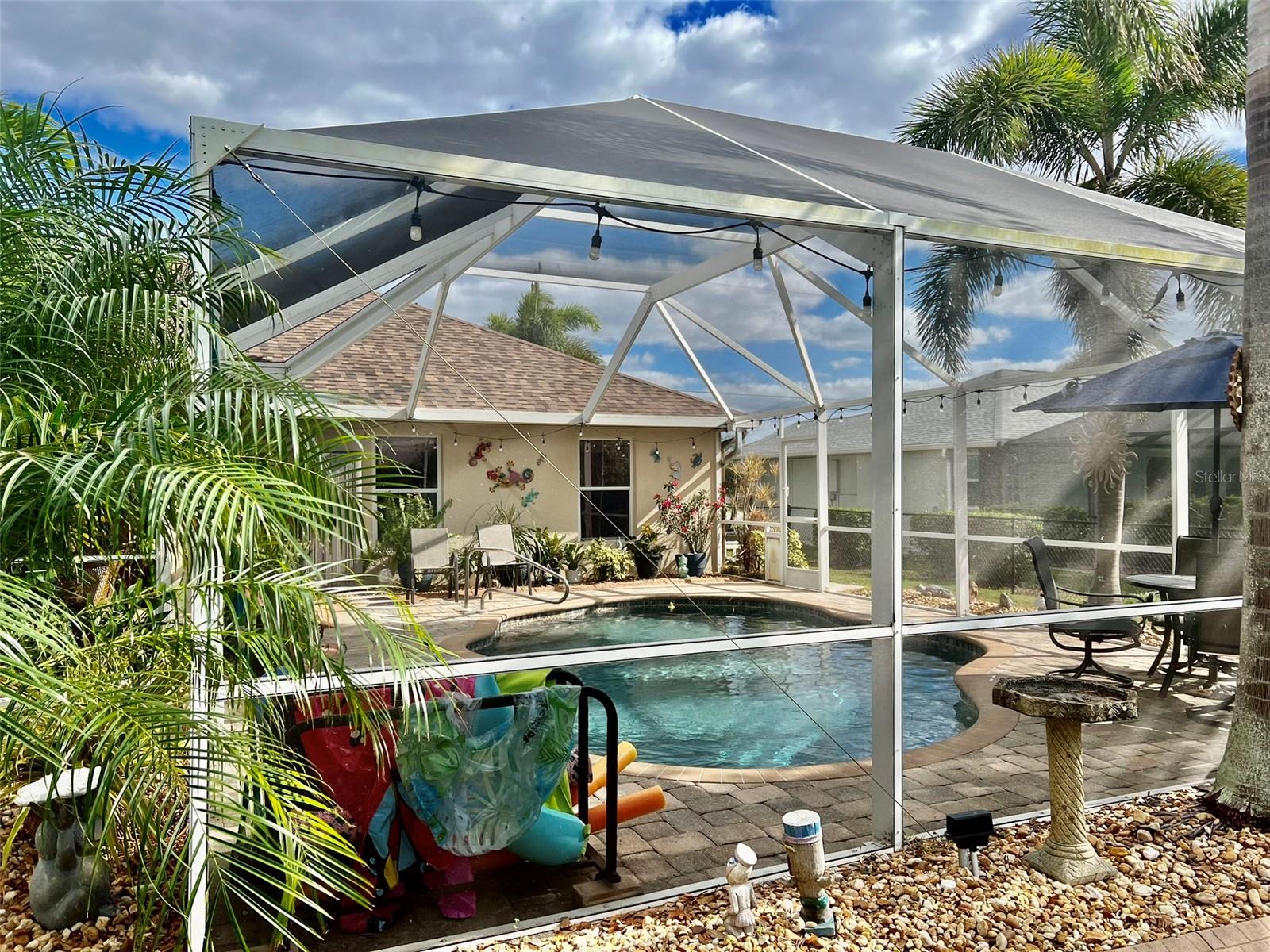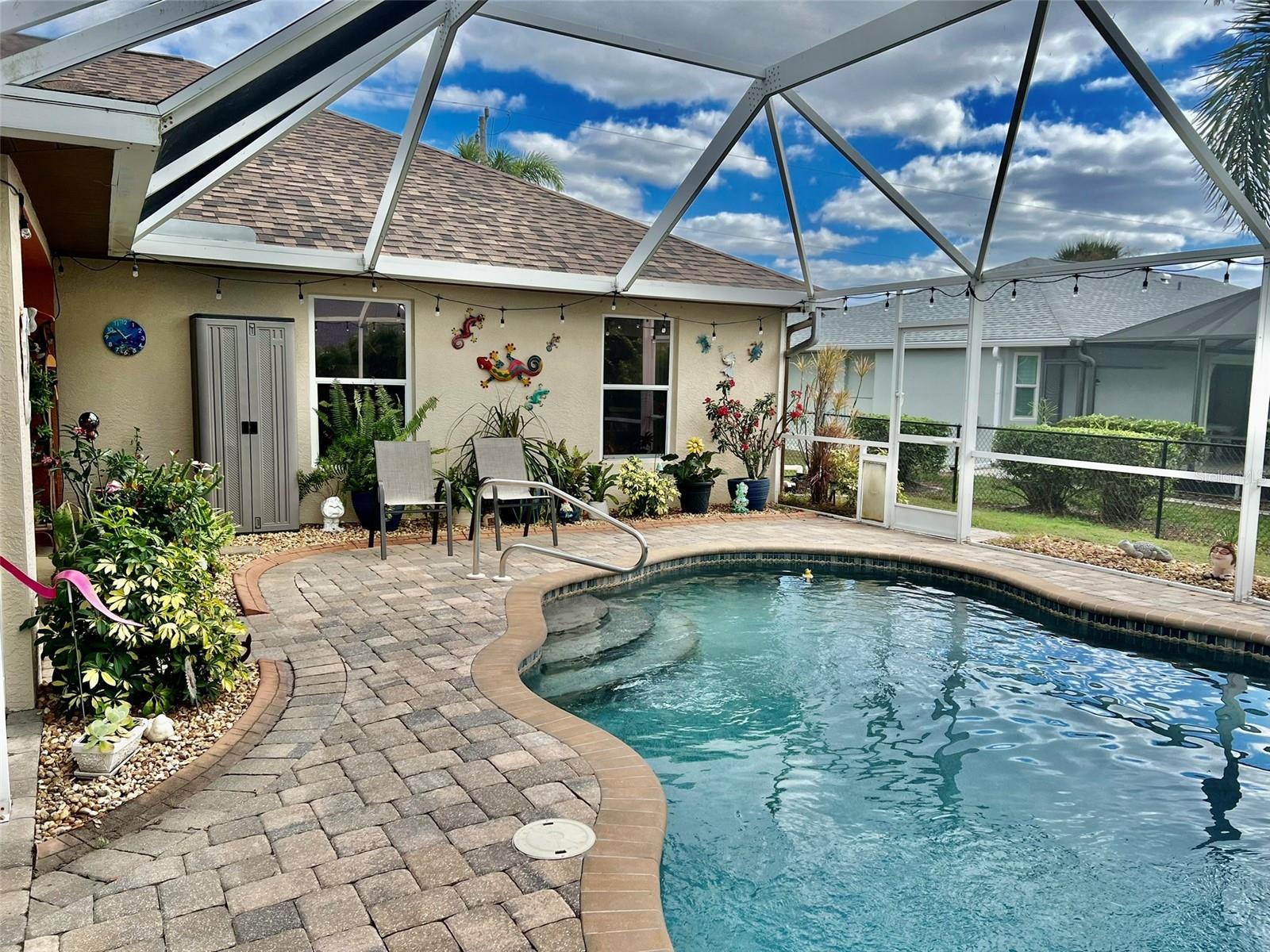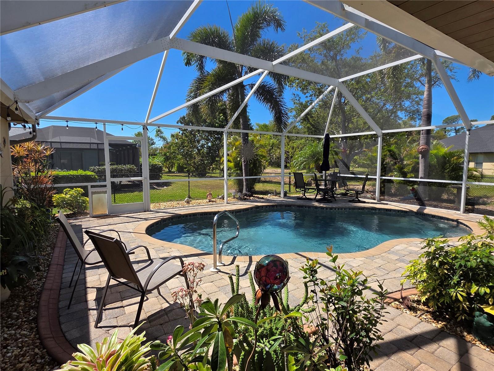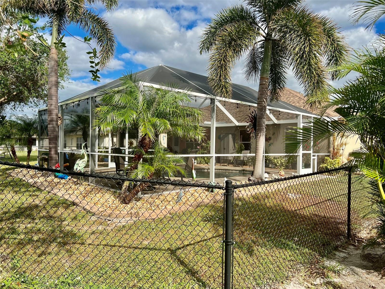 The perfect Florida retreat you've been searching for! Just about everything is new or almost new! This beautifully updated 3-bedroom, 2-bathroom pool home with an attached 2-car garage is situated on a terrific lot in the highly sought-after deed-restricted community of Deep Creek in Punta Gorda with a nice greenbelt view. With over 1600 square feet of living area, this spacious residence offers the perfect blend of modern updates, thoughtful design – highly sought after split bedroom floor plan, serene outdoor living, and is equipped with a generator. As you approach, you’ll be greeted by a nicely manicured lawn, lush landscaping and fully fenced side and rear yard. Inside, the home boasts a desirable Open Split Bedroom Floor Plan with soaring cathedral ceilings, creating an inviting and airy atmosphere throughout. The home's seamless flow opens to a beautiful lanai/pool area, ideal for embracing the coveted Florida lifestyle. The lush landscaping provides privacy, as well as tranquility. The kitchen has everything you can expect, featuring beautiful Corian counters and stainless steel appliances. The home’s flooring has been updated with stunning Luxury Vinyl Plank, providing a modern and elegant feel. The primary suite is a serene retreat, offering a pool and lanai view with an en-suite. Two additional bedrooms offer plenty of space for family, guests, or even a home office. These rooms are also equipped with large closets, and they share a beautifully appointed full bathroom. Step outside to your own private oasis, where you can soak up the Florida sunshine by the sparkling heated pool or relax on your private covered lanai while enjoying the peaceful view. The original full panel glass door to the lanai without a doggy door is in the garage. Additional features include a new roof, hurricane shutters, new lighting fixtures and ceiling fans, added insulation, window tinting/coating with lifetime warranty for energy saving and hurricane protection, etc. ***Great location just minutes to some of Florida’s best GOLFING, DINING, SHOPPING, PARKS, PUBLIC BOAT RAMPS, MARINAS AND BEACHES, as well as I-75, a short drive to the mall, to the Barrier Islands of Manasota Key and Boca Grande & 15 minutes to the Historic Riverfront Downtown Punta Gorda, Harbour Walk & Fishermen’s Village *** Step out of your door and go play golf at Deep Creek Golf course or go boating at Harbour Heights boat launch *** All measurements are approximate & should not be relied upon. Note: Cabinet at pool and mounted televisions are excluded from sale. All screens for windows are stored at the house and have only been removed for an improved view.