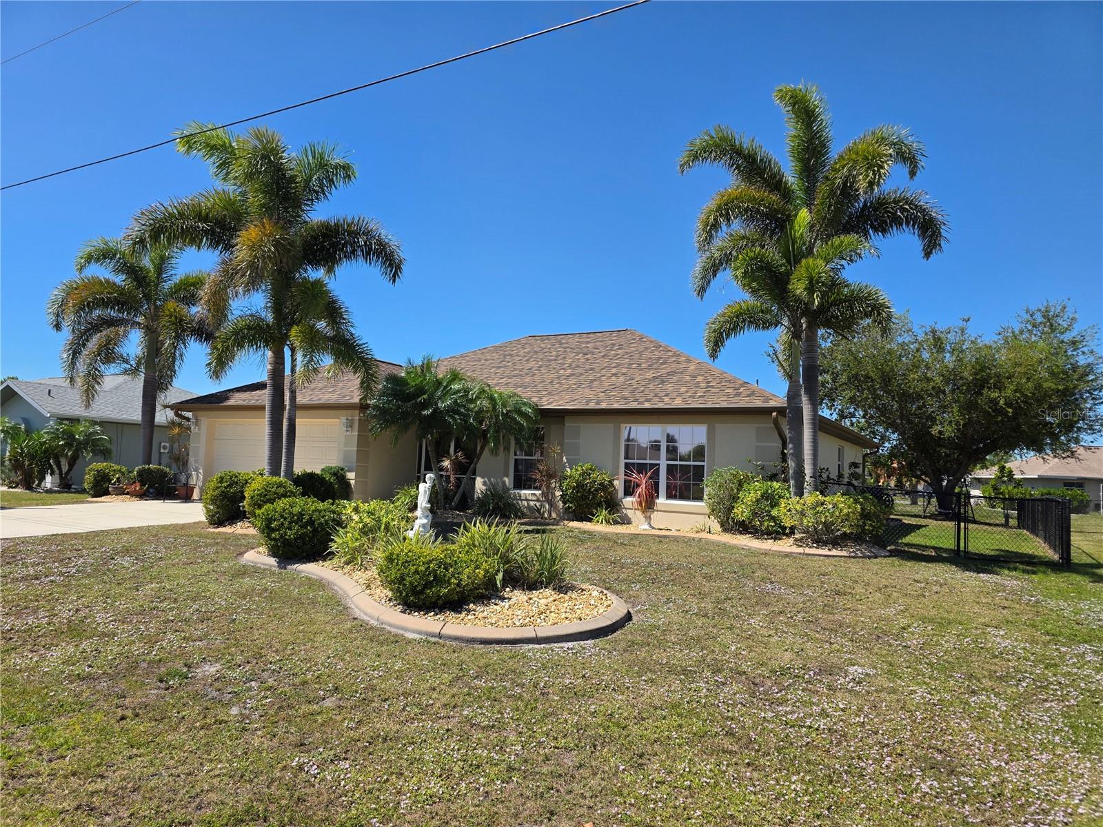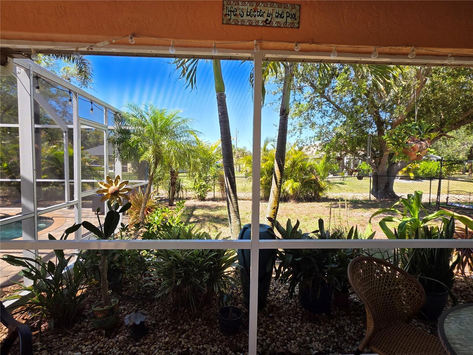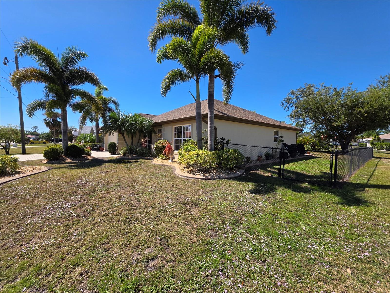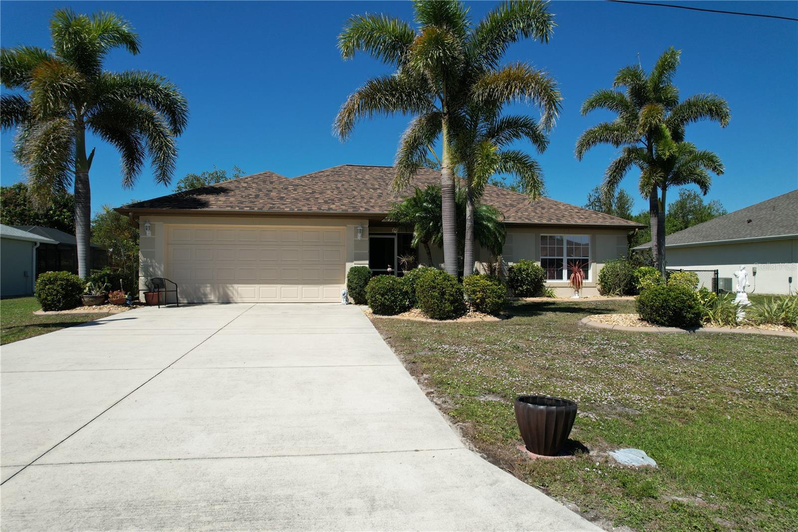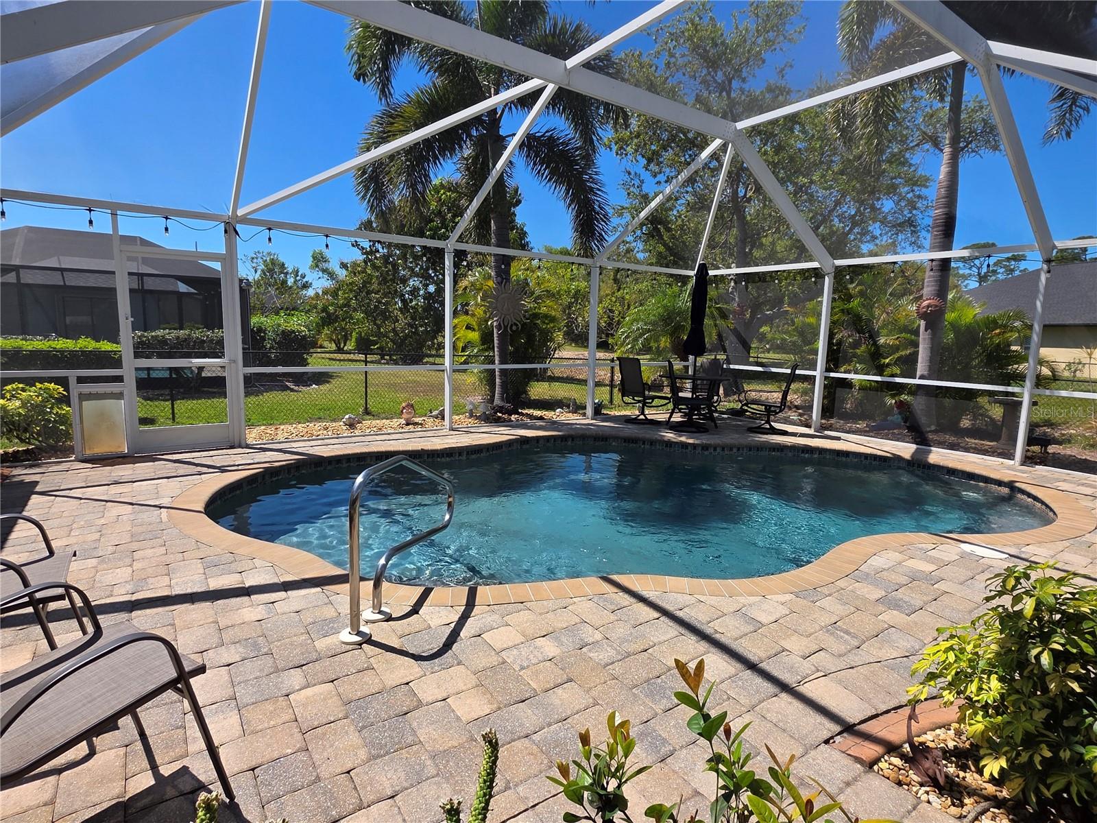 The perfect Florida retreat you've been searching for! Just about everything is new or almost new! This beautifully updated 3-bedroom, 2-bathroom pool home with an attached 2-car garage is situated on a terrific lot in the highly sought-after deed-restricted community of Deep Creek in Punta Gorda with a nice greenbelt view. With over 1600 square feet of living area, this spacious residence offers the perfect blend of modern updates, thoughtful design – highly sought after split bedroom floor plan, serene outdoor living, and is equipped with a generator. As you approach, you’ll be greeted by a nicely manicured lawn, lush landscaping and fully fenced side and rear yard. Inside, the home boasts a desirable Open Split Bedroom Floor Plan with soaring cathedral ceilings, creating an inviting and airy atmosphere throughout. The home's seamless flow opens to a beautiful lanai/pool area, ideal for embracing the coveted Florida lifestyle. The lush landscaping provides privacy, as well as tranquility. The kitchen has everything you can expect, featuring beautiful Corian counters and stainless steel appliances. The home’s flooring has been updated with stunning Luxury Vinyl Plank, providing a modern and elegant feel. The primary suite is a serene retreat, offering a pool and lanai view with an en-suite. Two additional bedrooms offer plenty of space for family, guests, or even a home office. These rooms are also equipped with large closets, and they share a beautifully appointed full bathroom. Step outside to your own private oasis, where you can soak up the Florida sunshine by the sparkling heated pool or relax on your private covered lanai while enjoying the peaceful view. The original full panel glass door to the lanai without a doggy door is in the garage. Additional features include a new roof, hurricane shutters, new lighting fixtures and ceiling fans, added insulation, window tinting/coating with lifetime warranty for energy saving and hurricane protection, etc. ***Great location just minutes to some of Florida’s best GOLFING, DINING, SHOPPING, PARKS, PUBLIC BOAT RAMPS, MARINAS AND BEACHES, as well as I-75, a short drive to the mall, to the Barrier Islands of Manasota Key and Boca Grande & 15 minutes to the Historic Riverfront Downtown Punta Gorda, Harbour Walk & Fishermen’s Village *** Step out of your door and go play golf at Deep Creek Golf course or go boating at Harbour Heights boat launch *** All measurements are approximate & should not be relied upon. Note: Cabinet at pool and mounted televisions are excluded from sale. All screens for windows are stored at the house and have only been removed for an improved view.