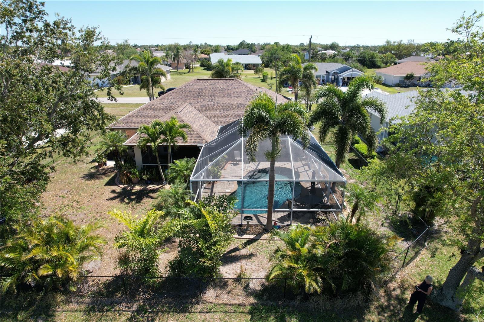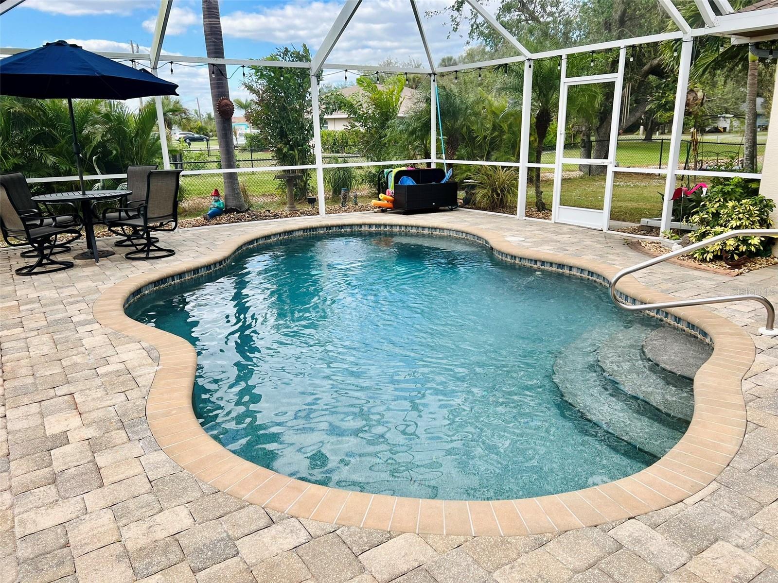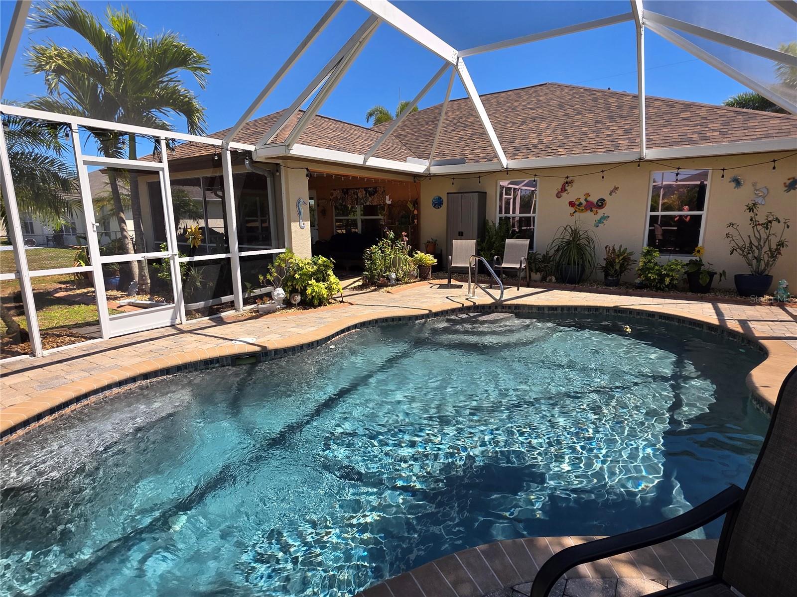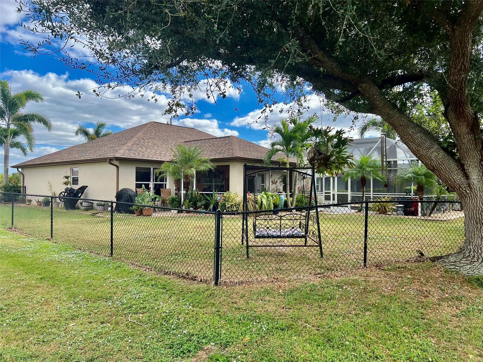 The perfect Florida retreat you've been searching for! Just about everything is new or almost new! This beautifully updated 3-bedroom, 2-bathroom pool home with an attached 2-car garage is situated on a terrific lot in the highly sought-after deed-restricted community of Deep Creek in Punta Gorda with a nice greenbelt view. With over 1600 square feet of living area, this spacious residence offers the perfect blend of modern updates, thoughtful design – highly sought after split bedroom floor plan, serene outdoor living, and is equipped with a generator. As you approach, you’ll be greeted by a nicely manicured lawn, lush landscaping and fully fenced side and rear yard. Inside, the home boasts a desirable Open Split Bedroom Floor Plan with soaring cathedral ceilings, creating an inviting and airy atmosphere throughout. The home's seamless flow opens to a beautiful lanai/pool area, ideal for embracing the coveted Florida lifestyle. The lush landscaping provides privacy, as well as tranquility. The kitchen has everything you can expect, featuring beautiful Corian counters and stainless steel appliances. The home’s flooring has been updated with stunning Luxury Vinyl Plank, providing a modern and elegant feel. The primary suite is a serene retreat, offering a pool and lanai view with an en-suite. Two additional bedrooms offer plenty of space for family, guests, or even a home office. These rooms are also equipped with large closets, and they share a beautifully appointed full bathroom. Step outside to your own private oasis, where you can soak up the Florida sunshine by the sparkling heated pool or relax on your private covered lanai while enjoying the peaceful view. The original full panel glass door to the lanai without a doggy door is in the garage. Additional features include a new roof, hurricane shutters, new lighting fixtures and ceiling fans, added insulation, window tinting/coating with lifetime warranty for energy saving and hurricane protection, etc. ***Great location just minutes to some of Florida’s best GOLFING, DINING, SHOPPING, PARKS, PUBLIC BOAT RAMPS, MARINAS AND BEACHES, as well as I-75, a short drive to the mall, to the Barrier Islands of Manasota Key and Boca Grande & 15 minutes to the Historic Riverfront Downtown Punta Gorda, Harbour Walk & Fishermen’s Village *** Step out of your door and go play golf at Deep Creek Golf course or go boating at Harbour Heights boat launch *** All measurements are approximate & should not be relied upon. Note: Cabinet at pool and mounted televisions are excluded from sale. All screens for windows are stored at the house and have only been removed for an improved view.