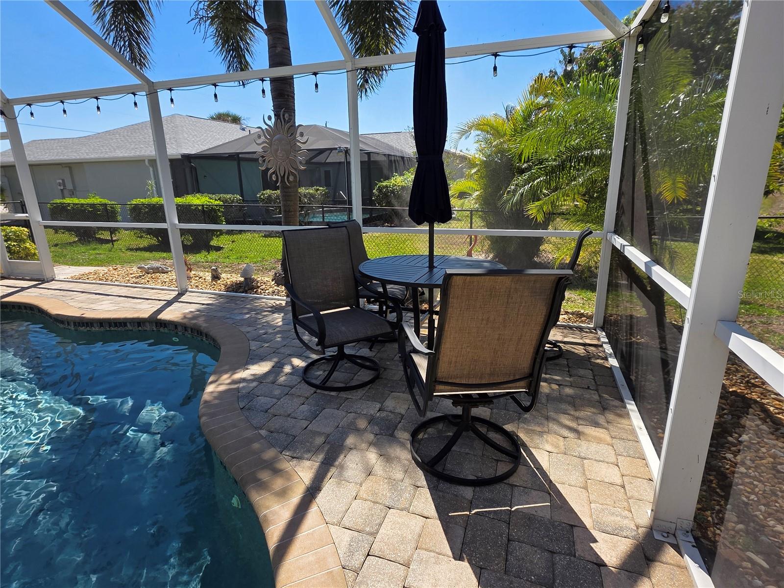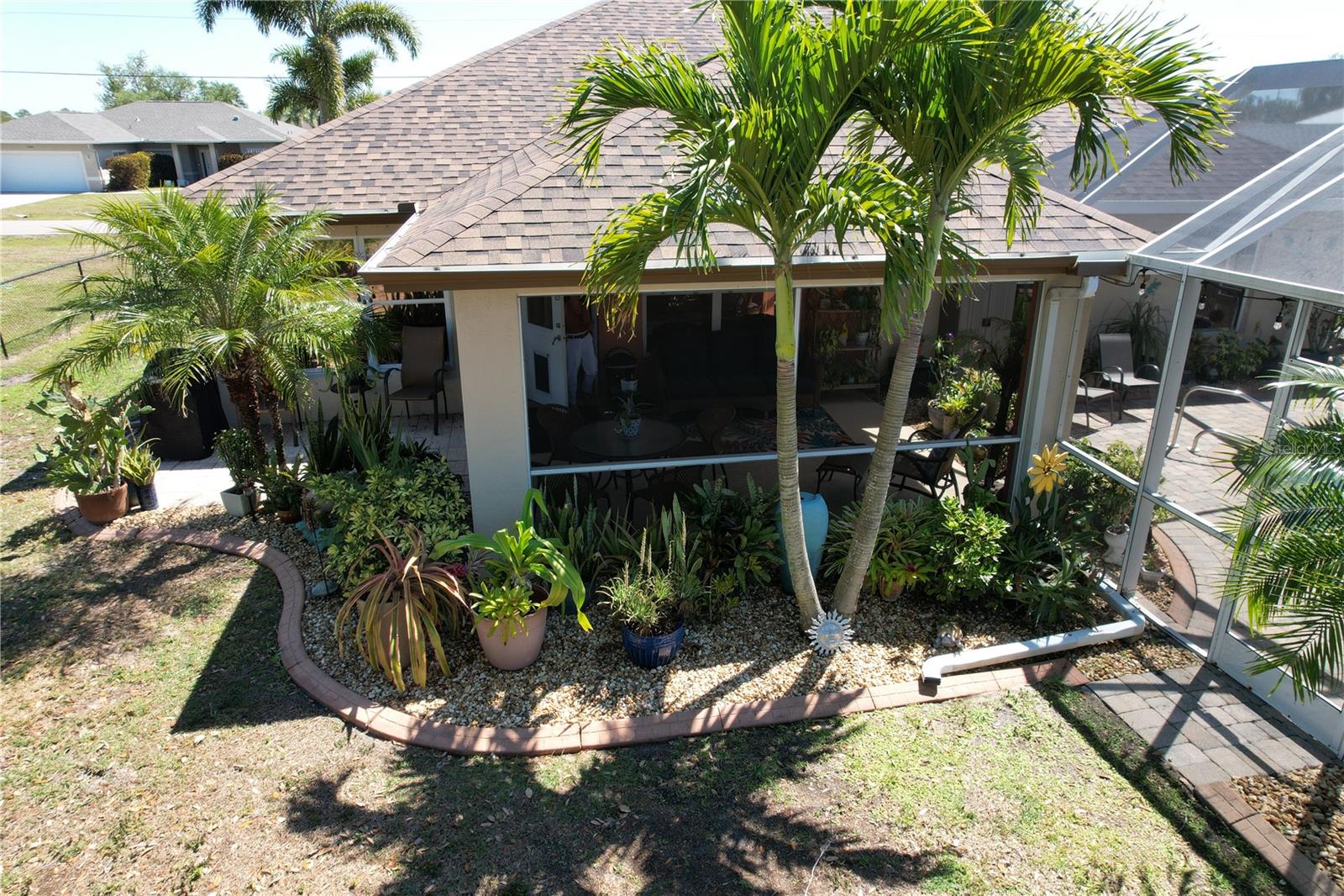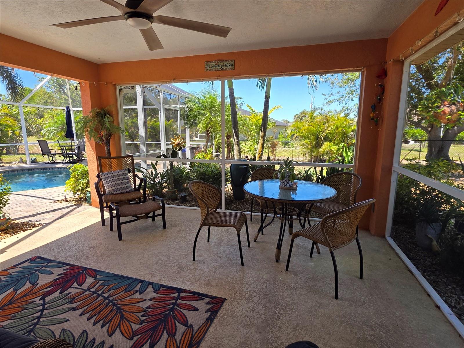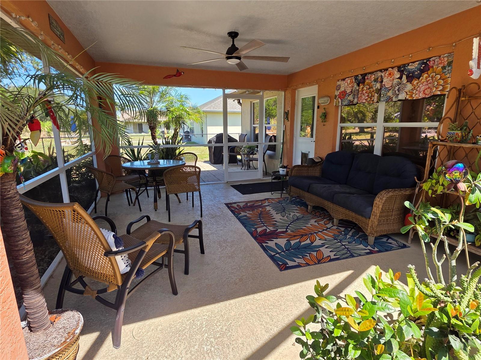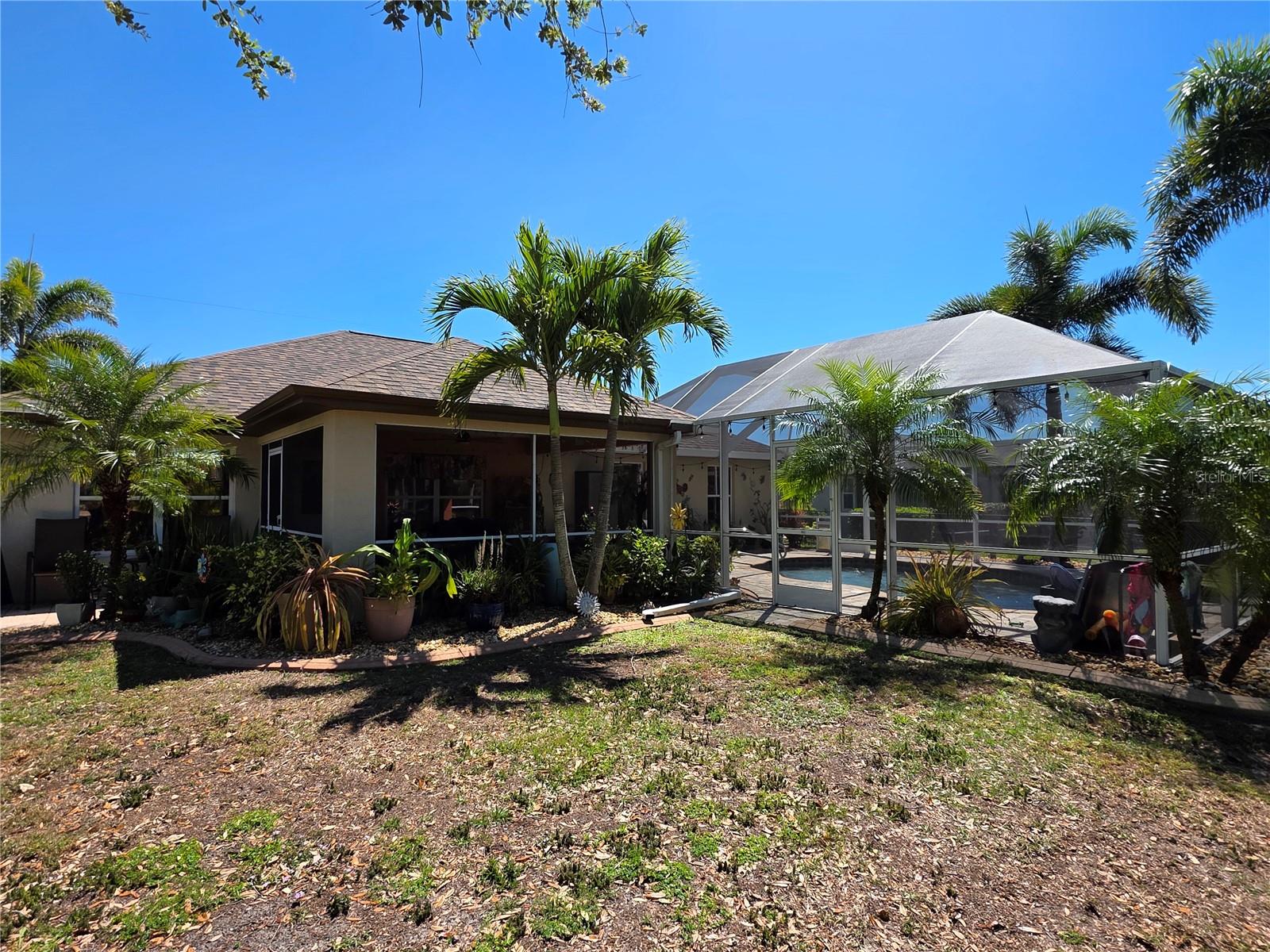 The perfect Florida retreat you've been searching for! Just about everything is new or almost new! This beautifully updated 3-bedroom, 2-bathroom pool home with an attached 2-car garage is situated on a terrific lot in the highly sought-after deed-restricted community of Deep Creek in Punta Gorda with a nice greenbelt view. With over 1600 square feet of living area, this spacious residence offers the perfect blend of modern updates, thoughtful design – highly sought after split bedroom floor plan, serene outdoor living, and is equipped with a generator. As you approach, you’ll be greeted by a nicely manicured lawn, lush landscaping and fully fenced side and rear yard. Inside, the home boasts a desirable Open Split Bedroom Floor Plan with soaring cathedral ceilings, creating an inviting and airy atmosphere throughout. The home's seamless flow opens to a beautiful lanai/pool area, ideal for embracing the coveted Florida lifestyle. The lush landscaping provides privacy, as well as tranquility. The kitchen has everything you can expect, featuring beautiful Corian counters and stainless steel appliances. The home’s flooring has been updated with stunning Luxury Vinyl Plank, providing a modern and elegant feel. The primary suite is a serene retreat, offering a pool and lanai view with an en-suite. Two additional bedrooms offer plenty of space for family, guests, or even a home office. These rooms are also equipped with large closets, and they share a beautifully appointed full bathroom. Step outside to your own private oasis, where you can soak up the Florida sunshine by the sparkling heated pool or relax on your private covered lanai while enjoying the peaceful view. The original full panel glass door to the lanai without a doggy door is in the garage. Additional features include a new roof, hurricane shutters, new lighting fixtures and ceiling fans, added insulation, window tinting/coating with lifetime warranty for energy saving and hurricane protection, etc. ***Great location just minutes to some of Florida’s best GOLFING, DINING, SHOPPING, PARKS, PUBLIC BOAT RAMPS, MARINAS AND BEACHES, as well as I-75, a short drive to the mall, to the Barrier Islands of Manasota Key and Boca Grande & 15 minutes to the Historic Riverfront Downtown Punta Gorda, Harbour Walk & Fishermen’s Village *** Step out of your door and go play golf at Deep Creek Golf course or go boating at Harbour Heights boat launch *** All measurements are approximate & should not be relied upon. Note: Cabinet at pool and mounted televisions are excluded from sale. All screens for windows are stored at the house and have only been removed for an improved view.