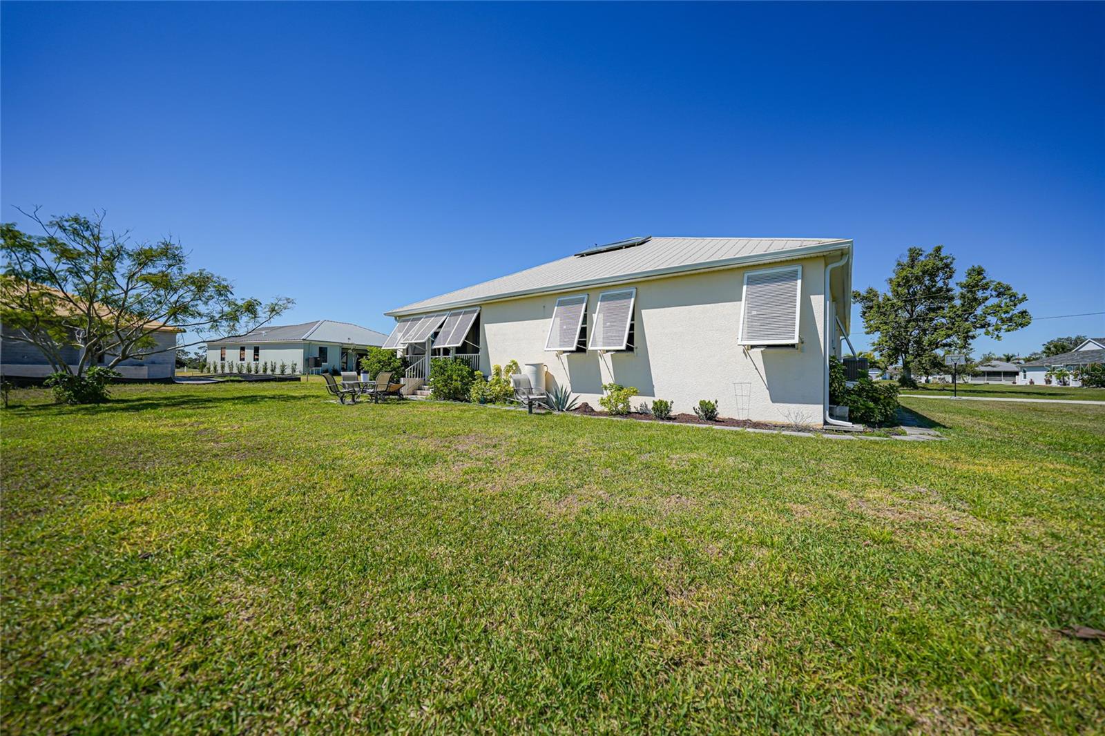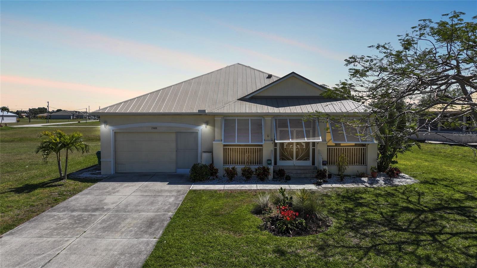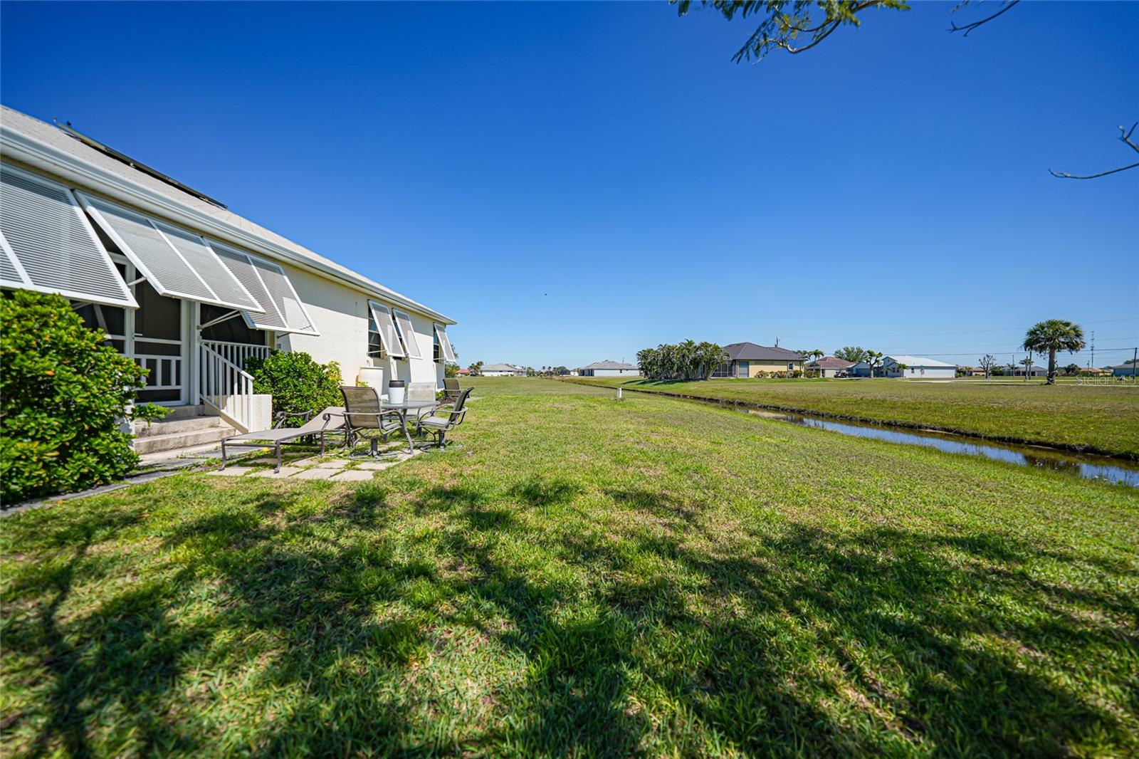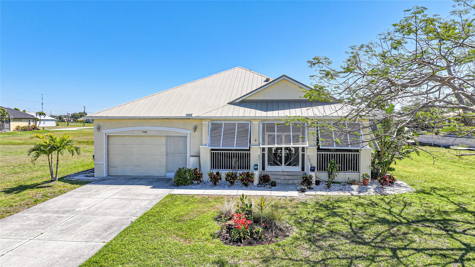DOUBLE LOT!! Welcome to this traditional 3-bedroom plus den, 2-bathroom home in the desirable deed-restricted community of Burnt Store Lakes with plenty of room for a pool! This home offers spacious living areas, a split-bedroom floor plan, and a peaceful backyard with a view of a small canal/greenbelt. Bright and open with vault ceilings and tile flooring throughout the entire home. The spacious kitchen has ample counter space, cabinetry, stainless steel appliances and a large breakfast which is great for entertaining. Just off the kitchen is the living room/dining room combo. Master suite with en-suite bath, dual sinks, soaking tub with separate shower. Two comfortable guest bedrooms with shared full bathroom are on the opposite side of the home which is prefect for everyone's privacy! The metal roof was installed in 2021 and the inverter for solar was upgraded in 2024. The gutters have been just replaced and the Bahama blinds double as hurricane shutters giving you peace of mind! Burnt Store Lakes has low HOA fees and is great for enjoy kayaking, fishing, and wildlife watching in the neighborhood’s 11 lakes and just minutes from Burnt Store Marina—offering boating, waterfront dining, and golf. Convenient to Punta Gorda Airport, shopping, dining, and historic downtown Punta Gorda with easy access to Cape Coral, Fort Myers, and I-75. Do not miss this opportunity! Schedule your private showing today.