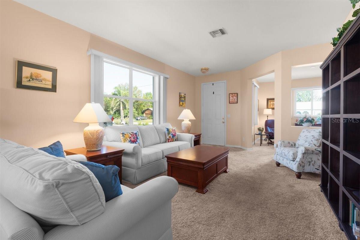 Welcome to this charming three-bedroom, two-bathroom home with a bonus room/den, nestled on a quiet cul-de-sac in the desirable community of Deep Creek. Built in 2005, this home offers a spacious and functional layout perfect for comfortable living. Step through the screened-in entry and into the inviting living and dining room combo, where natural light fills the space. Just beyond, the kitchen opens up to a large family room, creating the perfect gathering place for entertaining or relaxing. Sliding glass doors lead to the screened-in lanai, where you can enjoy Florida’s beautiful weather year-round. The master suite is a private retreat, featuring a large walk-in closet and an ensuite bathroom with dual sinks. The additional bedrooms are generously sized, and the bonus room/den offers flexibility as a home office, playroom, or extra guest space. A dedicated indoor laundry room adds convenience, while the two-car garage provides plenty of storage. This affordable, well-built home offers city water and sewer, and is importantly situated outside of the flood zone. Deep Creek is a Deed Restricted community with amenities including an attractive golf course located in its midst and additional tennis courts, a basketball court, and a playground to be enjoyed by all. The extra special location of this subdivision is skirted by two entrances onto I-75 and offers nearby shopping centers, restaurants, medical facilities and much more! Fishing and boating on the nearby Peace River attracts many sportsmen or if you prefer just take a leisurely ride to the pristine gulf beaches of Boca Grande or Manasota Key. Come live your Florida dream here in this attractive, welcoming community!
