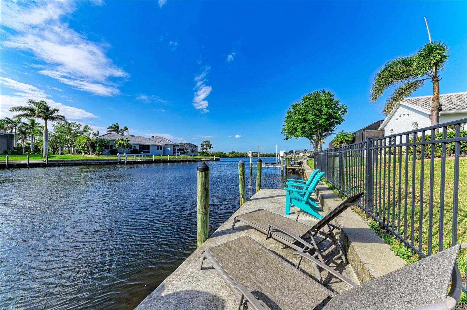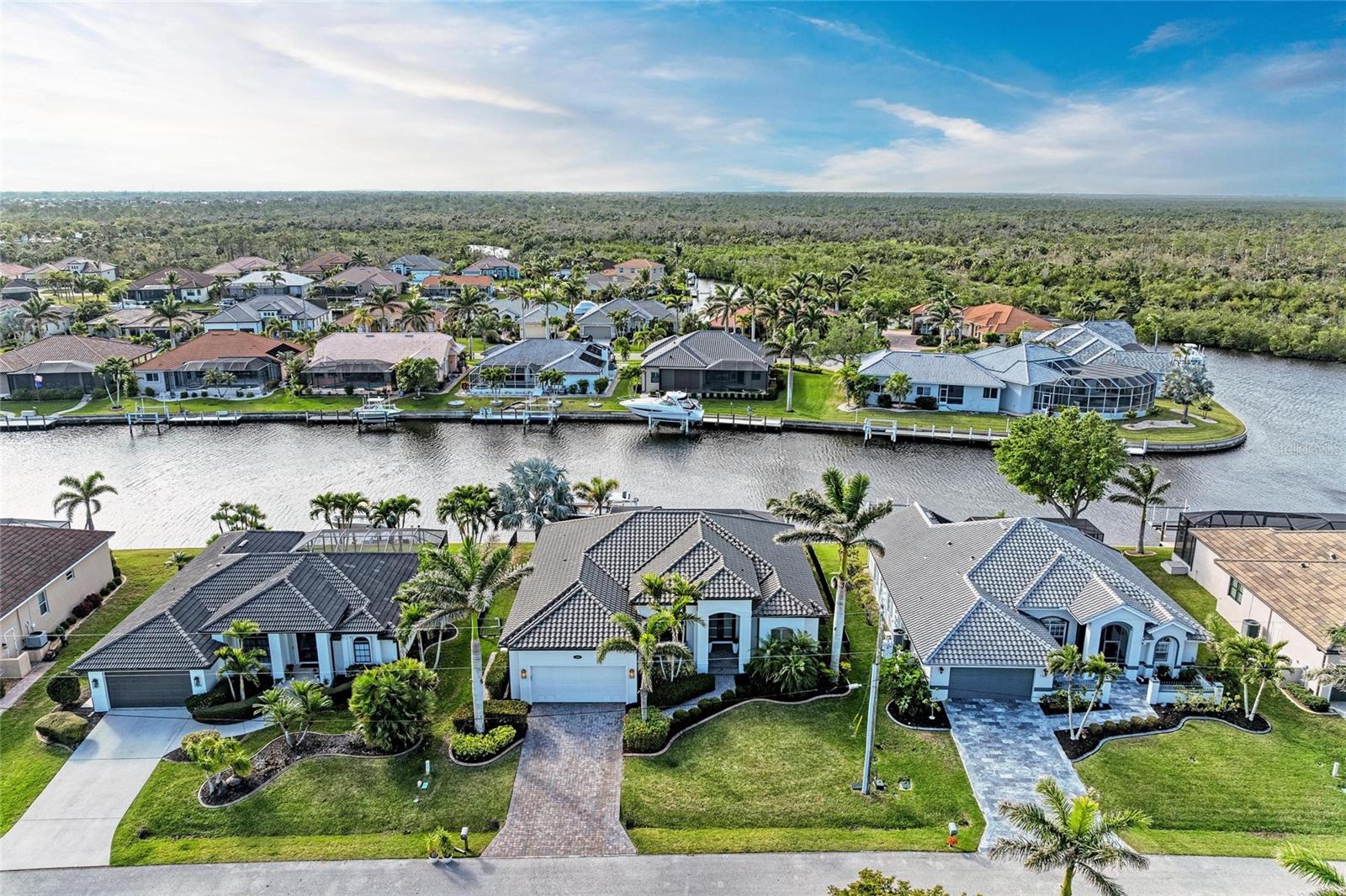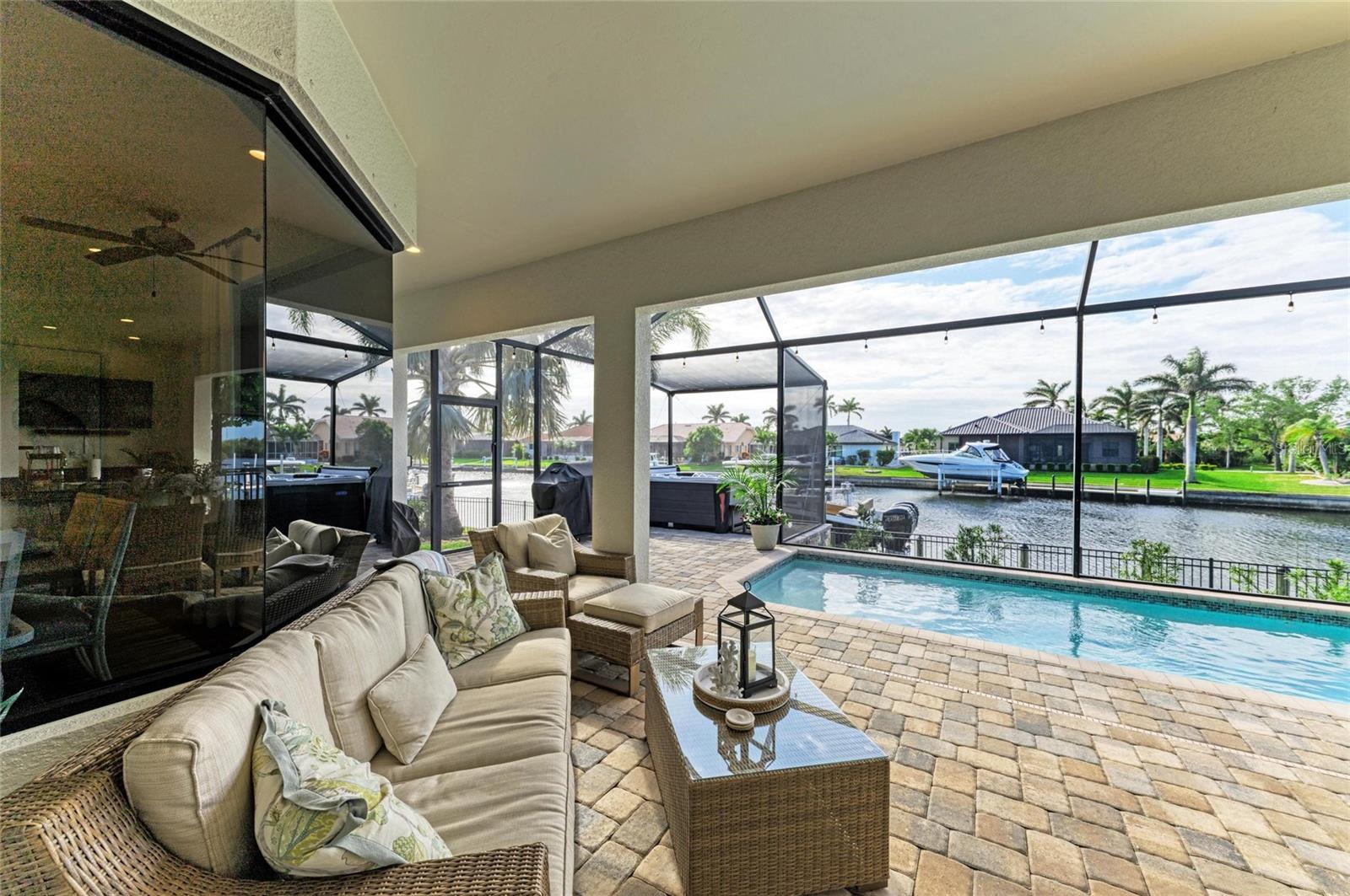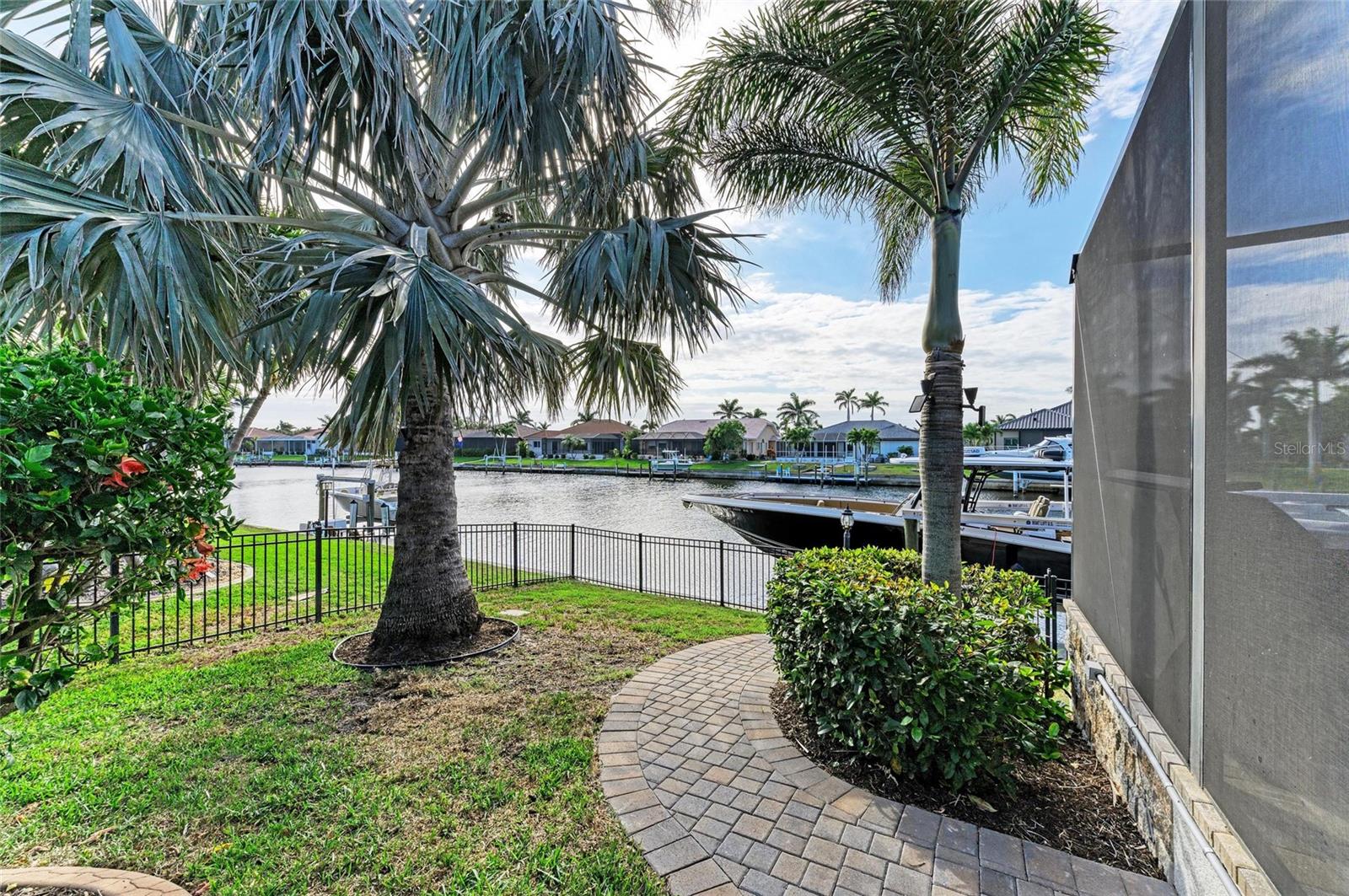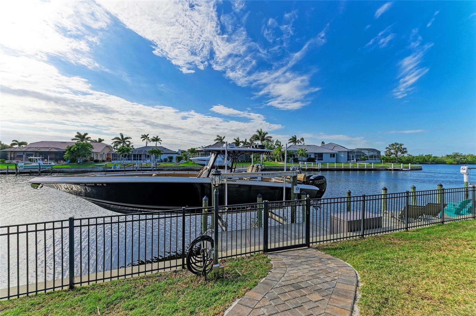 INCREDIBLE VIEWS & LUXURIOUS APPOINTMENTS await from this STUNNINGLY REMODELED 3-bedroom, 2-bathroom + den pool home with an oversized 2 car garage, a DESIRED SOUTHERN EXPOSURE, and a great dock/newly added 16,000lb lift with GULF ACCESS & NO BRIDGES. SELLER FINANCING AVAILABLE! From the outside, notice how high and dry the home is naturally, along with beautiful landscaping, upgraded pavers, added soffit lighting, and a welcoming front porch. Inside the double door entry, step into the ideal coastal design with upgrades recently added to include new light fixtures, luxury vinyl plank flooring, plantation shutters, custom cabinetry, quartz counters, new GE Cafe appliances, custom trim work including a coffered ceiling, and more. Enjoy a thoughtfully designed floor plan, with the den/office at the front of the home, a spacious great room open to the large kitchen with breakfast bar, and the connected dining room. The laundry room, with similar updates is great for extra storage and near the pantry and connection to the garage with fantastic storage. On the right side of the home, the primary suite is a stunning retreat, with an en-suite bathroom with separate soaking tub, dual vanities, a private water closet, a Roman shower, dual walk-in closets with built in organizers and a huge bedroom with private lanai access. On the other side of the home, find two beautiful guest bedrooms with great closets and natural light, and a shared/updated guest bathroom near the main living spaces. Outside on the lanai, enjoy a stunning space, with both covered and open relaxation areas, a newly added summer kitchen with beverage bar, and a fantastic added hot tub with Edison lights, all inside the upgraded lanai/cage with panoramic openings. The fenced backyard is fabulous and you can follow the added paver sidewalk down to the beautiful dock with lift and extra space for chairs/storage. This home has impact windows/doors (except the aquarium glass which has shutters) and is in amazing condition. Do not miss out on living your best SWFL life here, nearby to great golf within the neighborhood at Twin Isles Country Club, and also near to the PGD airport, just a short ride away, along with amazing restaurants, shopping, festivals, weekly farmers markets, and more! BE SURE TO CLICK THE FULL VIRTUAL TOUR LINKS FOR DETAILS and schedule your showing today!