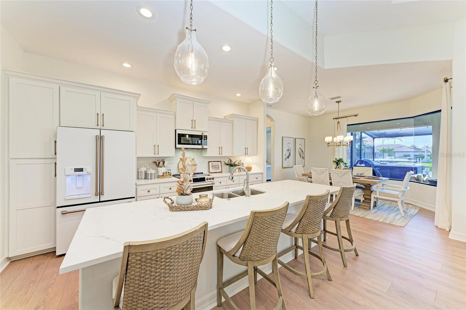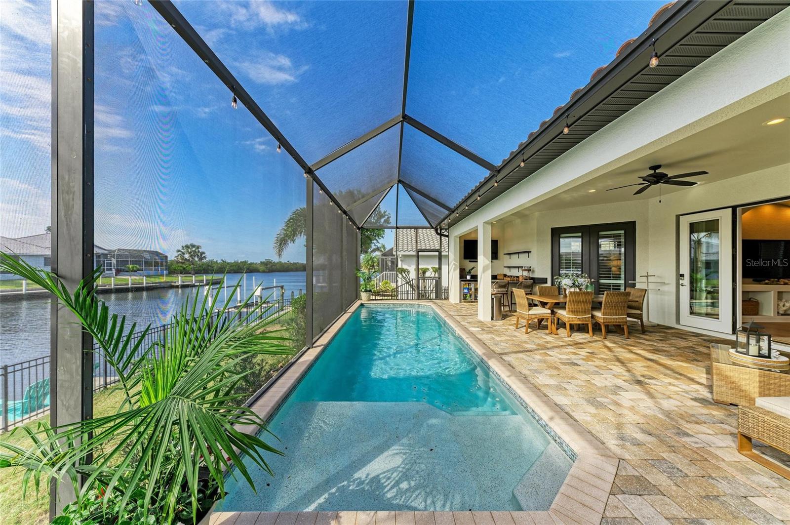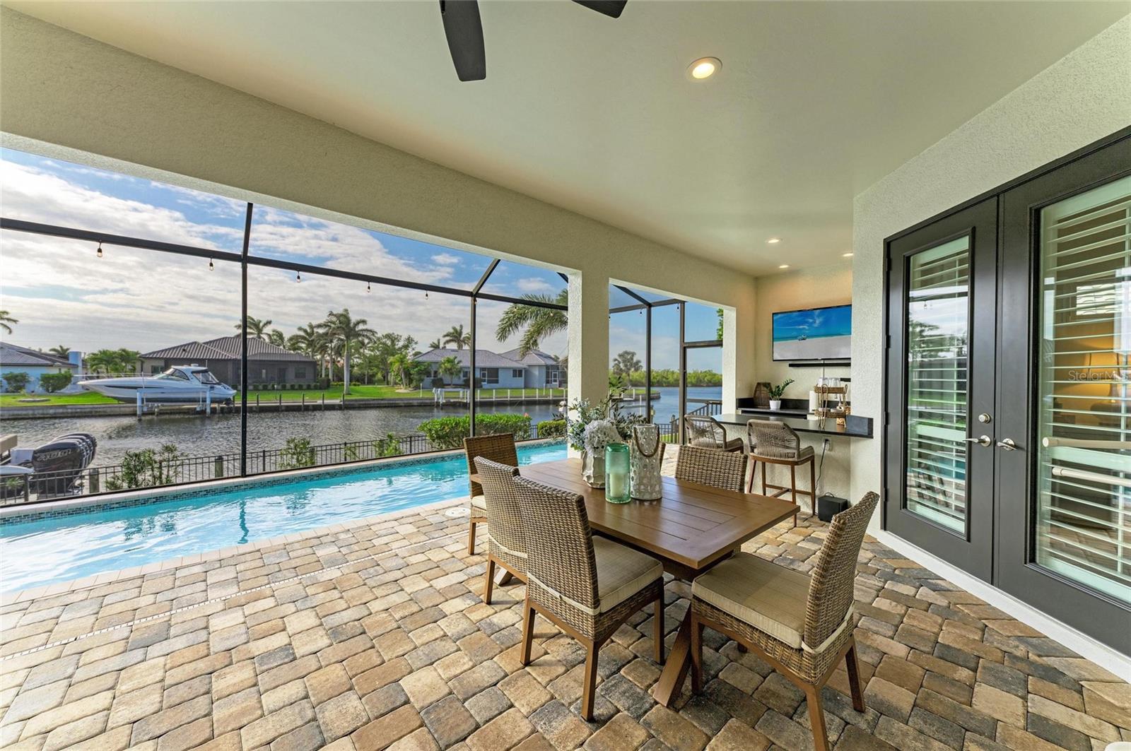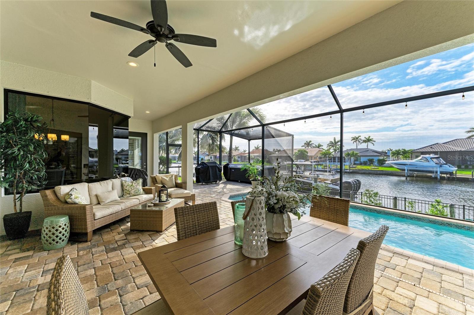 INCREDIBLE VIEWS & LUXURIOUS APPOINTMENTS await from this STUNNINGLY REMODELED 3-bedroom, 2-bathroom + den pool home with an oversized 2 car garage, a DESIRED SOUTHERN EXPOSURE, and a great dock/newly added 16,000lb lift with GULF ACCESS & NO BRIDGES. SELLER FINANCING AVAILABLE! From the outside, notice how high and dry the home is naturally, along with beautiful landscaping, upgraded pavers, added soffit lighting, and a welcoming front porch. Inside the double door entry, step into the ideal coastal design with upgrades recently added to include new light fixtures, luxury vinyl plank flooring, plantation shutters, custom cabinetry, quartz counters, new GE Cafe appliances, custom trim work including a coffered ceiling, and more. Enjoy a thoughtfully designed floor plan, with the den/office at the front of the home, a spacious great room open to the large kitchen with breakfast bar, and the connected dining room. The laundry room, with similar updates is great for extra storage and near the pantry and connection to the garage with fantastic storage. On the right side of the home, the primary suite is a stunning retreat, with an en-suite bathroom with separate soaking tub, dual vanities, a private water closet, a Roman shower, dual walk-in closets with built in organizers and a huge bedroom with private lanai access. On the other side of the home, find two beautiful guest bedrooms with great closets and natural light, and a shared/updated guest bathroom near the main living spaces. Outside on the lanai, enjoy a stunning space, with both covered and open relaxation areas, a newly added summer kitchen with beverage bar, and a fantastic added hot tub with Edison lights, all inside the upgraded lanai/cage with panoramic openings. The fenced backyard is fabulous and you can follow the added paver sidewalk down to the beautiful dock with lift and extra space for chairs/storage. This home has impact windows/doors (except the aquarium glass which has shutters) and is in amazing condition. Do not miss out on living your best SWFL life here, nearby to great golf within the neighborhood at Twin Isles Country Club, and also near to the PGD airport, just a short ride away, along with amazing restaurants, shopping, festivals, weekly farmers markets, and more! BE SURE TO CLICK THE FULL VIRTUAL TOUR LINKS FOR DETAILS and schedule your showing today!
