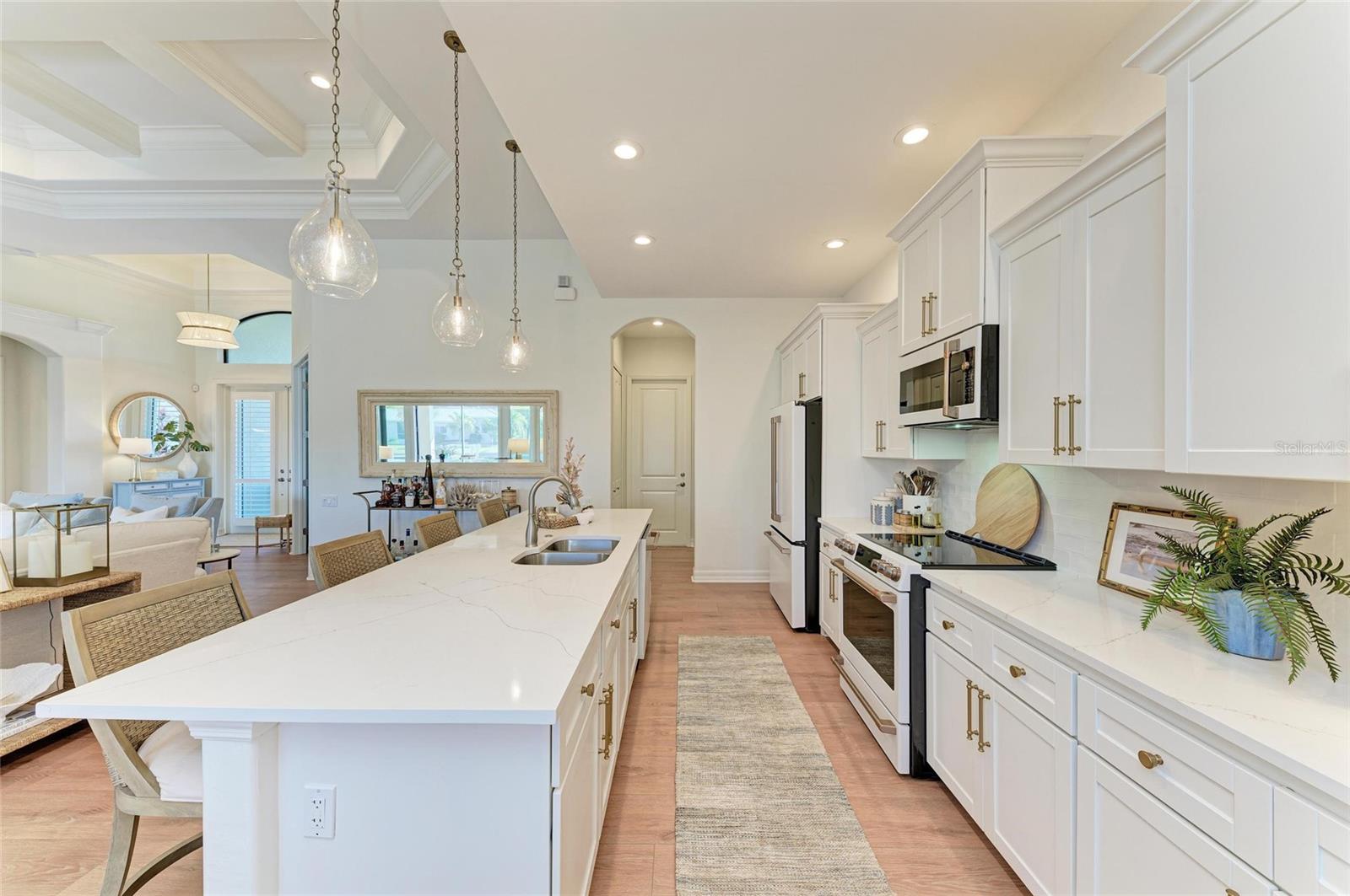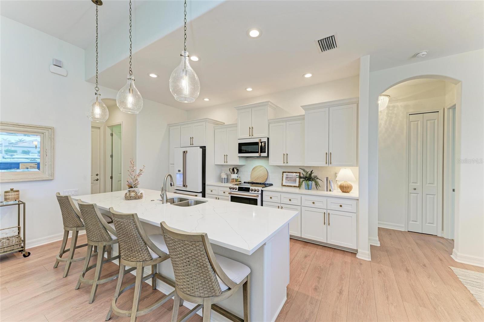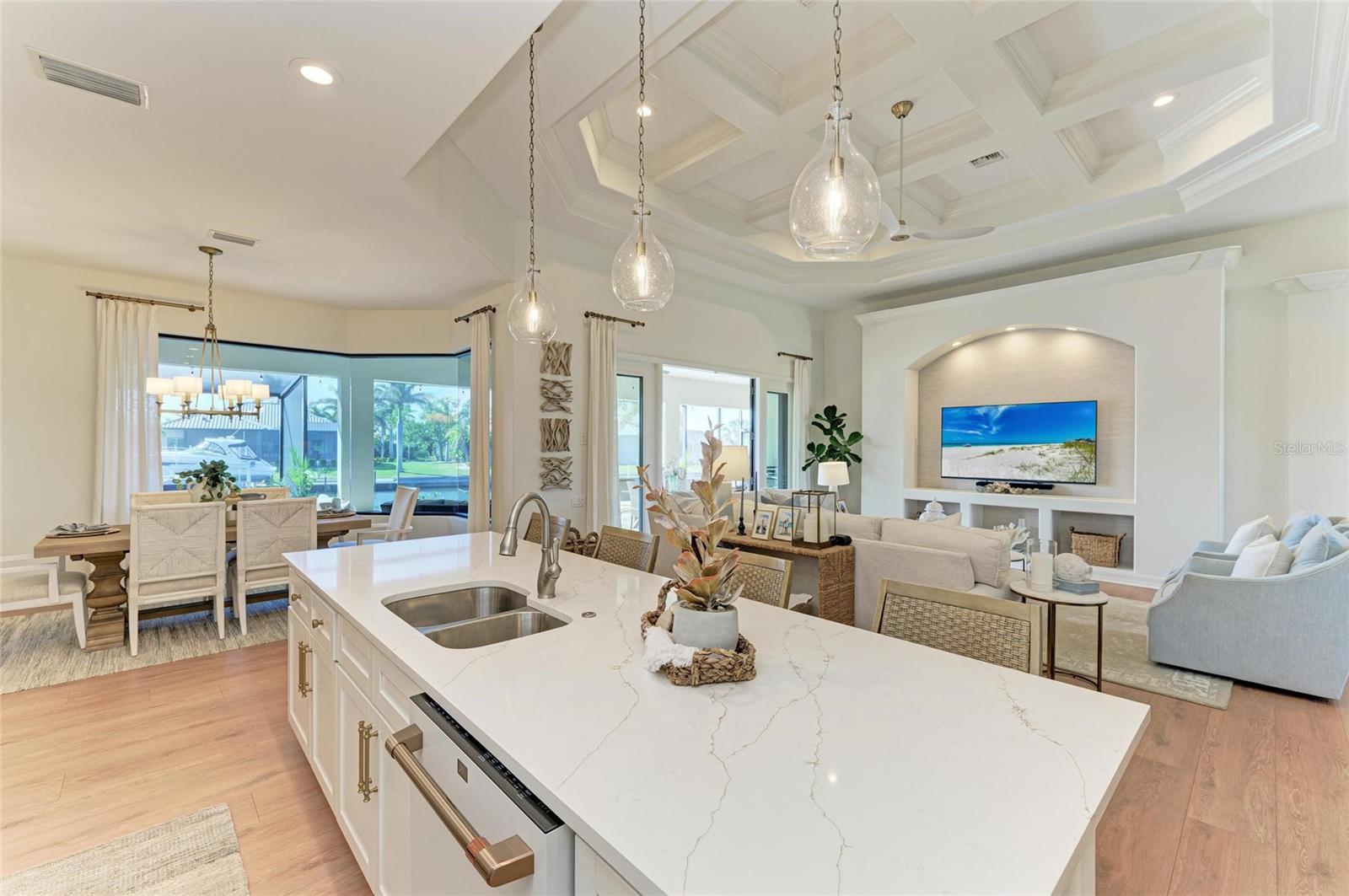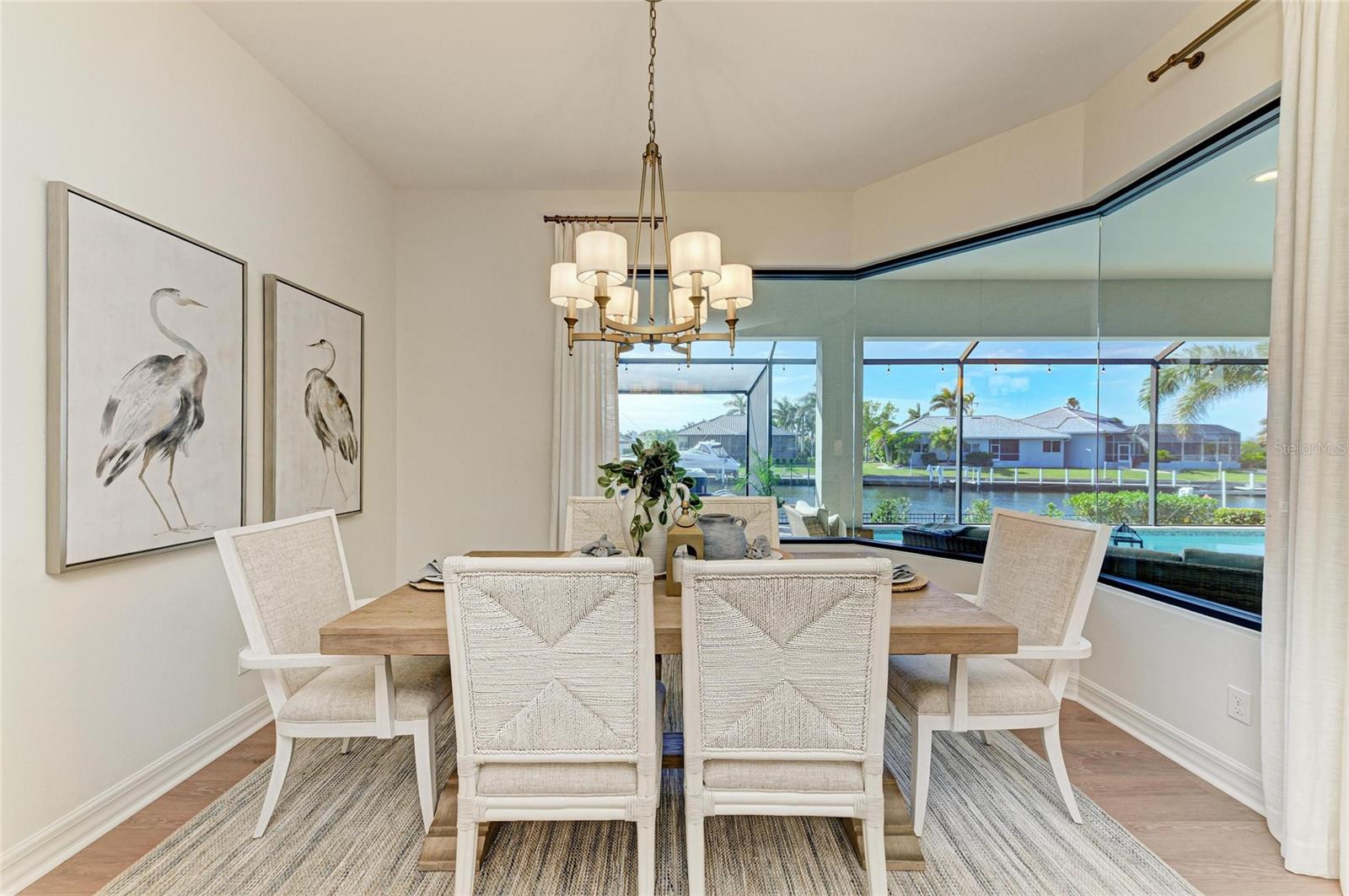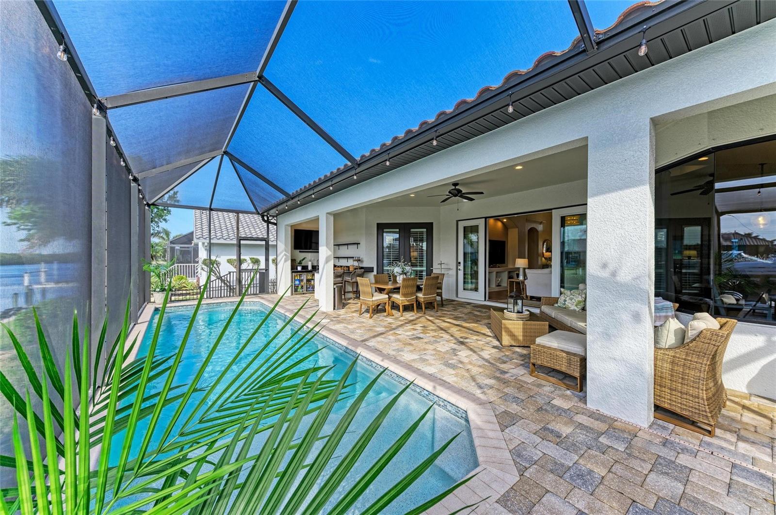 INCREDIBLE VIEWS & LUXURIOUS APPOINTMENTS await from this STUNNINGLY REMODELED 3-bedroom, 2-bathroom + den pool home with an oversized 2 car garage, a DESIRED SOUTHERN EXPOSURE, and a great dock/newly added 16,000lb lift with GULF ACCESS & NO BRIDGES. SELLER FINANCING AVAILABLE! From the outside, notice how high and dry the home is naturally, along with beautiful landscaping, upgraded pavers, added soffit lighting, and a welcoming front porch. Inside the double door entry, step into the ideal coastal design with upgrades recently added to include new light fixtures, luxury vinyl plank flooring, plantation shutters, custom cabinetry, quartz counters, new GE Cafe appliances, custom trim work including a coffered ceiling, and more. Enjoy a thoughtfully designed floor plan, with the den/office at the front of the home, a spacious great room open to the large kitchen with breakfast bar, and the connected dining room. The laundry room, with similar updates is great for extra storage and near the pantry and connection to the garage with fantastic storage. On the right side of the home, the primary suite is a stunning retreat, with an en-suite bathroom with separate soaking tub, dual vanities, a private water closet, a Roman shower, dual walk-in closets with built in organizers and a huge bedroom with private lanai access. On the other side of the home, find two beautiful guest bedrooms with great closets and natural light, and a shared/updated guest bathroom near the main living spaces. Outside on the lanai, enjoy a stunning space, with both covered and open relaxation areas, a newly added summer kitchen with beverage bar, and a fantastic added hot tub with Edison lights, all inside the upgraded lanai/cage with panoramic openings. The fenced backyard is fabulous and you can follow the added paver sidewalk down to the beautiful dock with lift and extra space for chairs/storage. This home has impact windows/doors (except the aquarium glass which has shutters) and is in amazing condition. Do not miss out on living your best SWFL life here, nearby to great golf within the neighborhood at Twin Isles Country Club, and also near to the PGD airport, just a short ride away, along with amazing restaurants, shopping, festivals, weekly farmers markets, and more! BE SURE TO CLICK THE FULL VIRTUAL TOUR LINKS FOR DETAILS and schedule your showing today!