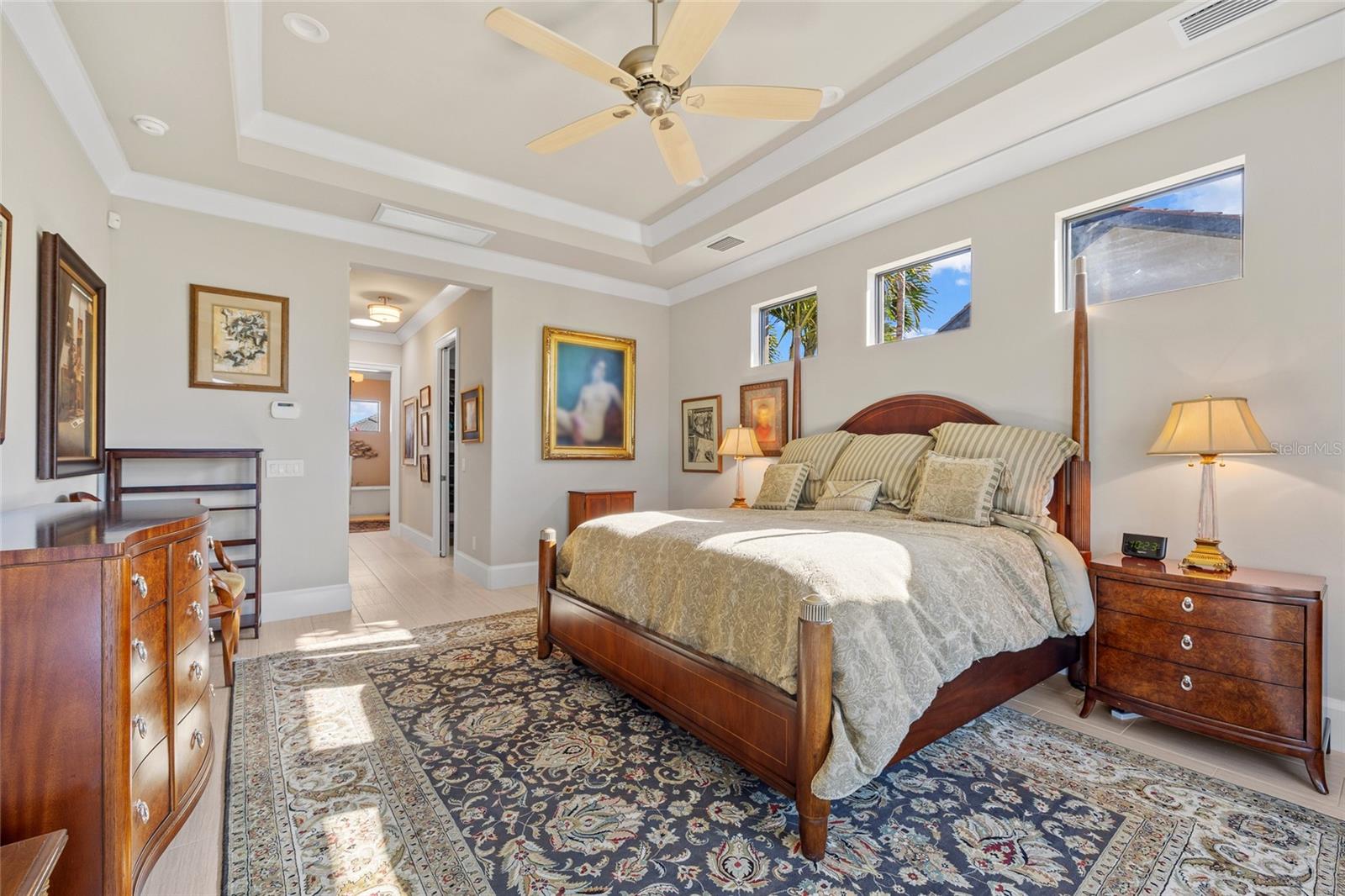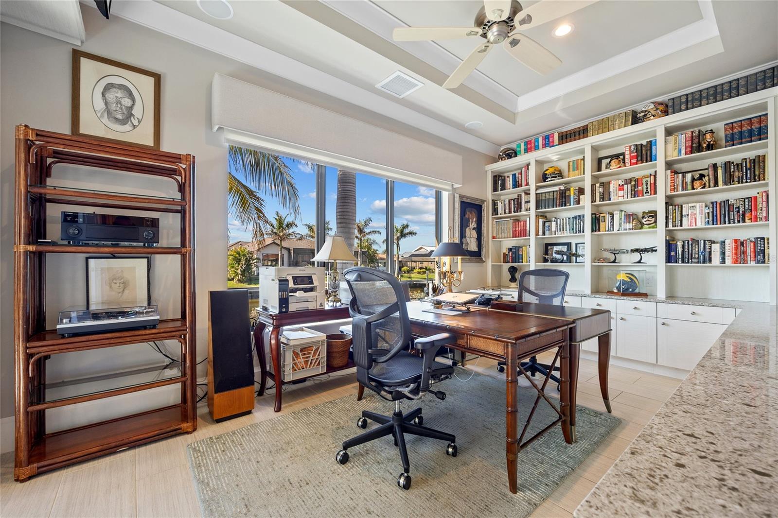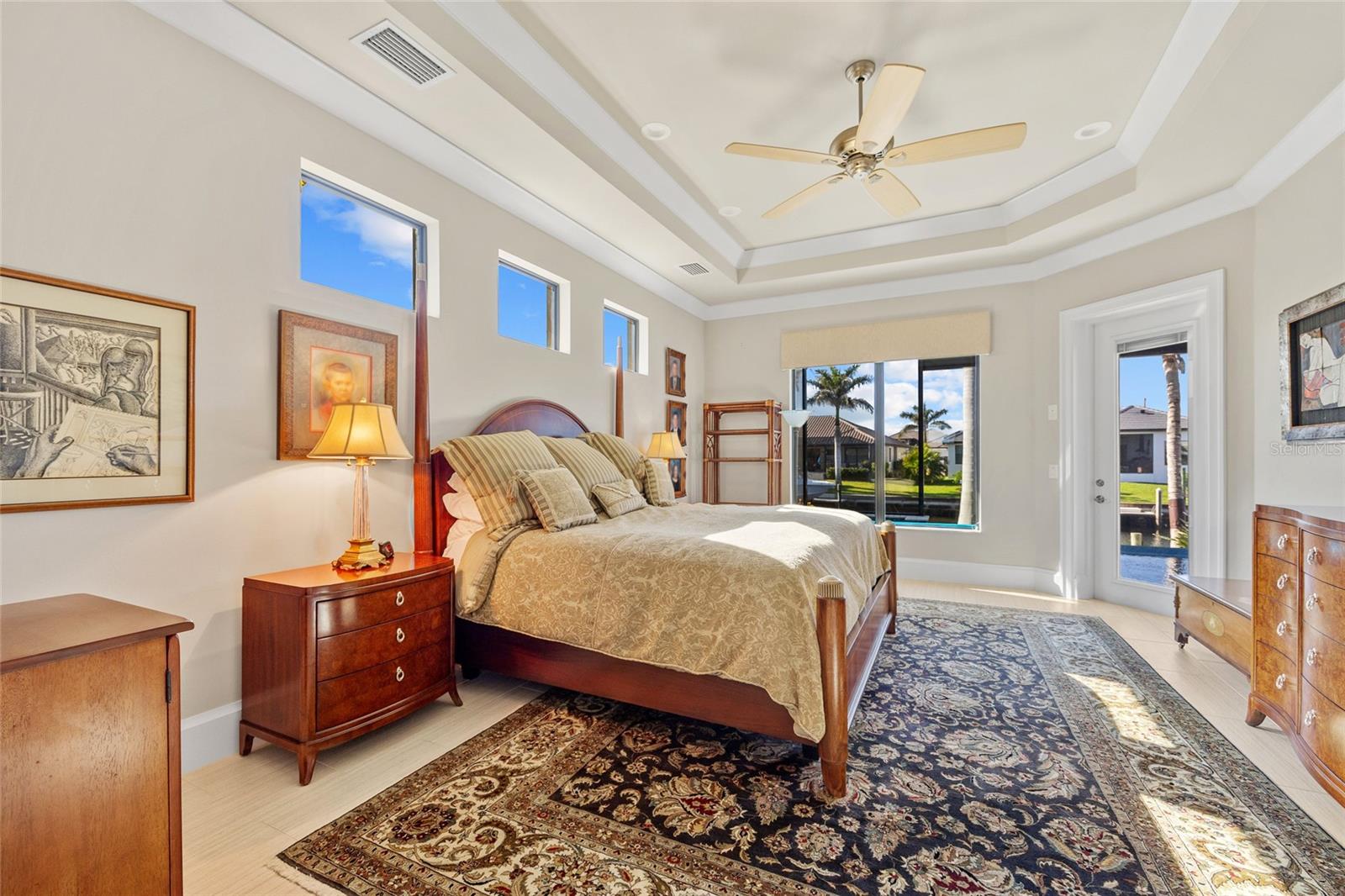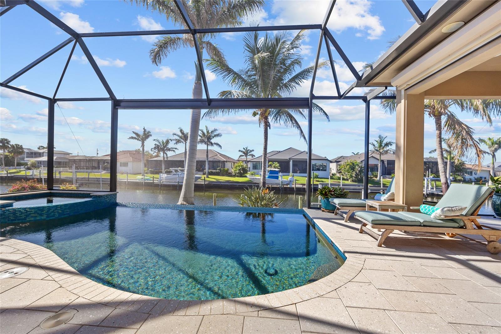 Punta Gorda Isles! Stunning 3 bedroom plus office, 3 bath, 3-car garage waterfront pool home built by prestigious PGI Builders with quick sailboat access to Charlotte Harbor leading to the Gulf of Mexico via Ponce Inlet! For the boating enthusiast, this south facing lanai home features a remote-operated boat lift currently set for a 10,000 lb. boat with power available for up to 20,000 lbs. plus electric and water dockside. Custom built to withstand 200 mph winds and offers PGT impact windows and motorized Storm Smart hurricane shades ensuring peace of mind. Step inside to an elegant open floor plan rich in every detail including coffered and tray ceilings, abundant can lights with dimmer switches for customizable ambiance, crown molding, 8’ doors, motorized shades and high-quality porcelain tile throughout. The great room features separate bar and zero-corner slider to lanai seamlessly blending indoor and outdoor living space. The kitchen is a chef's delight, equipped with a propane gas stove, built-in refrigerator, soft-close cabinets, pull-out drawers, discreet under-cabinet outlets, center island with breakfast bar and large pantry with hidden entrance next to refrigerator. The primary suite features an abundance of natural light, dual custom walk-in closets and a luxurious ensuite with dual vanities, soaking tub, walk-in shower and Toto smart toilet. Split floor plan provides privacy for all. The outdoor entertaining area offers covered lanai, sparkling heated PebbleTec pool and spa with fountain and waterfall features plus panoramic screen to enjoy unobstructed water views. A 500 gallon in-ground propane tank powers Generac whole house generator, pool and spa heater, outdoor grill, and stovetop. Additional special features include custom closet systems in all bedrooms, an overabundance of storage space, state of the art security system with four exterior cameras, surround sound audio/visual setup with ceiling speakers throughout, Kinetico water filtration system, front door retractable screens, automatic irrigation system to water potted plants on lanai and cabana, plus lush tropical landscaping and automatic exterior landscape lighting system surround the home providing amazing curb appeal. Nestled on a quiet cul-de-sac street in a popular golf and boating community, this home is just minutes from St. Andrews South Golf Club, the Yacht Club, Fishermen's Village, and the historic downtown area of Punta Gorda. Enjoy access to arts, community events, entertainment, world-class fishing, boating, fine dining, and beautiful parks, as well as easy access to the SWFL gulf beaches. Don't miss your chance to own this waterside treasure! Schedule your private showing today!