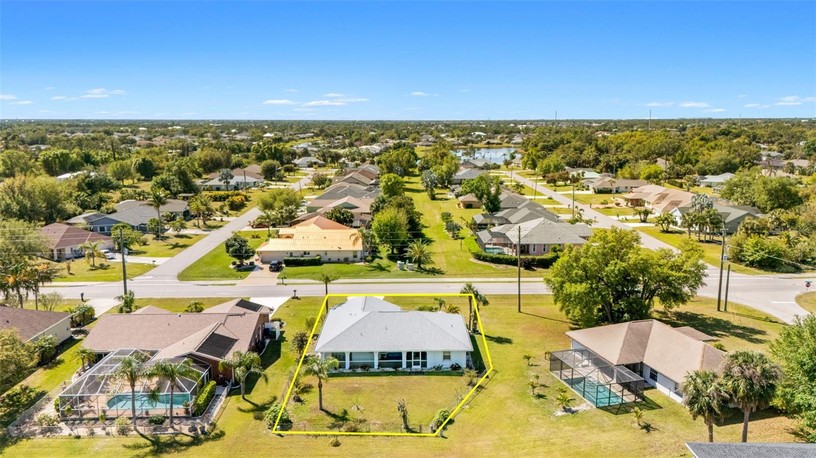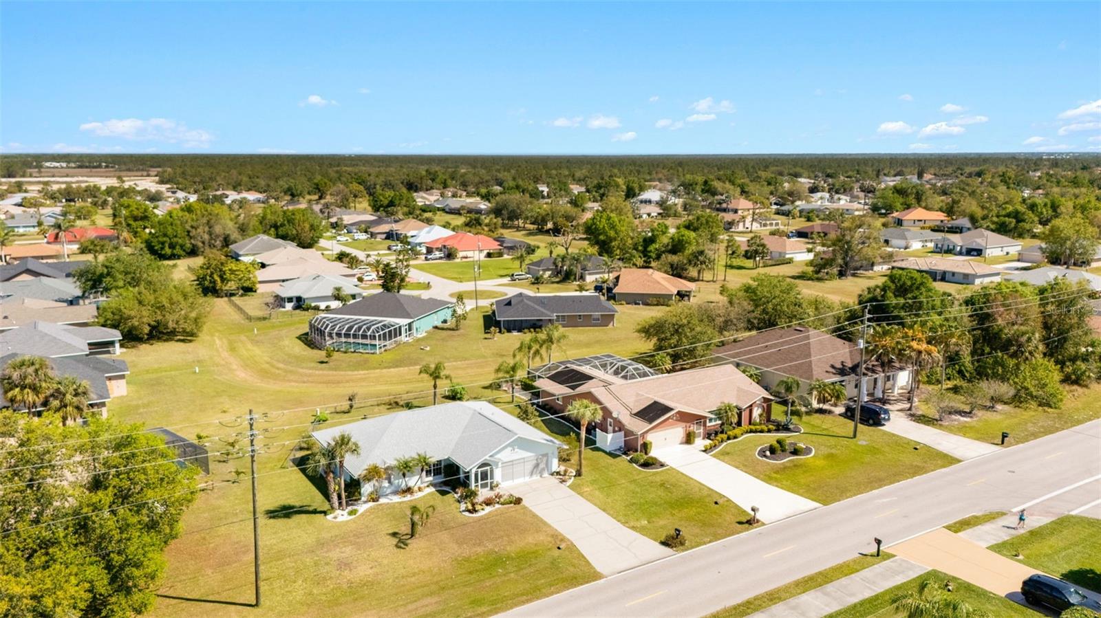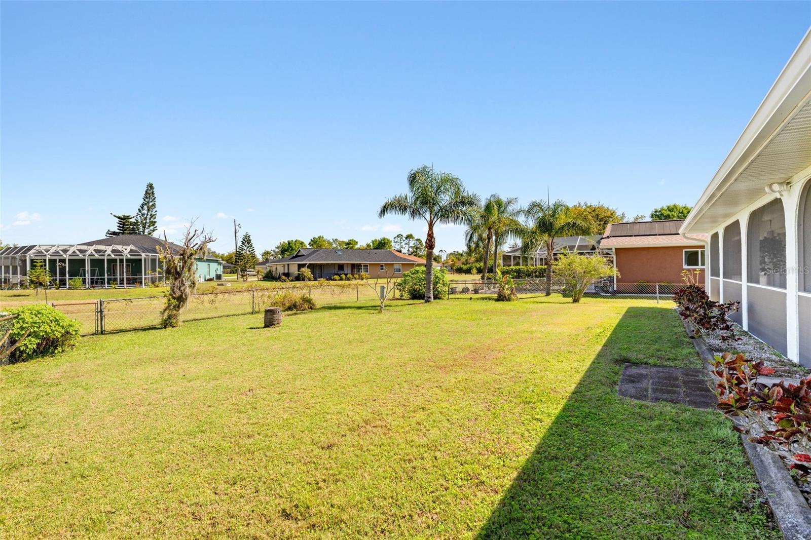 Beautifully Updated Home in Deep Creek — Move-In Ready & Full of Style! Welcome to this 3-bedroom, 2-bath gem in the desirable, deed-restricted community of Deep Creek! From the moment you walk in, you’ll feel right at home with vaulted ceilings, an open-concept layout, and an inviting atmosphere perfect for entertaining or relaxing. The kitchen is spacious, with numerous cabinets and newer appliances (approximately 5 years old), and flows seamlessly into the dining and living areas. Step outside to enjoy screened front and back lanais with tile flooring—ideal for morning coffee or evening gatherings. Your primary suite is a private retreat with lanai access, a large walk-in closet, and an en-suite bath. Updates include a brand-new 2025 water heater, a newer roof (installed 2 years ago), and updated guest bedroom flooring (installed 2 years ago)—providing comfort and peace of mind. Set amid lush, mature landscaping, the fenced backyard offers privacy and space for pets or outdoor fun. Prime Location! Just minutes from Deep Creek Golf Club, shopping, dining, and I-75 access. You’re only 15 minutes from historic Punta Gorda and under 30 miles to the Gulf’s stunning beaches. Plus, this home is not in a Special Flood Hazard Area and offers easy access to public boat ramps leading to Charlotte Harbor—the perfect blend of convenience, comfort, and coastal charm. Don’t miss this incredible opportunity—schedule your private showing today!