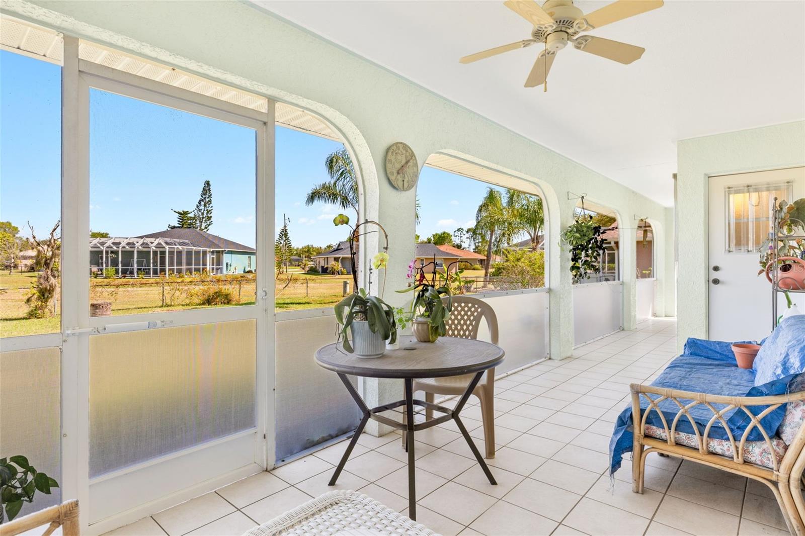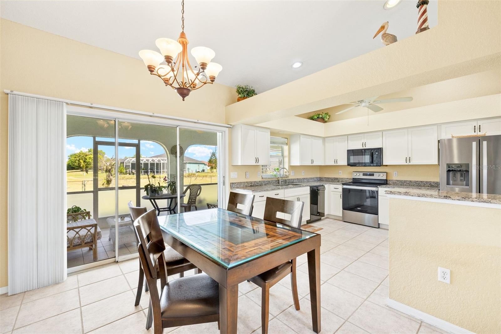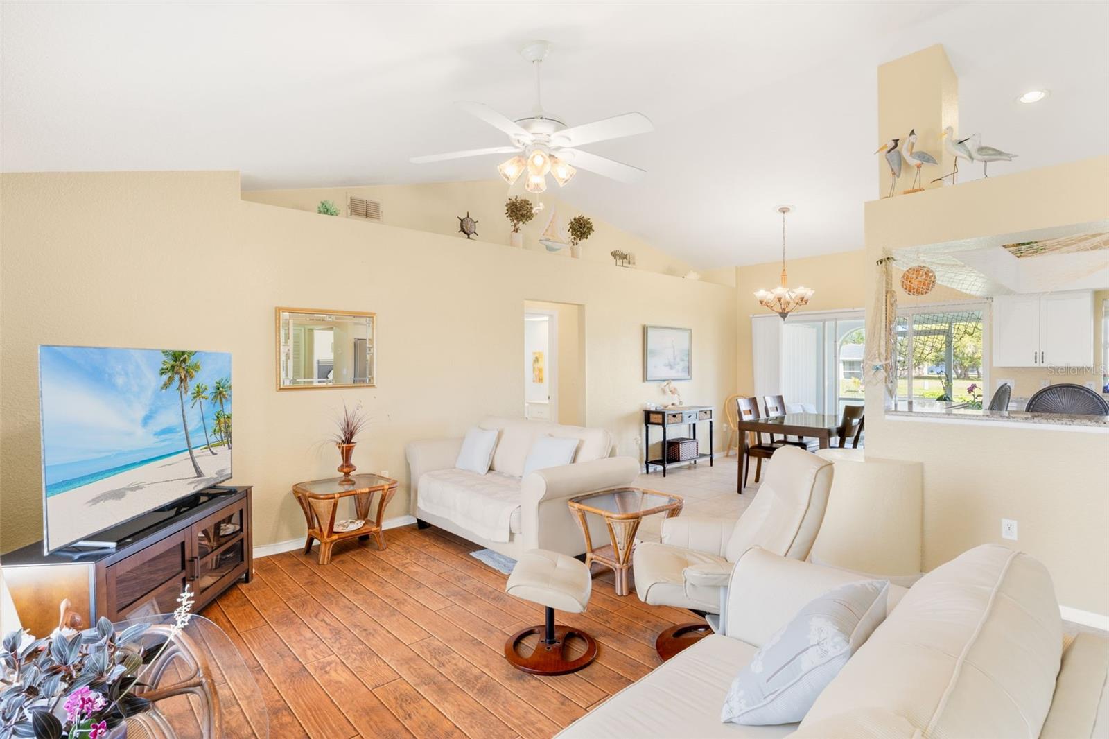 Beautifully Updated Home in Deep Creek — Move-In Ready & Full of Style! Welcome to this 3-bedroom, 2-bath gem in the desirable, deed-restricted community of Deep Creek! From the moment you walk in, you’ll feel right at home with vaulted ceilings, an open-concept layout, and an inviting atmosphere perfect for entertaining or relaxing. The kitchen is spacious, with numerous cabinets and newer appliances (approximately 5 years old), and flows seamlessly into the dining and living areas. Step outside to enjoy screened front and back lanais with tile flooring—ideal for morning coffee or evening gatherings. Your primary suite is a private retreat with lanai access, a large walk-in closet, and an en-suite bath. Updates include a brand-new 2025 water heater, a newer roof (installed 2 years ago), and updated guest bedroom flooring (installed 2 years ago)—providing comfort and peace of mind. Set amid lush, mature landscaping, the fenced backyard offers privacy and space for pets or outdoor fun. Prime Location! Just minutes from Deep Creek Golf Club, shopping, dining, and I-75 access. You’re only 15 minutes from historic Punta Gorda and under 30 miles to the Gulf’s stunning beaches. Plus, this home is not in a Special Flood Hazard Area and offers easy access to public boat ramps leading to Charlotte Harbor—the perfect blend of convenience, comfort, and coastal charm. Don’t miss this incredible opportunity—schedule your private showing today!