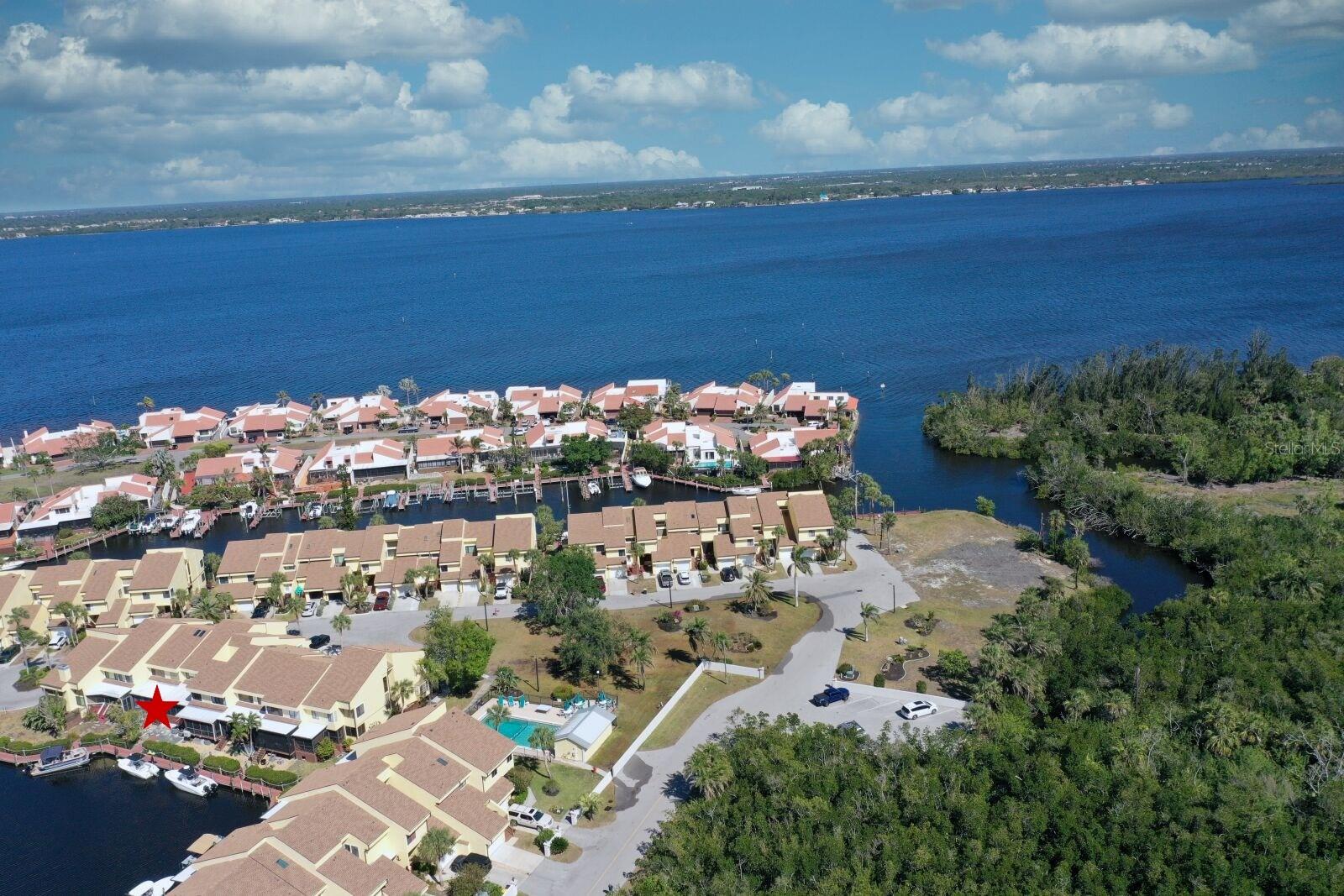 Opportunity awaits with this of charming waterfront condo in Punta Gorda’s gated Emerald Pointe development. This 2-bedroom, 2.5-bathroom townhome. offers the opportunity to finish and update to your taste. With over 1,700 sq. ft. of thoughtfully designed living space, this bright and inviting2 floor unit features stunning water views, an open floor plan, and exclusive community amenities. The interior boasts a tiled entry, a kitchen with granite countertops, soft-close drawers, tile backsplash, and newer appliances—plus ample storage. The owners started the flooring upgrade project and have material onsite to complete; The unique enclosed atrium between the breakfast area and living room floods the indoor space with natural light, while the large living room opens to a large enclosed lanai, perfect for enjoying picturesque canal and dock views. Upstairs, the master bedroom offers expansive water views, a walk-in closet, an additional closet, and an adjoining master bathroom with dual sinks, and a spacious tiled step-in shower with soothing waterfall fixtures. The generously sized guest bedroom includes its own private bath, and a convenient laundry closet with a barely used washer and dryer completes the upper level. A half bath on the main floor adds practicality. The home features a new roof, one new and one rebuilt air conditioning unit, a new water heater, along with an attached one-car garage. Emerald Pointe provides direct boating access to the Peace River and Charlotte Harbor, with dock space available on a first-come basis, managed by the Harbor Master. Enjoy a very active tennis club, pickle ball, bocce ball and yacht club in a vibrant active community. The community features a boat launch along with dry boat storage; available in winter. Hone your skills on the putting green, or cool off and relax in one of 3 community swimming pools (one heated), a fitness center, bbq on the outdoor grills and enjoy a clubhouse offering group activities and amenities. Experience all if this just minutes from Charlotte Harbor, top-rated Punta Gorda restaurants, medical facilities, shopping, beaches, and airports, with easy access to I-75 and US-41, this prime location ensures convenience and leisure. Sold as-is. Flooring is onsite. Garage still needs some finishing. The rest of the remodel is ready for your vision and primed for completion. This townhome is your gateway to the best of waterfront living—schedule your showing today!