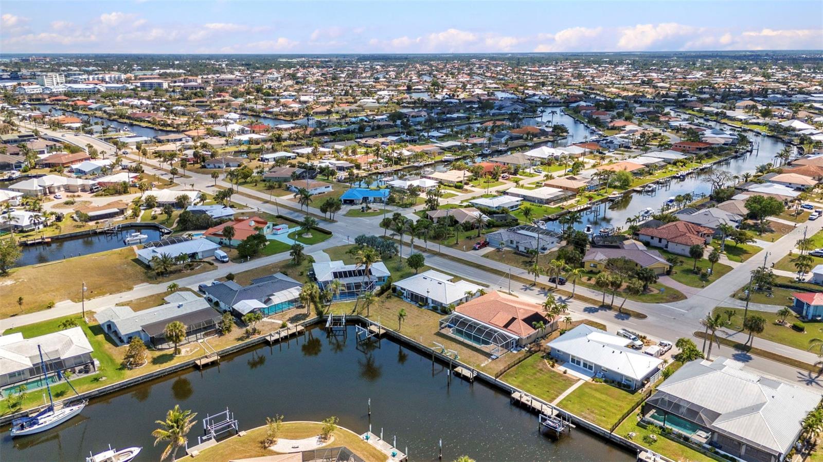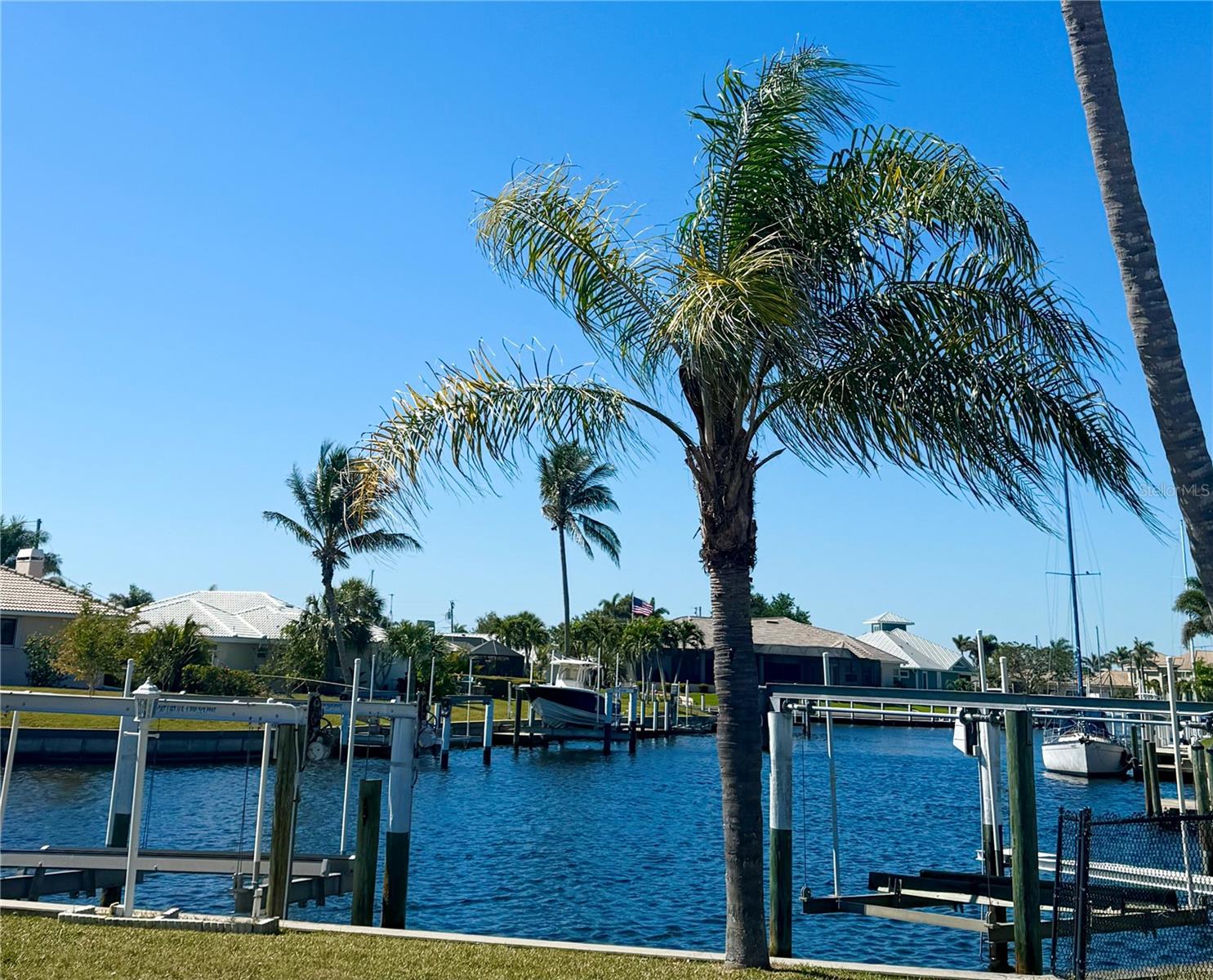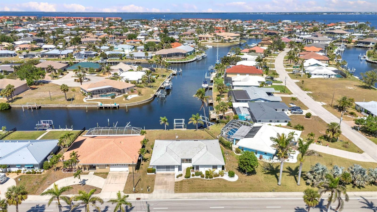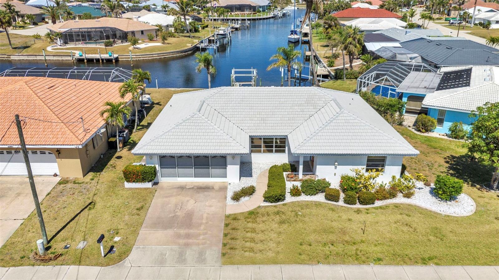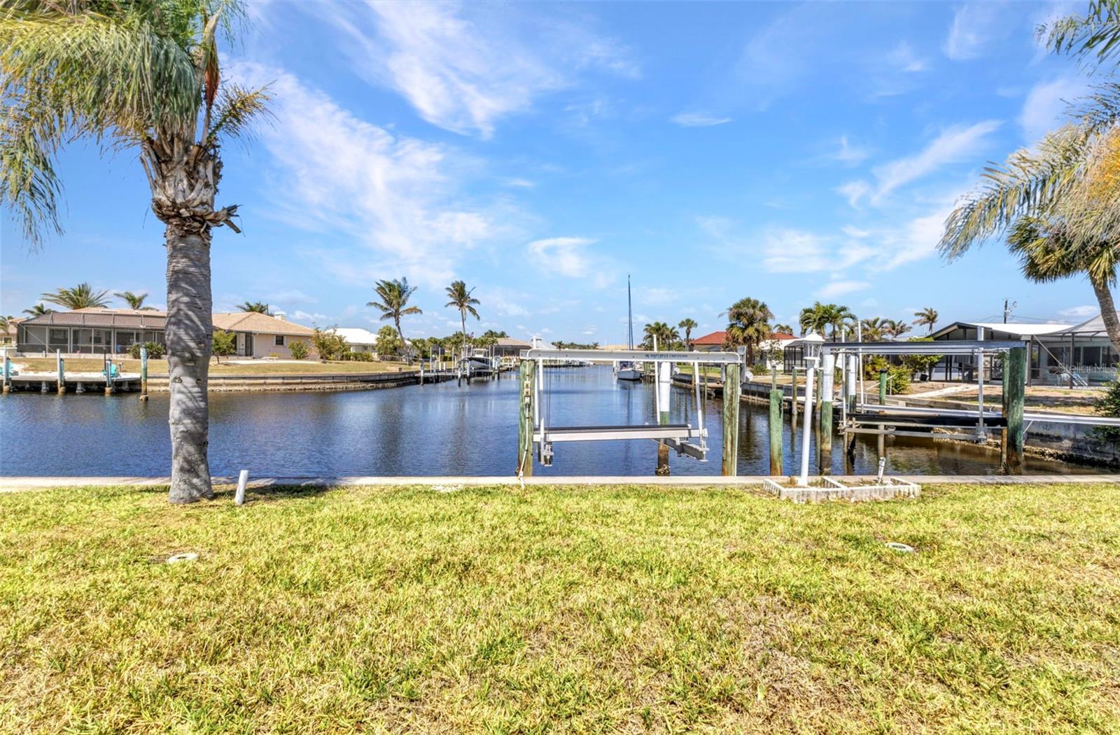 REDUCED!! Stunning sailboat access with wide canal views! Brand new ceramic tile roof August 2023! This beautifully maintained 2-bedroom, 2-bath, 2-car garage home in desirable Punta Gorda Isles offers a true waterfront lifestyle. Enjoy serene water views from nearly every room, thanks to the home’s smart layout and oversized windows. A 10,000 lb boat lift and concrete dock make this a boater’s dream. Step inside to find a bright, airy interior featuring a new ceramic tile roof, granite countertops, and tastefully updated kitchen cabinets that flow seamlessly into the dinette and breakfast nook. Both bathrooms are elegantly updated with granite vanities and modern showers. Set on an oversized, irregular lot, the property also boasts tropical fruit trees like mango and sugar apple—perfect for nature lovers. Most furnishings are lightly used and will remain, offering a move-in-ready experience. Unwind in the spacious lanai as you take in gorgeous sunsets over the canal—ideal for evening relaxation or entertaining. This is Florida waterfront living at its finest!Stunning sailboat access with wide canal views! This beautifully maintained 2-bedroom, 2-bath, 2-car garage home in desirable Punta Gorda Isles offers a true waterfront lifestyle. Enjoy serene water views from nearly every room, thanks to the home’s smart layout and oversized windows. A 10,000 lb boat lift and concrete dock make this a boater’s dream. Step inside to find a bright, airy interior featuring a new ceramic tile roof, granite countertops, and tastefully updated kitchen cabinets that flow seamlessly into the dinette and breakfast nook. Both bathrooms are elegantly updated with granite vanities and modern showers. Set on an oversized, irregular lot, the property also boasts tropical fruit trees like mango and sugar apple—perfect for nature lovers. Most furnishings are lightly used and will remain, offering a move-in-ready experience. Unwind in the spacious lanai as you take in gorgeous sunsets over the canal—ideal for evening relaxation or entertaining. This is Florida waterfront living at its finest!