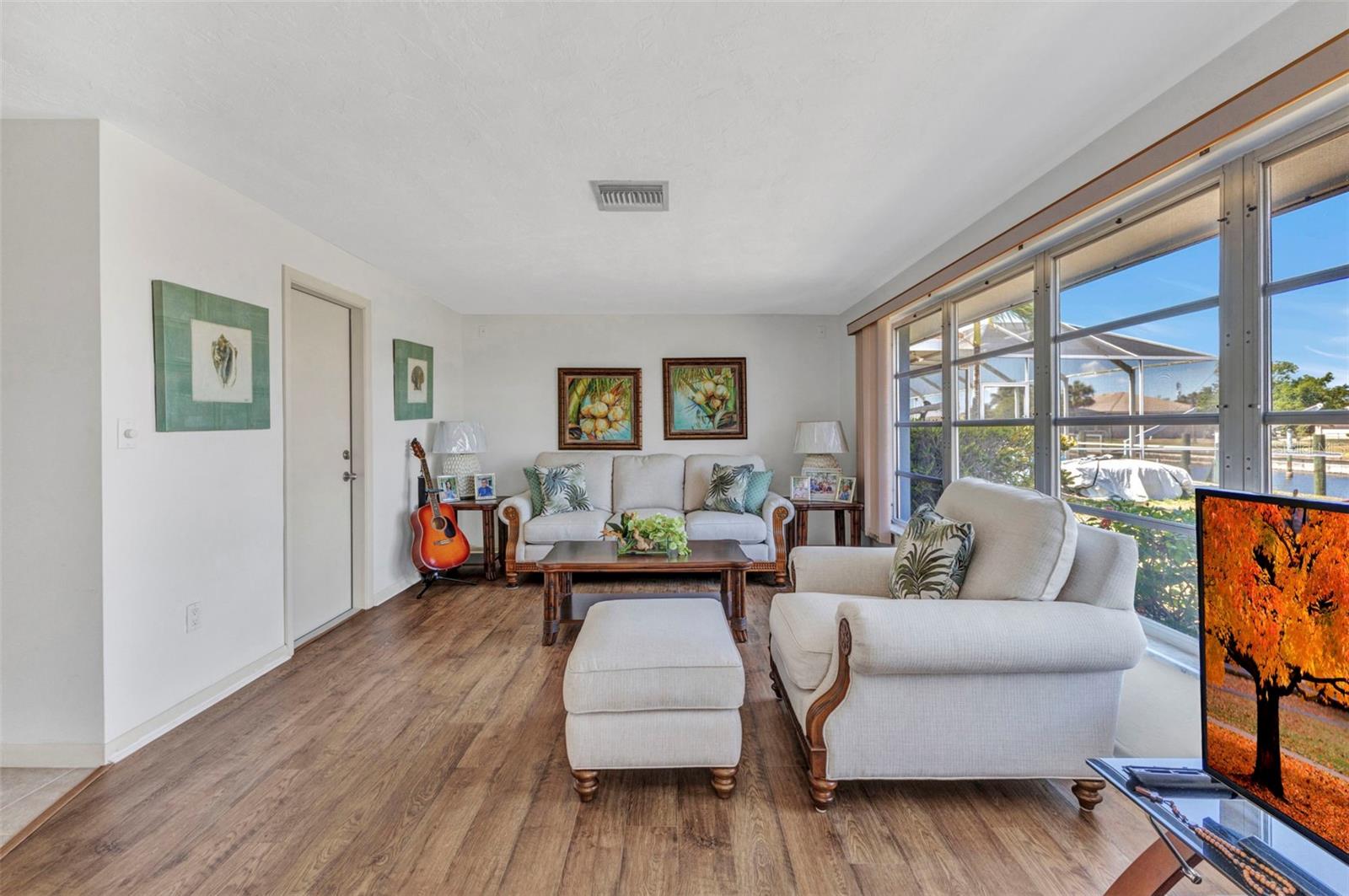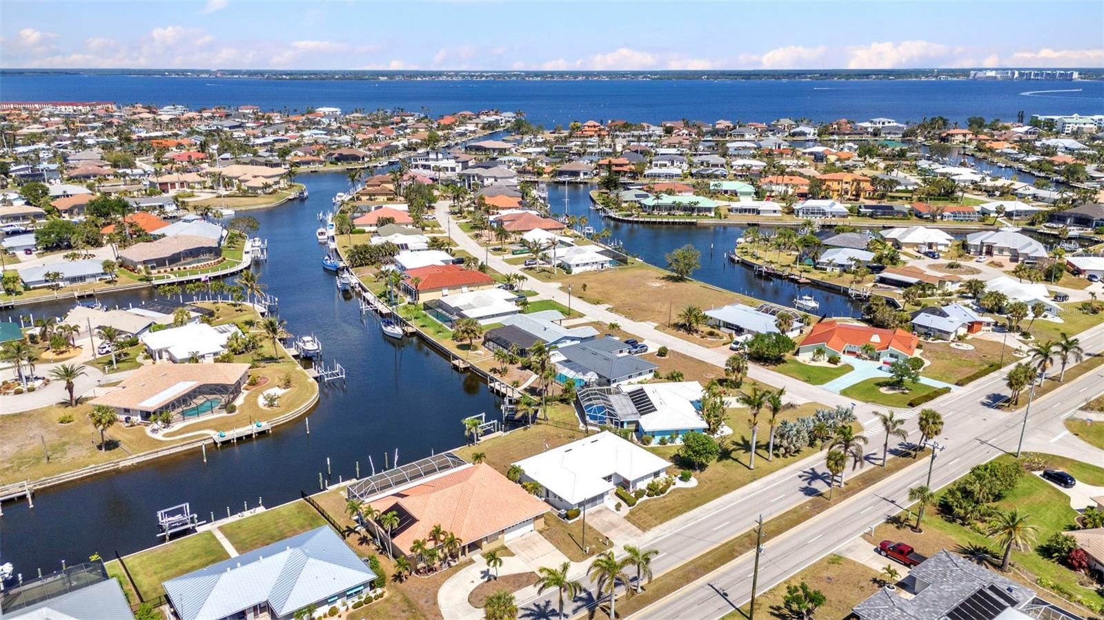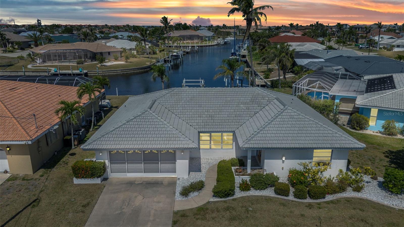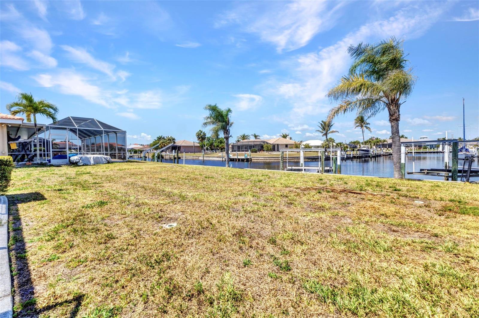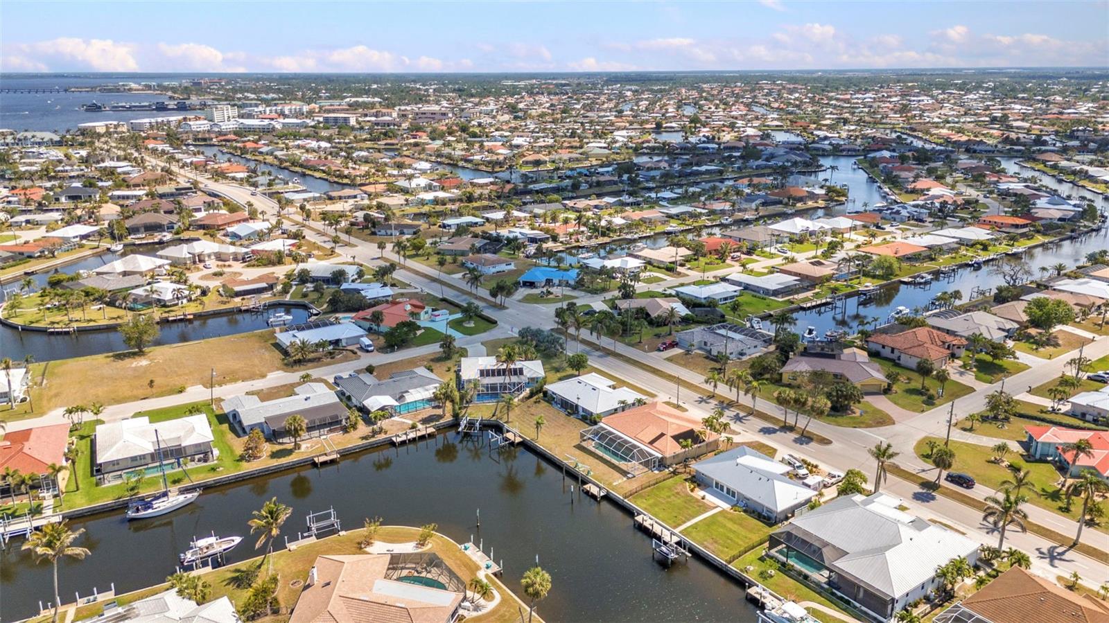 REDUCED!! Stunning sailboat access with wide canal views! Brand new ceramic tile roof August 2023! This beautifully maintained 2-bedroom, 2-bath, 2-car garage home in desirable Punta Gorda Isles offers a true waterfront lifestyle. Enjoy serene water views from nearly every room, thanks to the home’s smart layout and oversized windows. A 10,000 lb boat lift and concrete dock make this a boater’s dream. Step inside to find a bright, airy interior featuring a new ceramic tile roof, granite countertops, and tastefully updated kitchen cabinets that flow seamlessly into the dinette and breakfast nook. Both bathrooms are elegantly updated with granite vanities and modern showers. Set on an oversized, irregular lot, the property also boasts tropical fruit trees like mango and sugar apple—perfect for nature lovers. Most furnishings are lightly used and will remain, offering a move-in-ready experience. Unwind in the spacious lanai as you take in gorgeous sunsets over the canal—ideal for evening relaxation or entertaining. This is Florida waterfront living at its finest!Stunning sailboat access with wide canal views! This beautifully maintained 2-bedroom, 2-bath, 2-car garage home in desirable Punta Gorda Isles offers a true waterfront lifestyle. Enjoy serene water views from nearly every room, thanks to the home’s smart layout and oversized windows. A 10,000 lb boat lift and concrete dock make this a boater’s dream. Step inside to find a bright, airy interior featuring a new ceramic tile roof, granite countertops, and tastefully updated kitchen cabinets that flow seamlessly into the dinette and breakfast nook. Both bathrooms are elegantly updated with granite vanities and modern showers. Set on an oversized, irregular lot, the property also boasts tropical fruit trees like mango and sugar apple—perfect for nature lovers. Most furnishings are lightly used and will remain, offering a move-in-ready experience. Unwind in the spacious lanai as you take in gorgeous sunsets over the canal—ideal for evening relaxation or entertaining. This is Florida waterfront living at its finest!