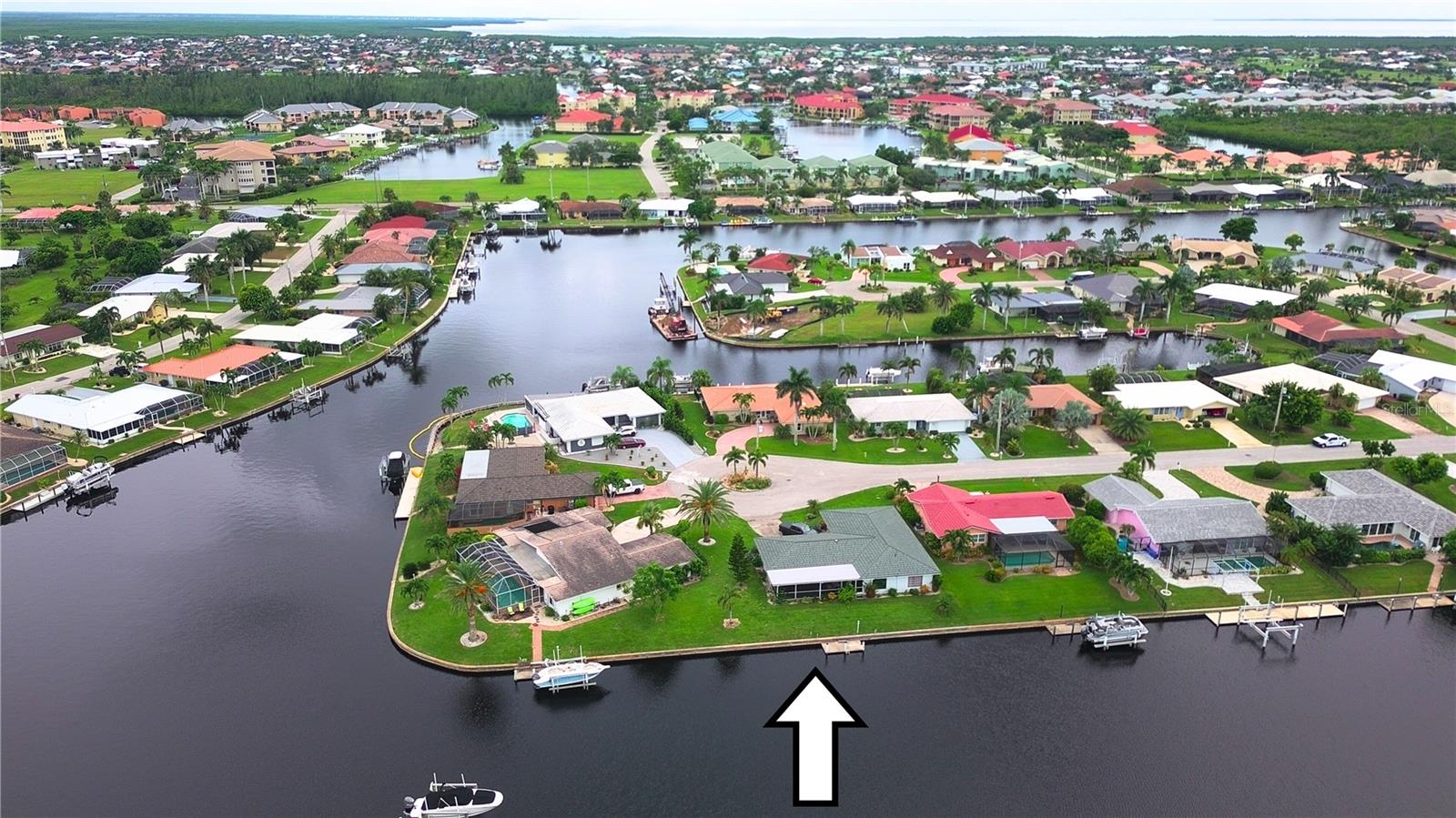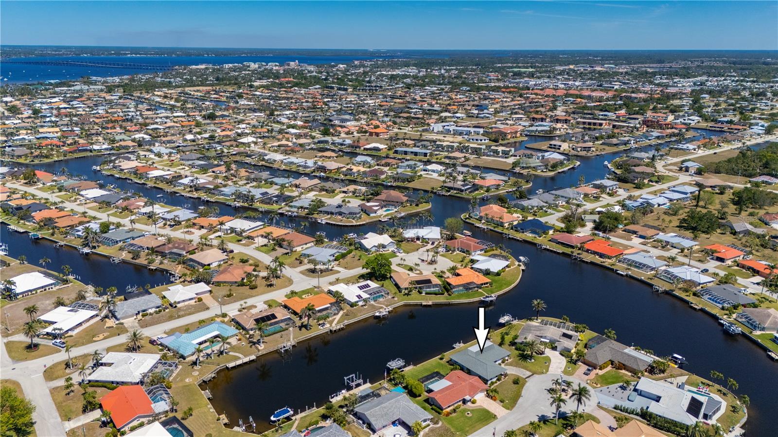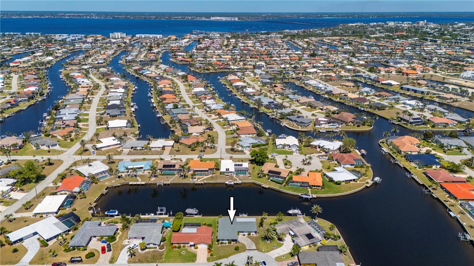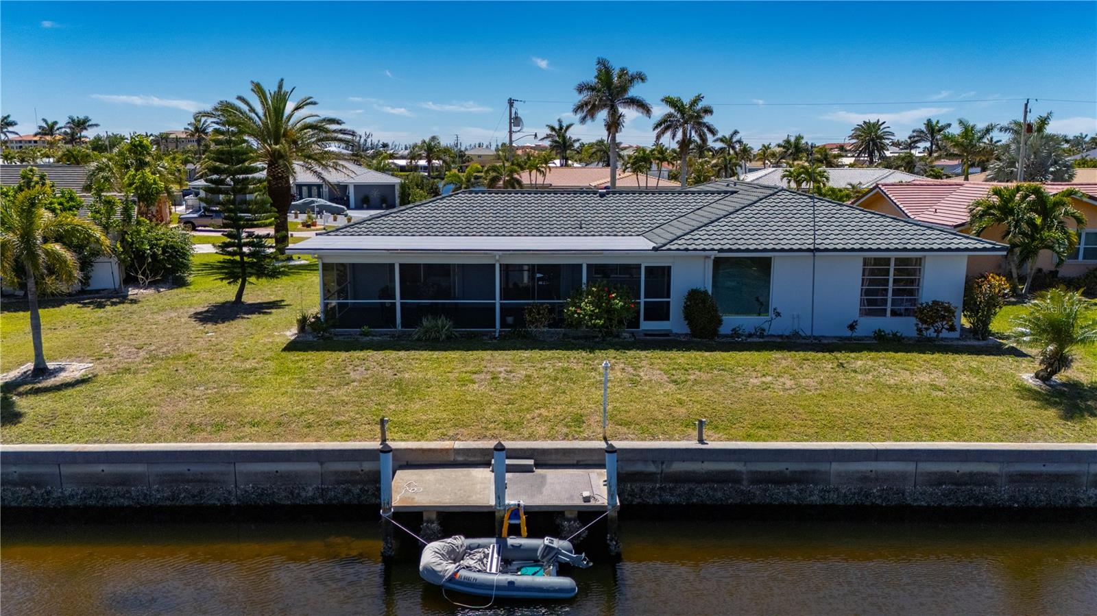 Opportunity is knocking in Punta Gorda Isles, where 105 feet of waterfront create the ultimate backdrop for your Florida dream. This three bedroom, two bathroom home offers powerboat access to Charlotte Harbor with just one bridge, putting you minutes from open water adventures, sunset cruises, and evenings at Fishermen’s Village. A private 7x15 concrete dock makes it easy to launch and live the boating lifestyle you’ve always envisioned. Set at the end of a quiet cul-de-sac, the property offers both privacy and peace. The exterior shines with a fresh, modern color scheme and a 2023 metal roof designed with the timeless look of tile, blending beauty with long-lasting durability. Step inside to find a traditional split-bedroom layout that balances comfort and function, featuring a formal living room, dining area, and a spacious family room. The family space overlooks the canal through a large picture window and includes a built-in bar—an inviting setting for entertaining. Multiple sliding glass doors open to a screened lanai, where you can relax as dolphins, manatees, stingrays, bald eagles, and egrets pass right by your backyard. The primary suite is privately tucked away, while guest bedrooms and bath are located on the opposite side. The home’s carpeted interiors provide a blank canvas for you to bring your own style with new flooring, and there’s ample room to add a pool if that’s on your wish list. This is more than just a property; It’s an opportunity to embrace the Punta Gorda Isles lifestyle in one of Florida’s most desirable boating communities. With a city-maintained seawall and endless potential to make it your own, this waterfront gem is waiting for your vision. Schedule your private tour today and see firsthand what life on the water can be.