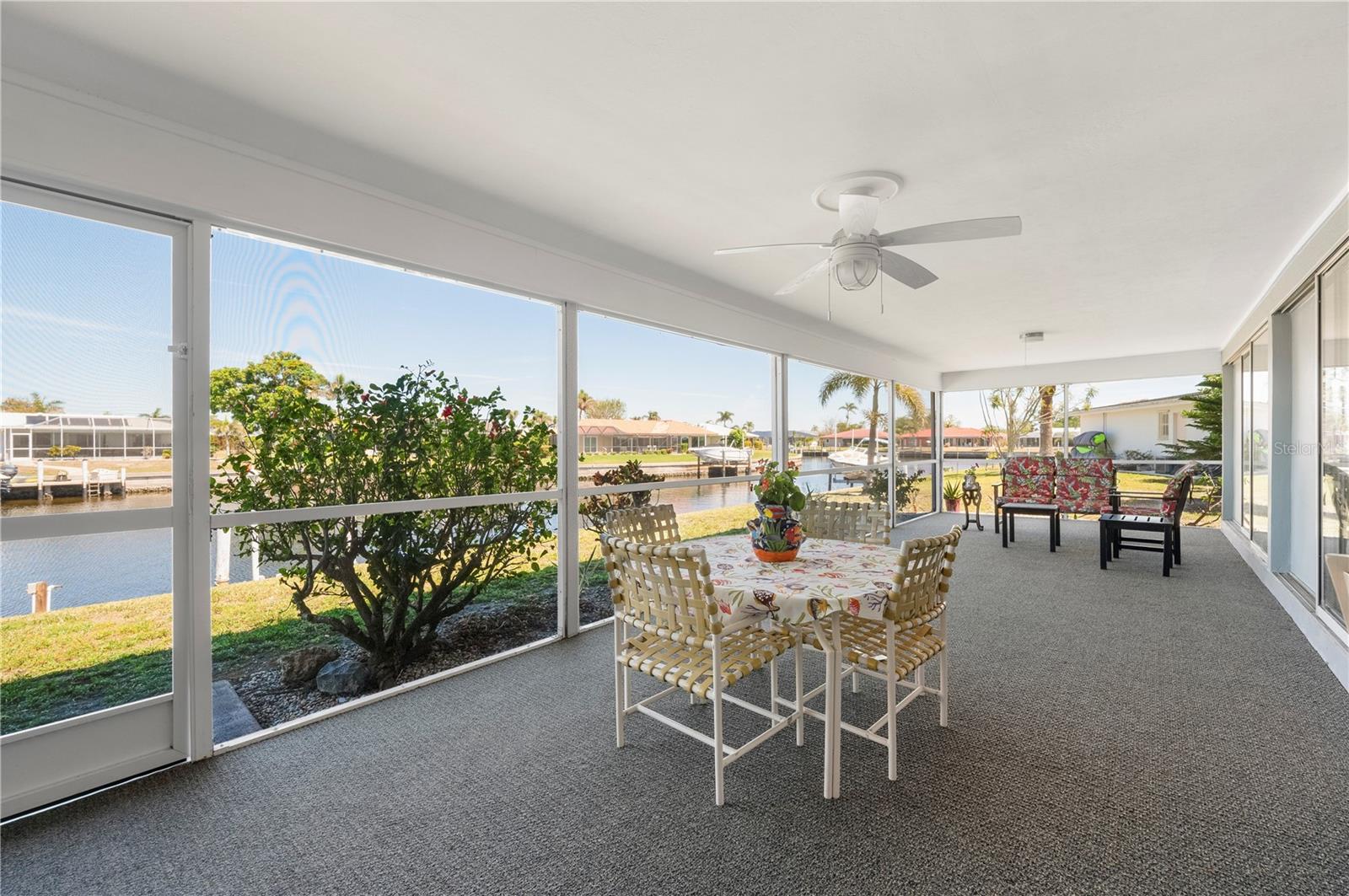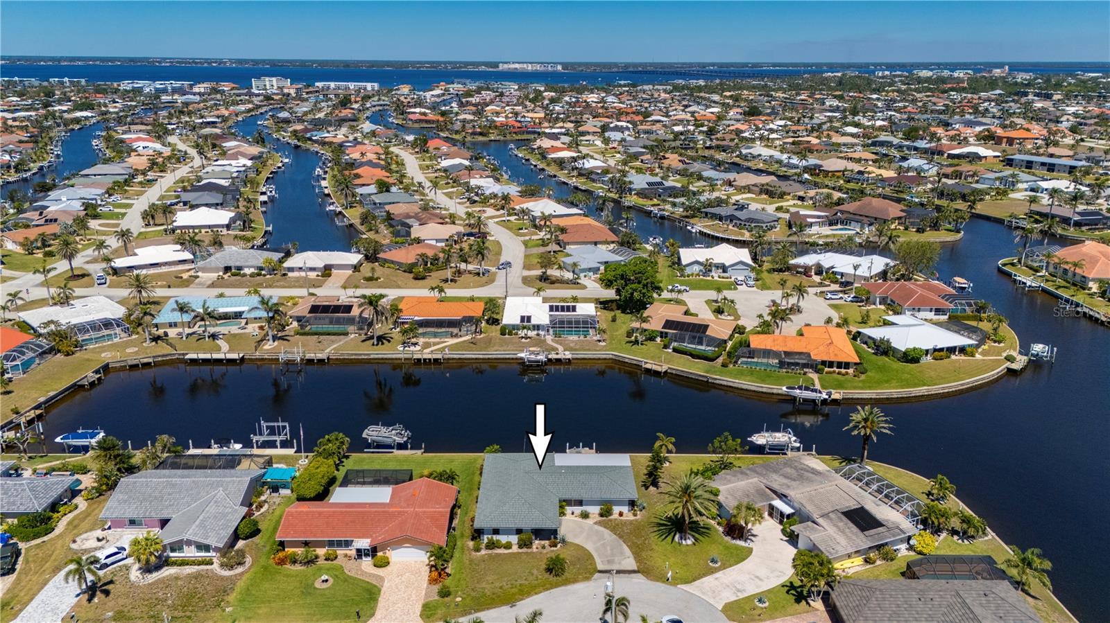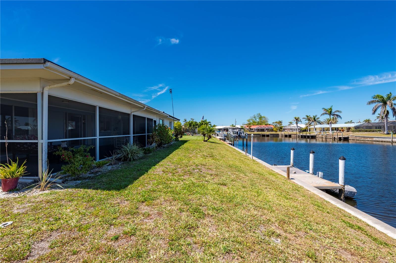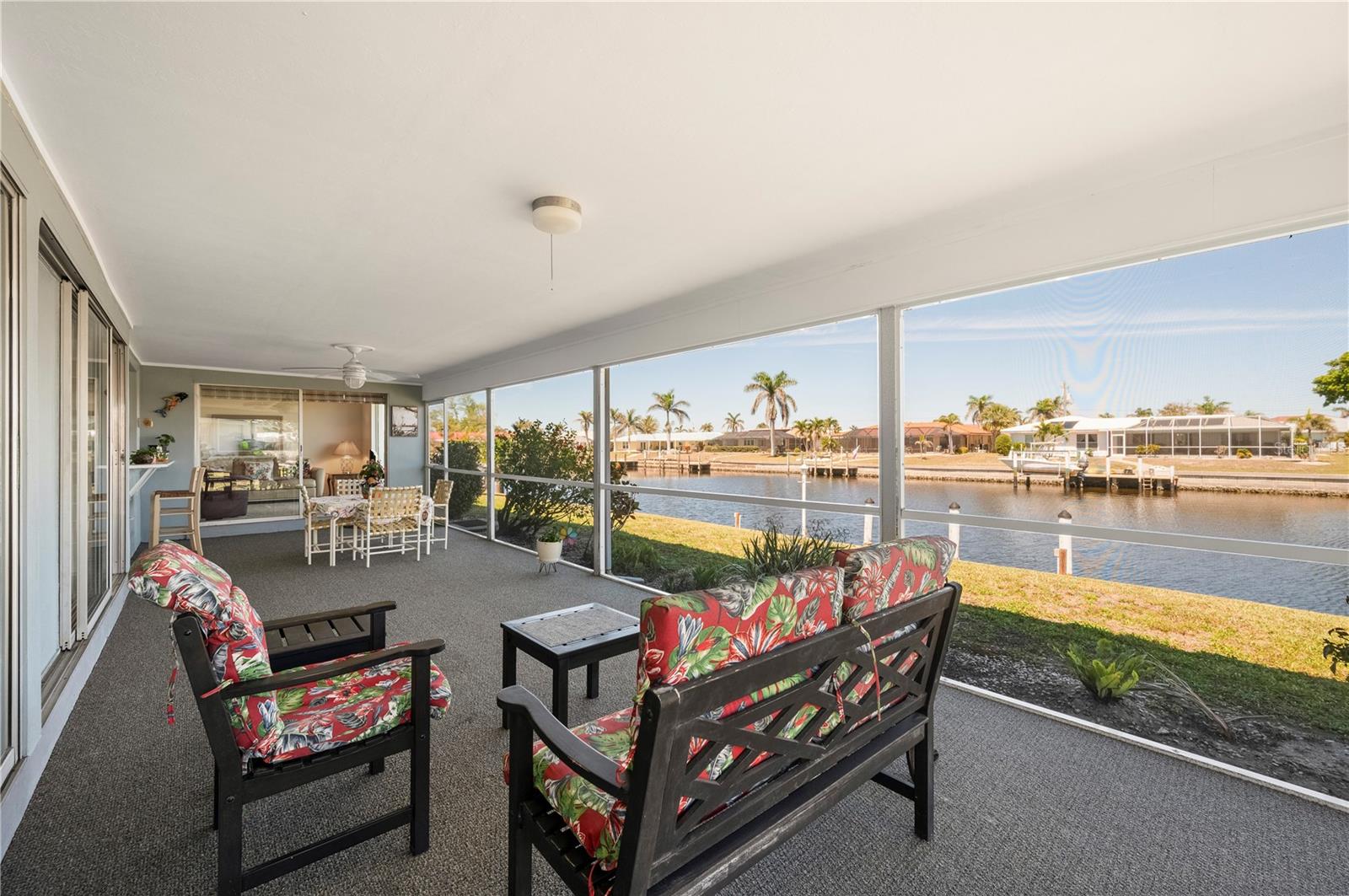 Opportunity is knocking in Punta Gorda Isles, where 105 feet of waterfront create the ultimate backdrop for your Florida dream. This three bedroom, two bathroom home offers powerboat access to Charlotte Harbor with just one bridge, putting you minutes from open water adventures, sunset cruises, and evenings at Fishermen’s Village. A private 7x15 concrete dock makes it easy to launch and live the boating lifestyle you’ve always envisioned. Set at the end of a quiet cul-de-sac, the property offers both privacy and peace. The exterior shines with a fresh, modern color scheme and a 2023 metal roof designed with the timeless look of tile, blending beauty with long-lasting durability. Step inside to find a traditional split-bedroom layout that balances comfort and function, featuring a formal living room, dining area, and a spacious family room. The family space overlooks the canal through a large picture window and includes a built-in bar—an inviting setting for entertaining. Multiple sliding glass doors open to a screened lanai, where you can relax as dolphins, manatees, stingrays, bald eagles, and egrets pass right by your backyard. The primary suite is privately tucked away, while guest bedrooms and bath are located on the opposite side. The home’s carpeted interiors provide a blank canvas for you to bring your own style with new flooring, and there’s ample room to add a pool if that’s on your wish list. This is more than just a property; It’s an opportunity to embrace the Punta Gorda Isles lifestyle in one of Florida’s most desirable boating communities. With a city-maintained seawall and endless potential to make it your own, this waterfront gem is waiting for your vision. Schedule your private tour today and see firsthand what life on the water can be.