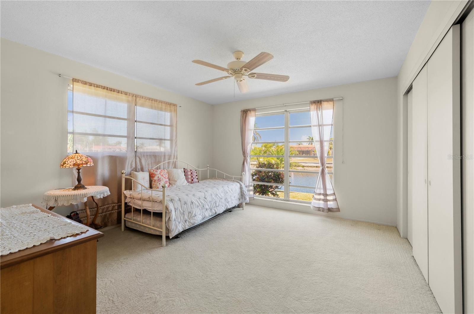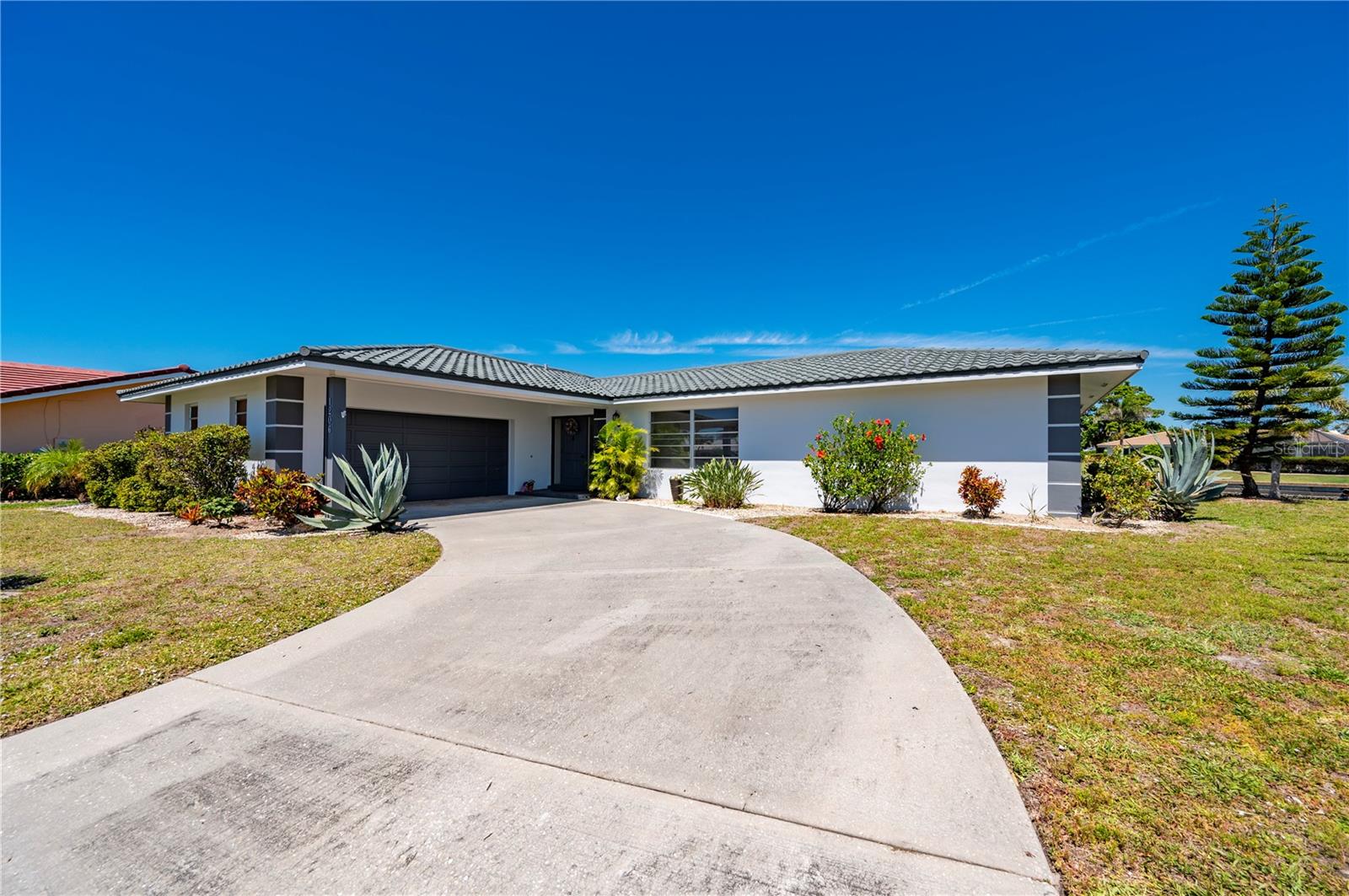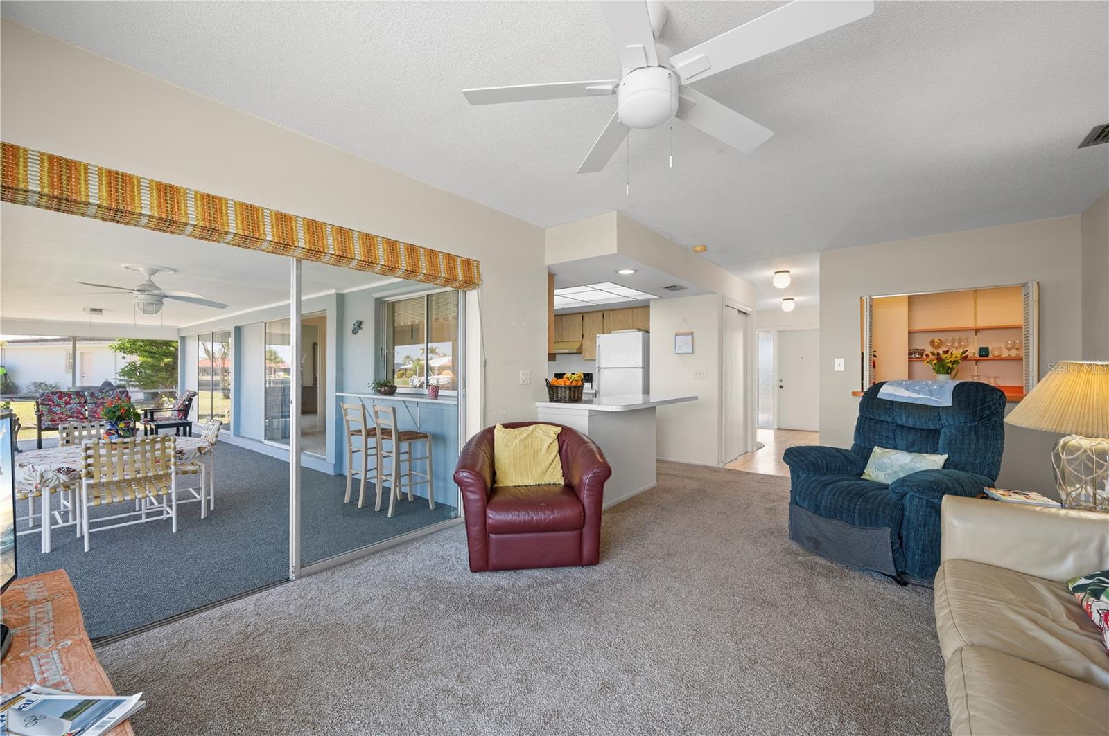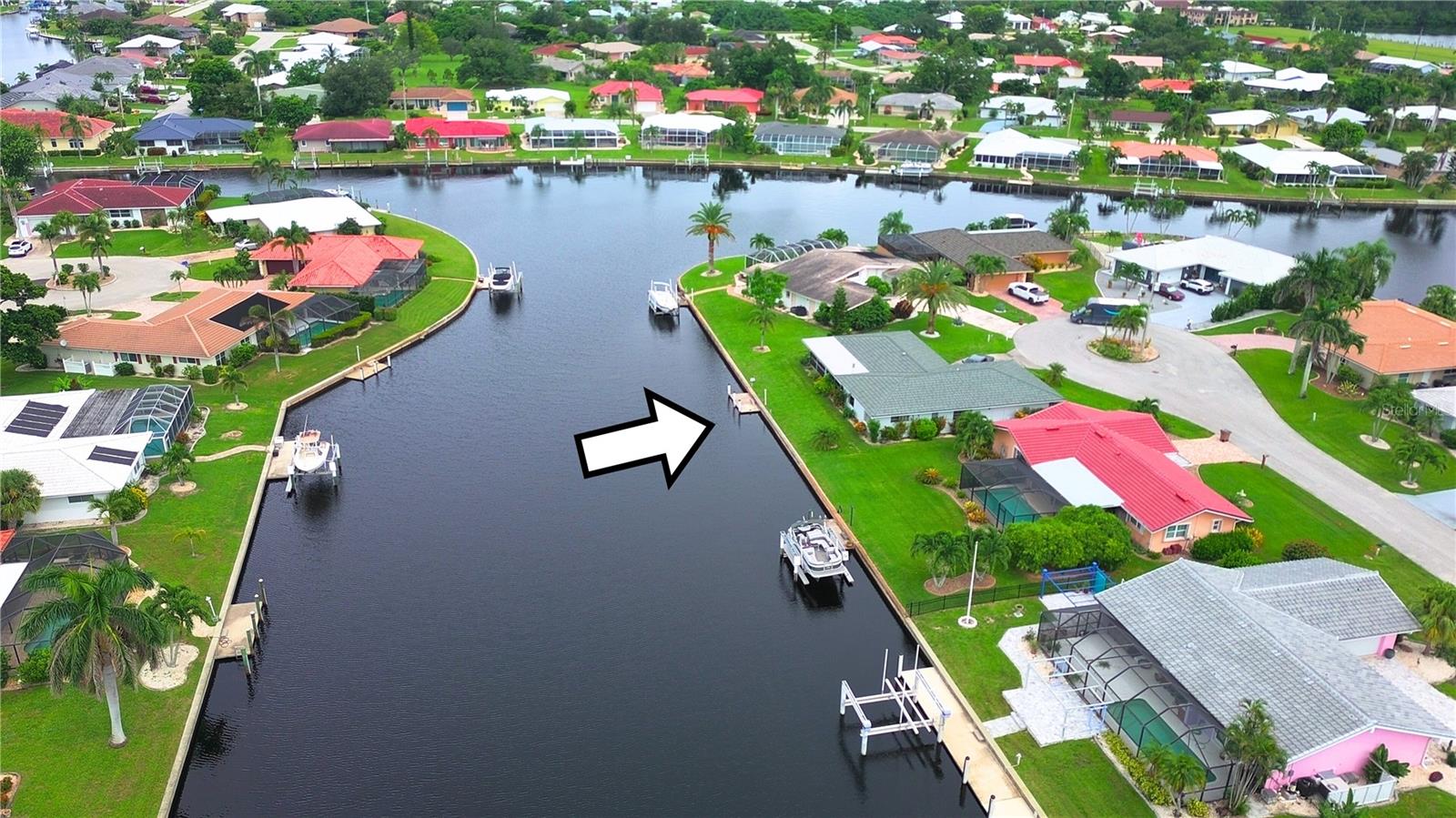 Opportunity is knocking in Punta Gorda Isles, where 105 feet of waterfront create the ultimate backdrop for your Florida dream. This three bedroom, two bathroom home offers powerboat access to Charlotte Harbor with just one bridge, putting you minutes from open water adventures, sunset cruises, and evenings at Fishermen’s Village. A private 7x15 concrete dock makes it easy to launch and live the boating lifestyle you’ve always envisioned. Set at the end of a quiet cul-de-sac, the property offers both privacy and peace. The exterior shines with a fresh, modern color scheme and a 2023 metal roof designed with the timeless look of tile, blending beauty with long-lasting durability. Step inside to find a traditional split-bedroom layout that balances comfort and function, featuring a formal living room, dining area, and a spacious family room. The family space overlooks the canal through a large picture window and includes a built-in bar—an inviting setting for entertaining. Multiple sliding glass doors open to a screened lanai, where you can relax as dolphins, manatees, stingrays, bald eagles, and egrets pass right by your backyard. The primary suite is privately tucked away, while guest bedrooms and bath are located on the opposite side. The home’s carpeted interiors provide a blank canvas for you to bring your own style with new flooring, and there’s ample room to add a pool if that’s on your wish list. This is more than just a property; It’s an opportunity to embrace the Punta Gorda Isles lifestyle in one of Florida’s most desirable boating communities. With a city-maintained seawall and endless potential to make it your own, this waterfront gem is waiting for your vision. Schedule your private tour today and see firsthand what life on the water can be.