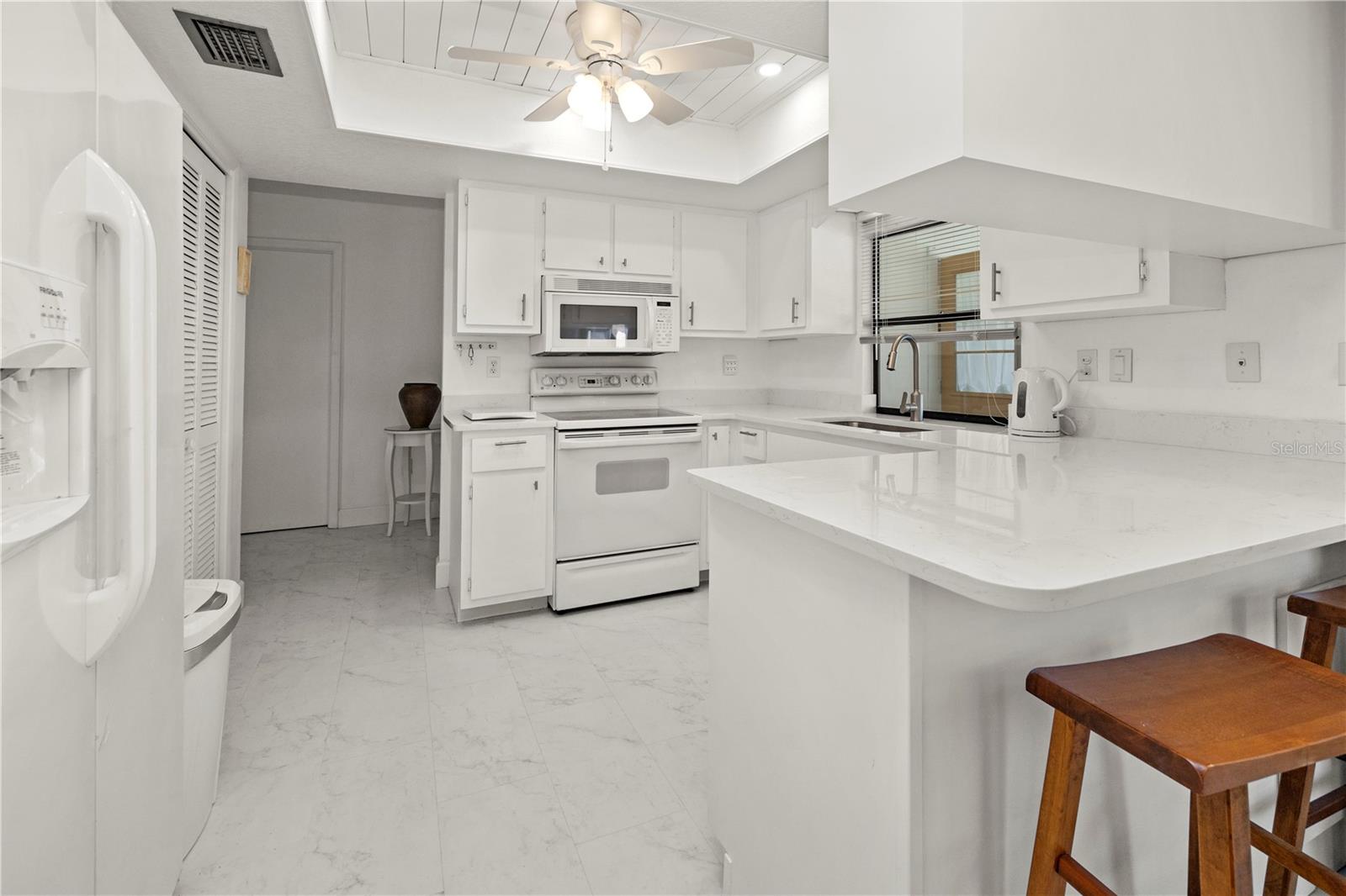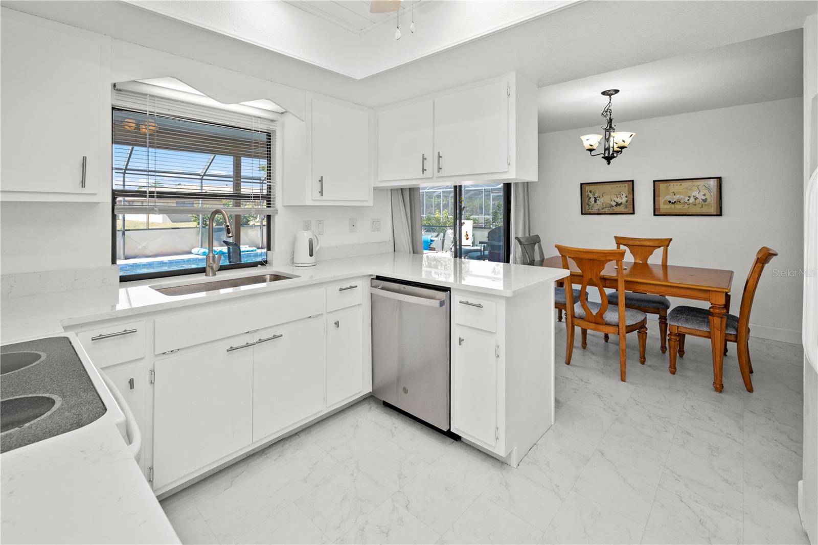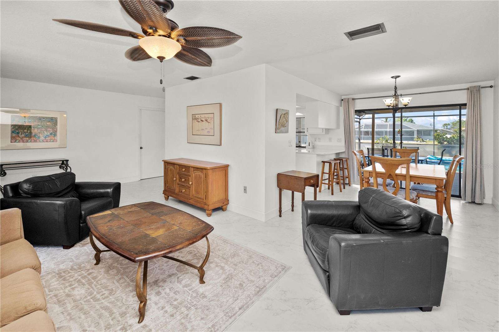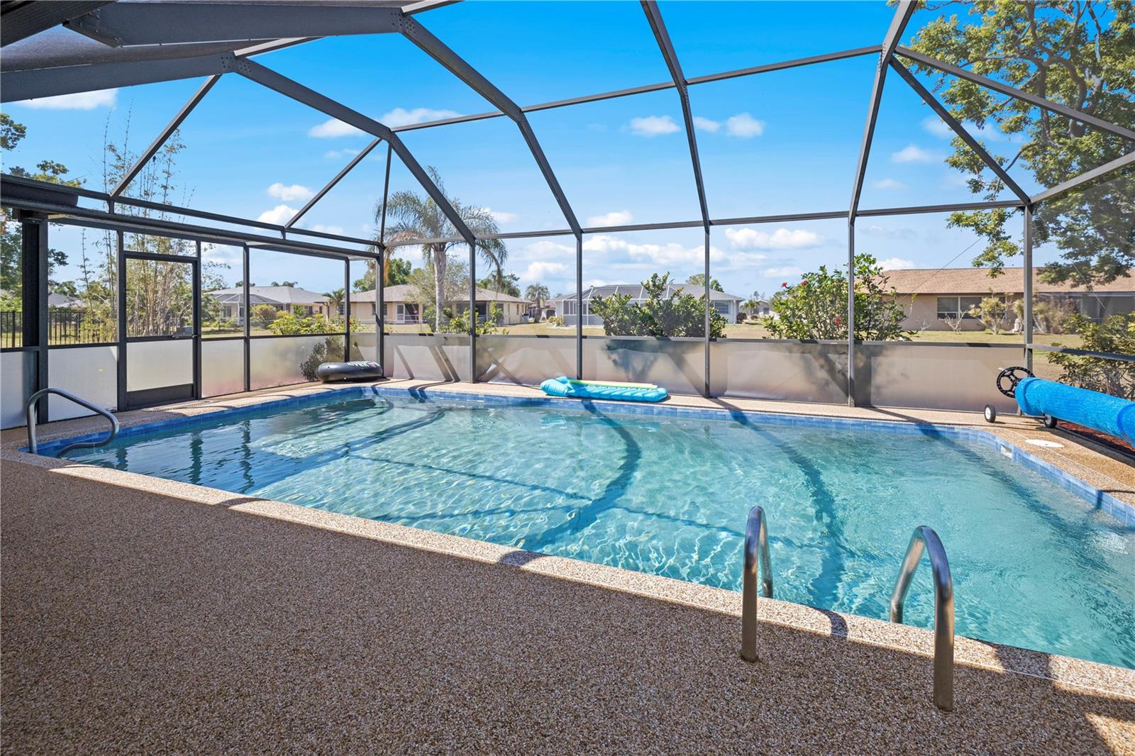 Immaculately maintained and thoughtfully upgraded, this efficient 4-bedroom, 2-bath pool home is conveniently located near an I-75 interchange, Downtown Punta Gorda, shopping, and the Port Charlotte Medical District. Enjoy Florida’s iconic sunsets from your spacious Lanai and HUGE Pool (both resurfaced in 2022). Other upgrades include Quartz Countertops in the Kitchen and Baths, Plank Tile flooring throughout, Pool Pump replacement, a new Roof (2022) with a 30-year materials warranty and 7-year workmanship warranty, and fresh interior and exterior paint. The Living Area, Primary Suite, and Guest Wing all provide direct access to the screened Lanai and Pool Deck -ideal for seamless indoor-outdoor living. The compact Kitchen features a Breakfast Bar, a Closet Pantry and dual-entry design. The major appliances have been gently used as seller is a Canadian snowbird; also, think HVAC cooling to only 80 degrees during the hottest part of the year. Walking access to Lake Henry is only 200 yards away via your greenbelt—perfect for kayaking and canoeing. Lots of storage, squeeky clean and can quickly become move-in ready—don’t miss out on this Florida gem! Call today for your private showing!
