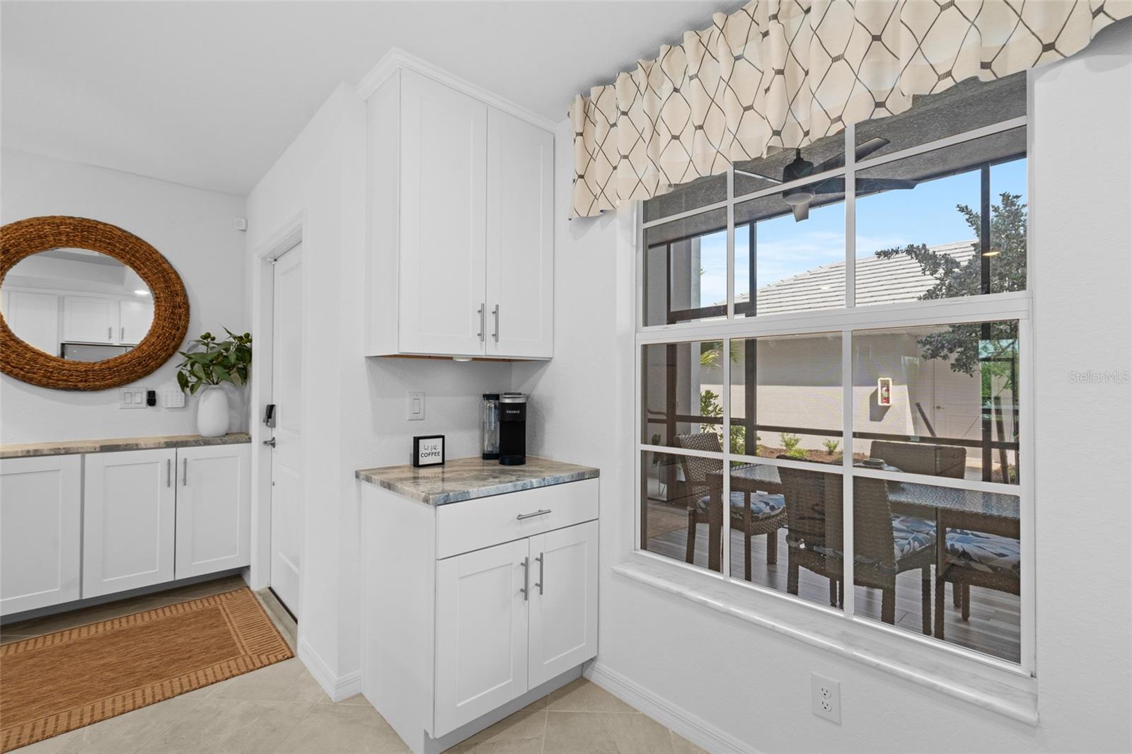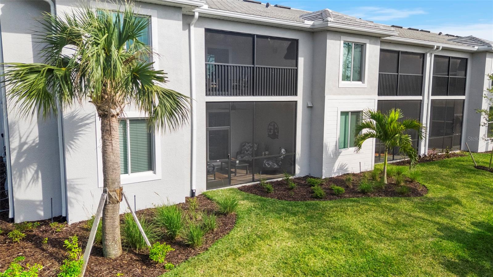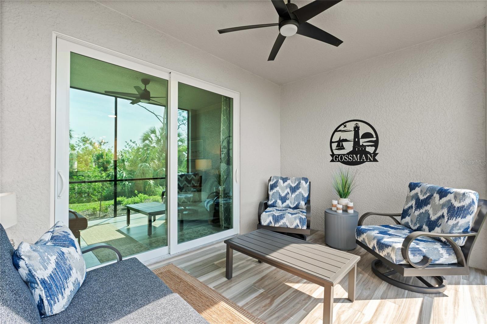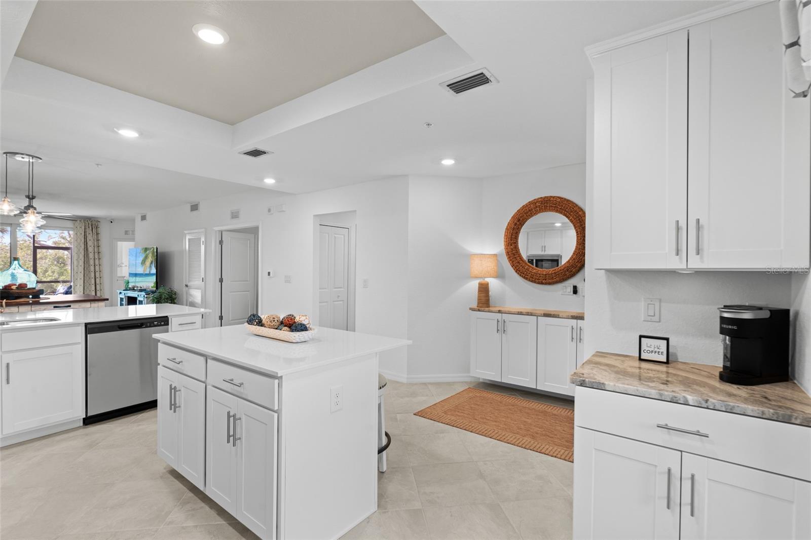Elegant First-Floor Arabella Veranda with Stunning Upgrades. Step into refined living with this beautifully upgraded first-floor Veranda in the highly sought-after Heritage Landing Golf & Country Club. From the moment you enter, you'll appreciate the thoughtful enhancements that make this home both functional and elegant. The foyer welcomes you with custom white cabinetry topped with granite countertop, offering both style and additional storage. The well-appointed kitchen features even more added cabinetry, a coffee bar with a granite countertop, crisp white quartz surfaces, a stylish backsplash, and stainless steel appliances. Throughout the home, high-end lighting and fans create a sophisticated ambiance, complemented by fresh paint & custom wainscoting to several rooms for an extra touch of polish. The open floor plan with split bedrooms is perfect for entertaining, while the den with French doors provides the flexibility for extra guest space or a home office. The spacious primary suite boasts two walk-in closets and an en-suite bath featuring dual sinks, added cabinetry, and a tiled walk-in shower with a glass enclosure. Even the laundry room has been upgraded with added cabinetry. Relax and entertain on the west-facing lanai, offering tranquil sunset views. Both front and rear lanais have been upgraded with plank tile. Enjoy peace of mind and security with impact-resistant doors and windows, plus a no-flood-zone location. Your private one-car garage is located just across from your front lanai, and a satellite pool is next door for added convenience. This home comes with a Social Membership, allowing you to experience resort-style living at Heritage Landing. Enjoy the resort pool with a shallow beach entry and lap swimming area. The tiki bar is conveniently located inside the gated pool area. Tennis, pickleball, and bocce ball courts are nextdoor. The fitness center is at the cutting edge with saunas, locker rooms, and full service spa. Conveniently located near downtown, Fisherman’s Village, PG Airport, I-75, shopping, dining, and more. Don’t miss this opportunity to own an elegant, upgraded Veranda in a premier community. Call today to schedule a showing and see these great amenities.