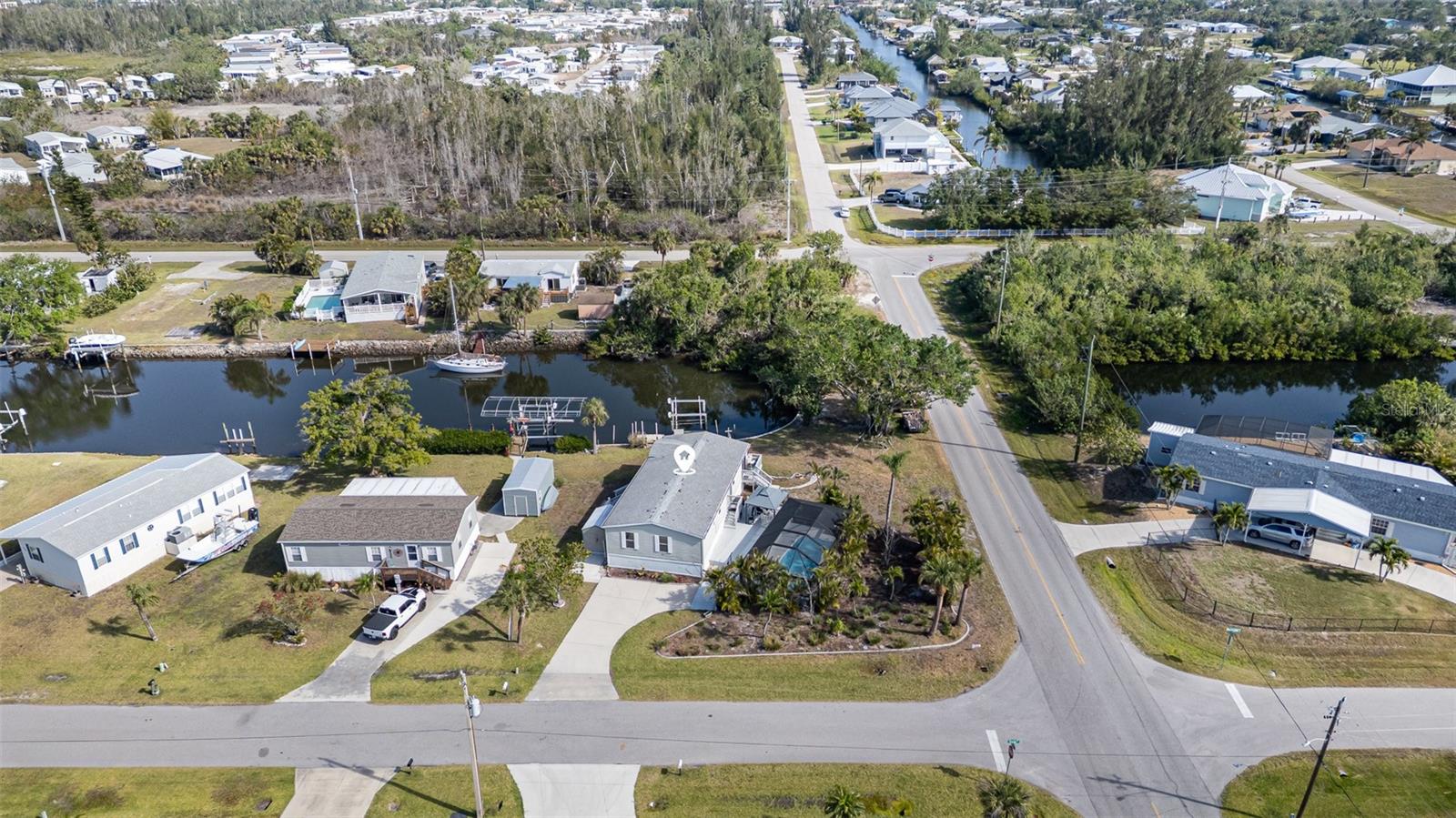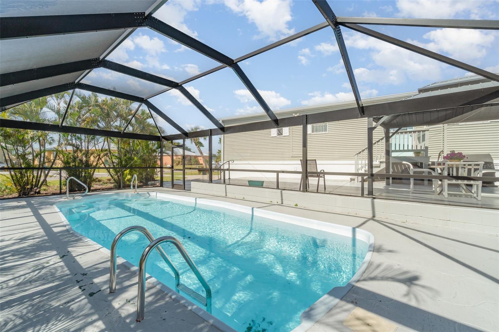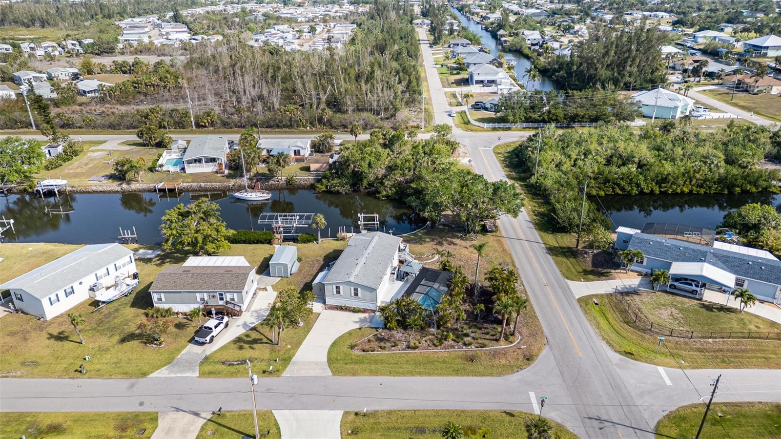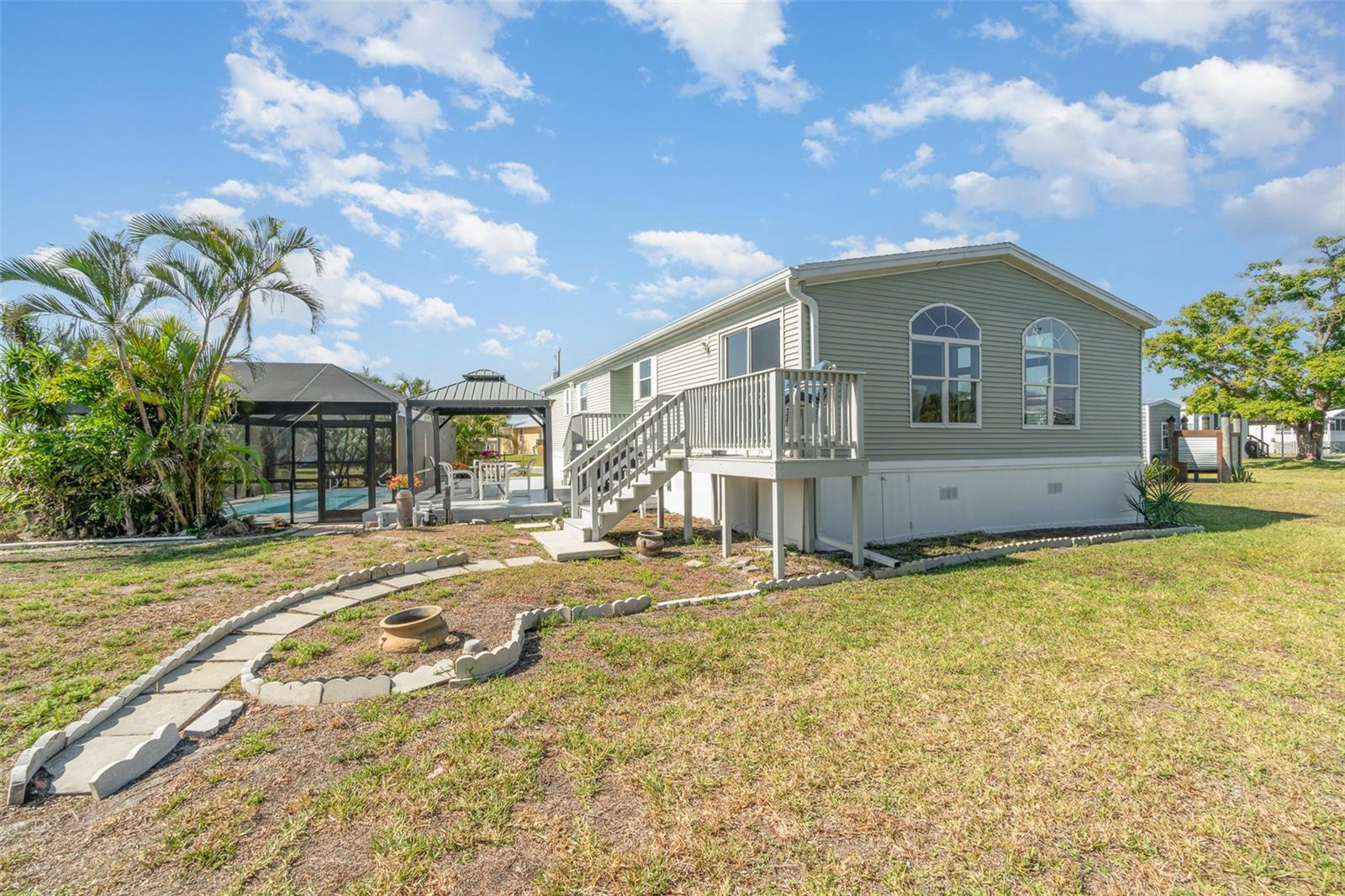 Sail or powerboat access with 100 feet on the water allowing plenty of room for 2 boats! This 2005 built 2 bedroom, 2 bath home along with a den is light and bright with plenty of windows to let the sunshine in. The inground pool area has a newer cage and pool pump. The oversized corner lot gives plenty of space to garden or just sit and relax under mature shade trees. Eat in kitchen has granite tops with a cook top/wall oven set up. Hard flooring everywhere except the 2 bedrooms. No HOA with this property so bring the boat or RV and keep it onsite. You can have it all with this great property for year around living, snowbird use or income producing rental.