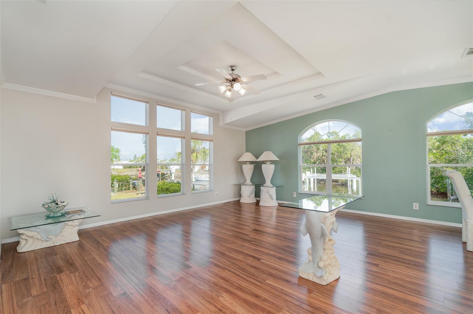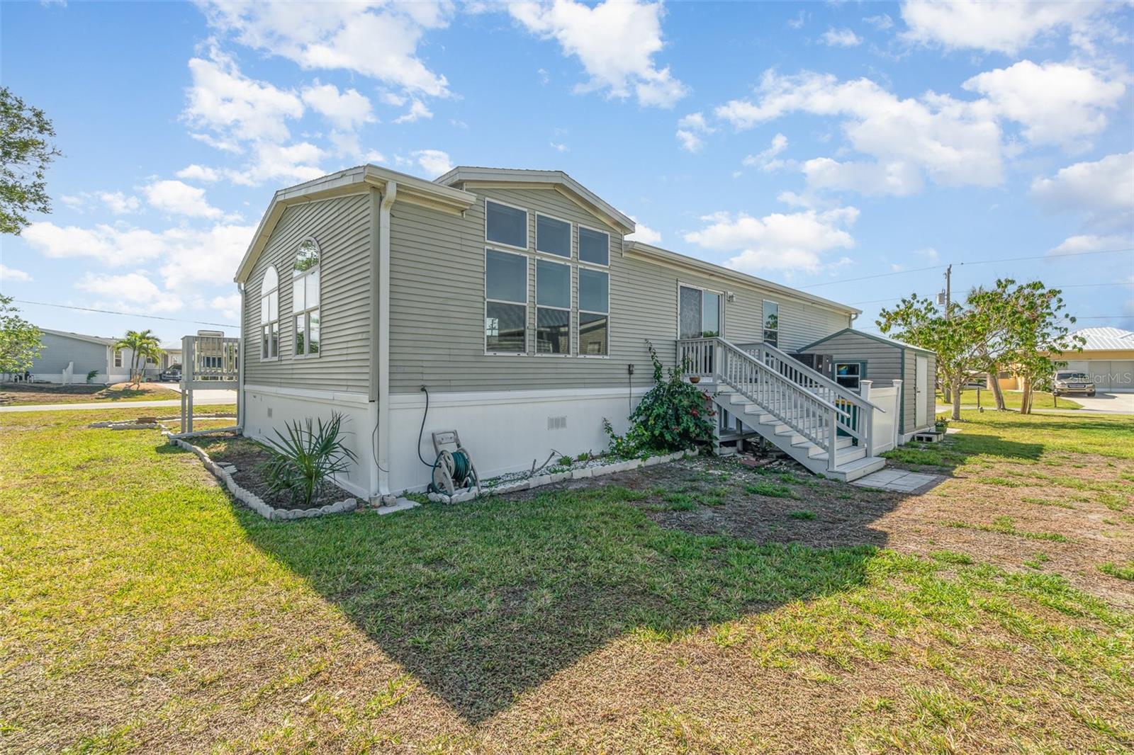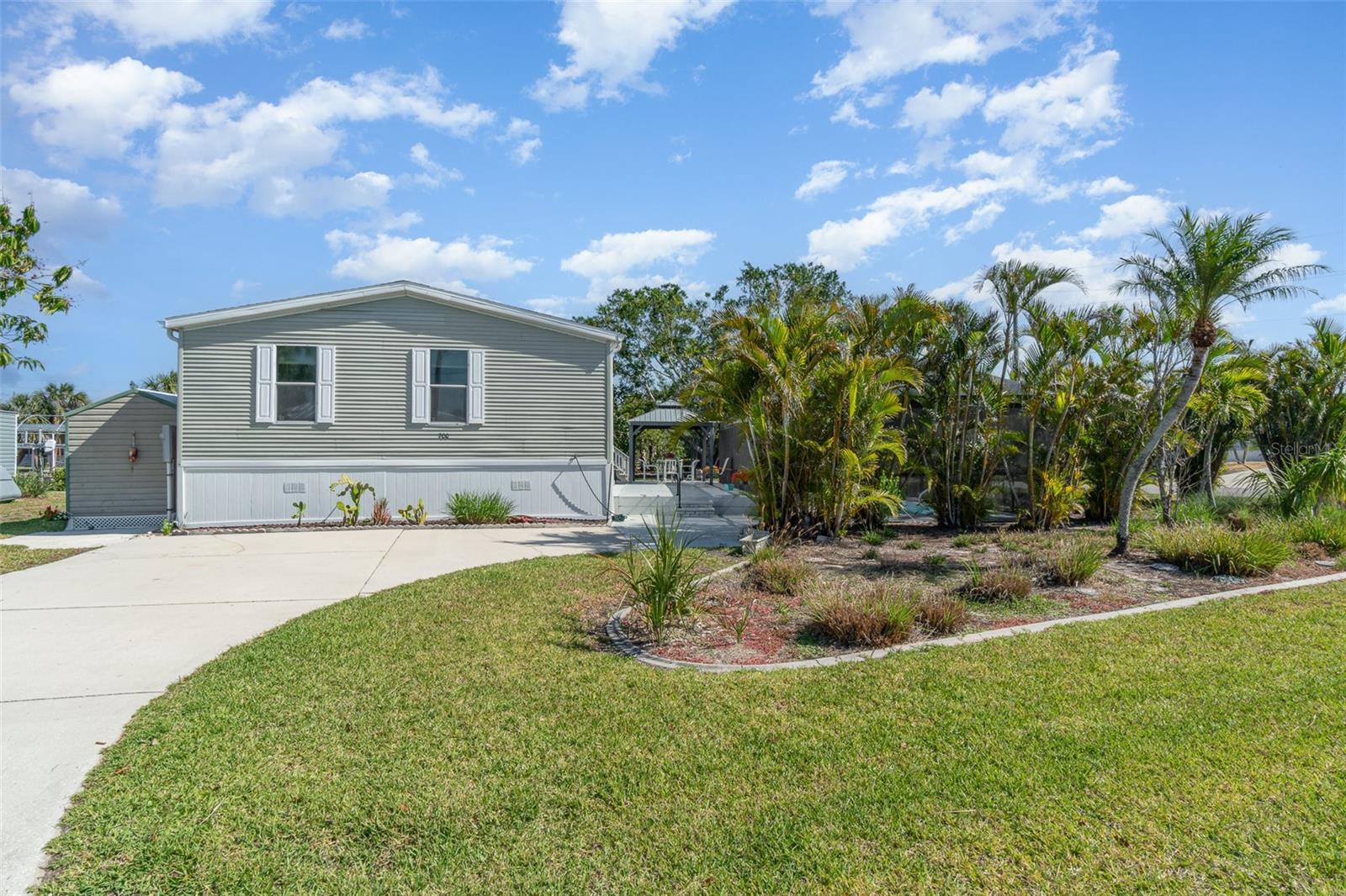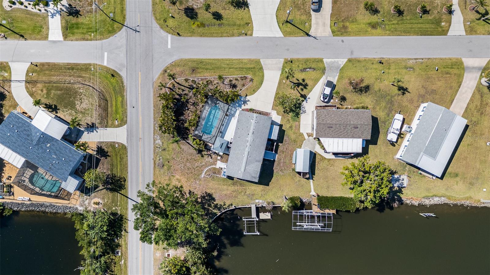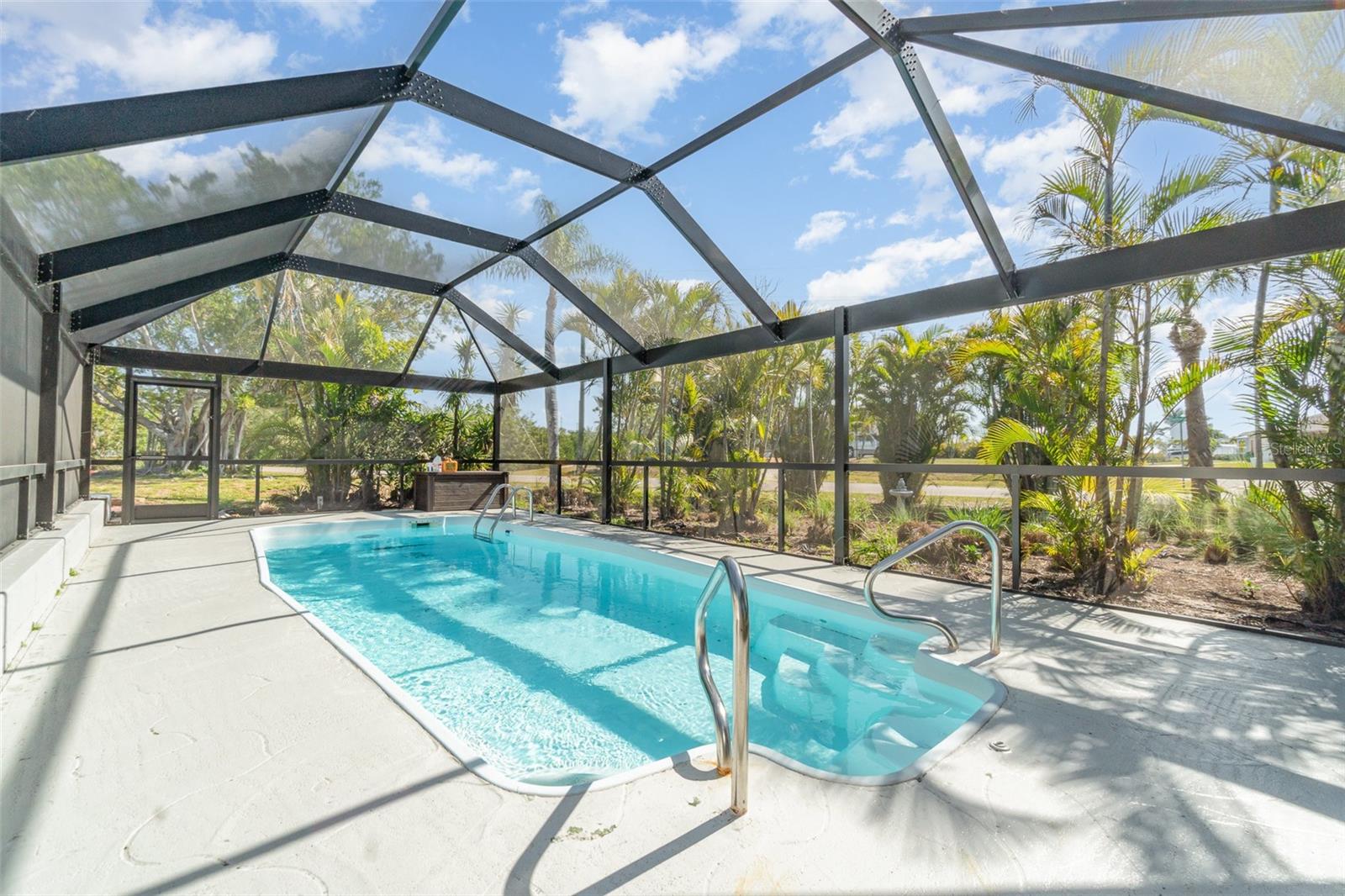 Sail or powerboat access with 100 feet on the water allowing plenty of room for 2 boats! This 2005 built 2 bedroom, 2 bath home along with a den is light and bright with plenty of windows to let the sunshine in. The inground pool area has a newer cage and pool pump. The oversized corner lot gives plenty of space to garden or just sit and relax under mature shade trees. Eat in kitchen has granite tops with a cook top/wall oven set up. Hard flooring everywhere except the 2 bedrooms. No HOA with this property so bring the boat or RV and keep it onsite. You can have it all with this great property for year around living, snowbird use or income producing rental.
