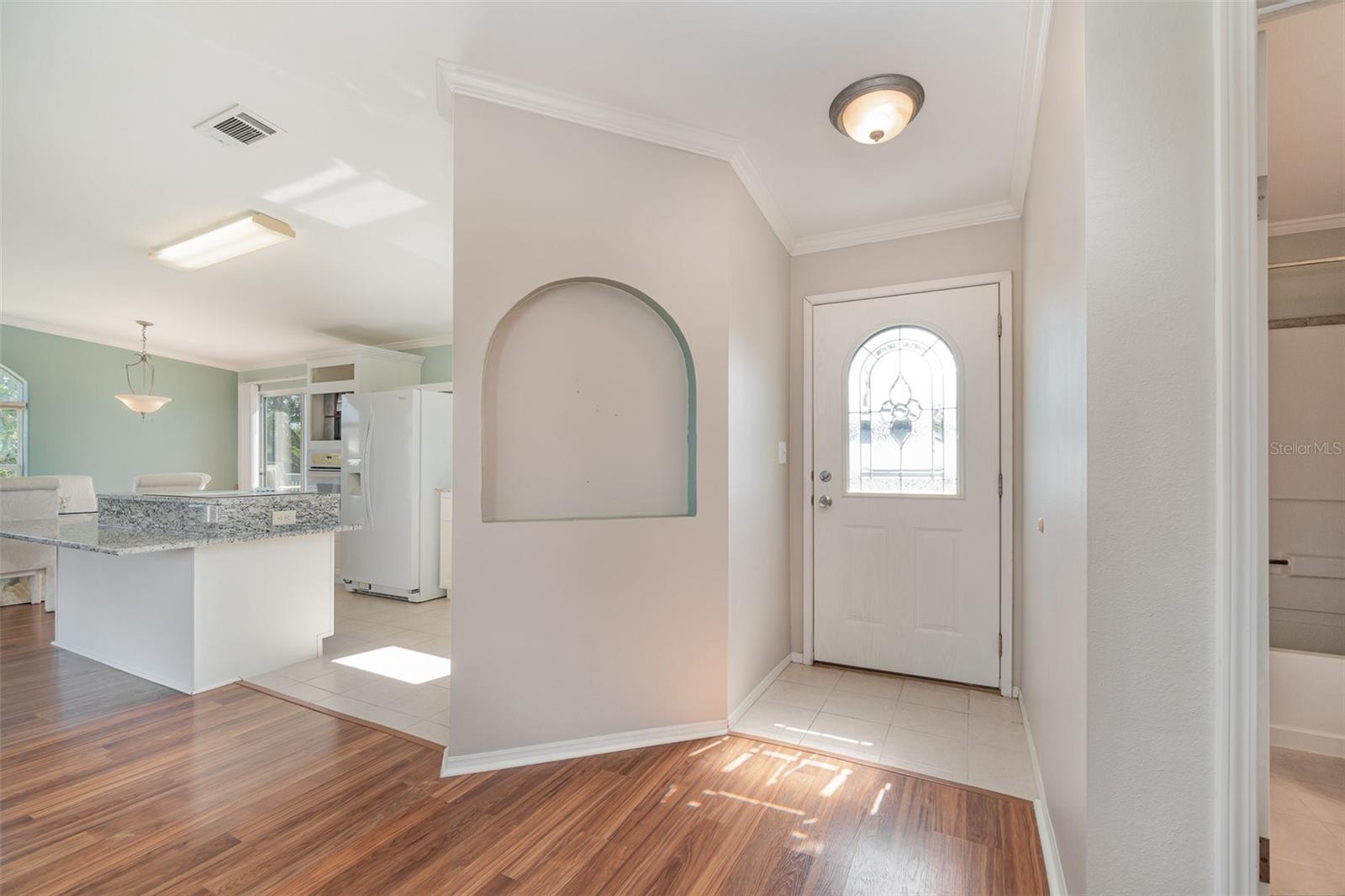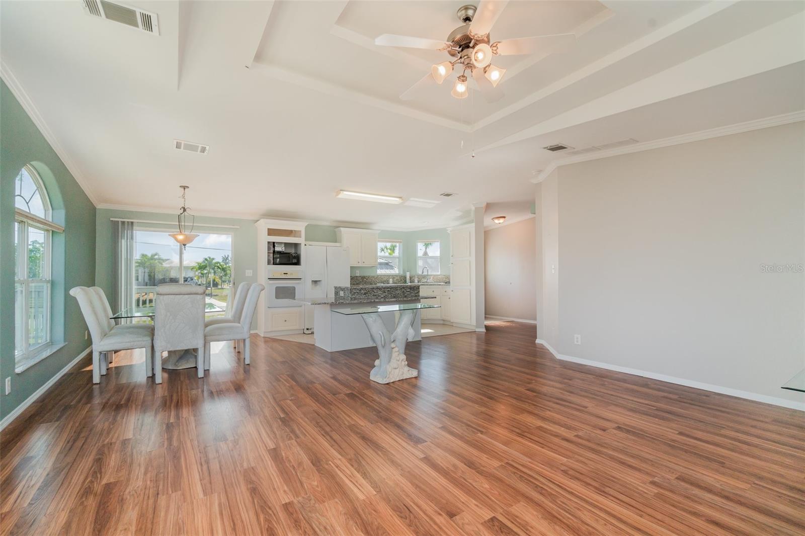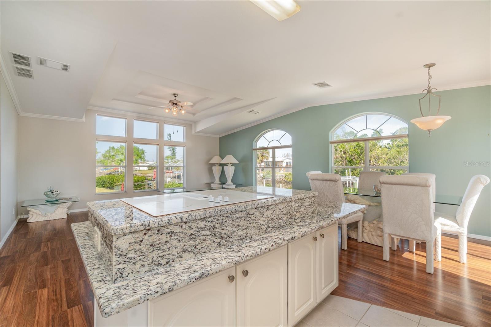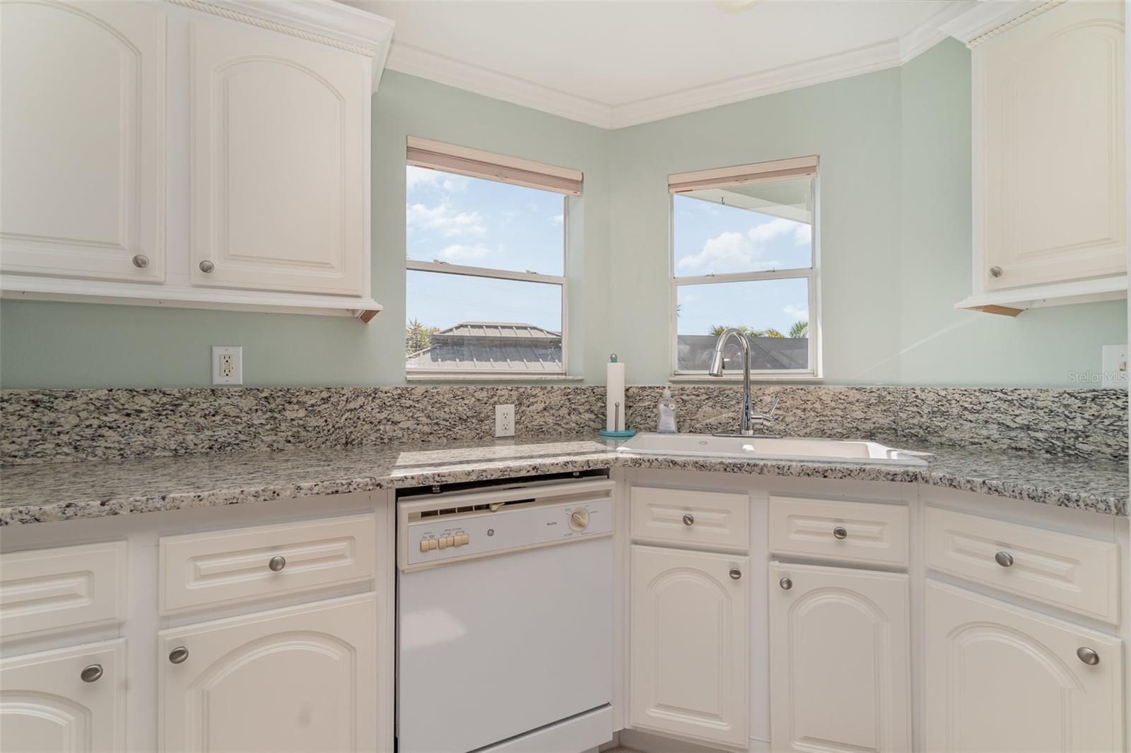 Sail or powerboat access with 100 feet on the water allowing plenty of room for 2 boats! This 2005 built 2 bedroom, 2 bath home along with a den is light and bright with plenty of windows to let the sunshine in. The inground pool area has a newer cage and pool pump. The oversized corner lot gives plenty of space to garden or just sit and relax under mature shade trees. Eat in kitchen has granite tops with a cook top/wall oven set up. Hard flooring everywhere except the 2 bedrooms. No HOA with this property so bring the boat or RV and keep it onsite. You can have it all with this great property for year around living, snowbird use or income producing rental.