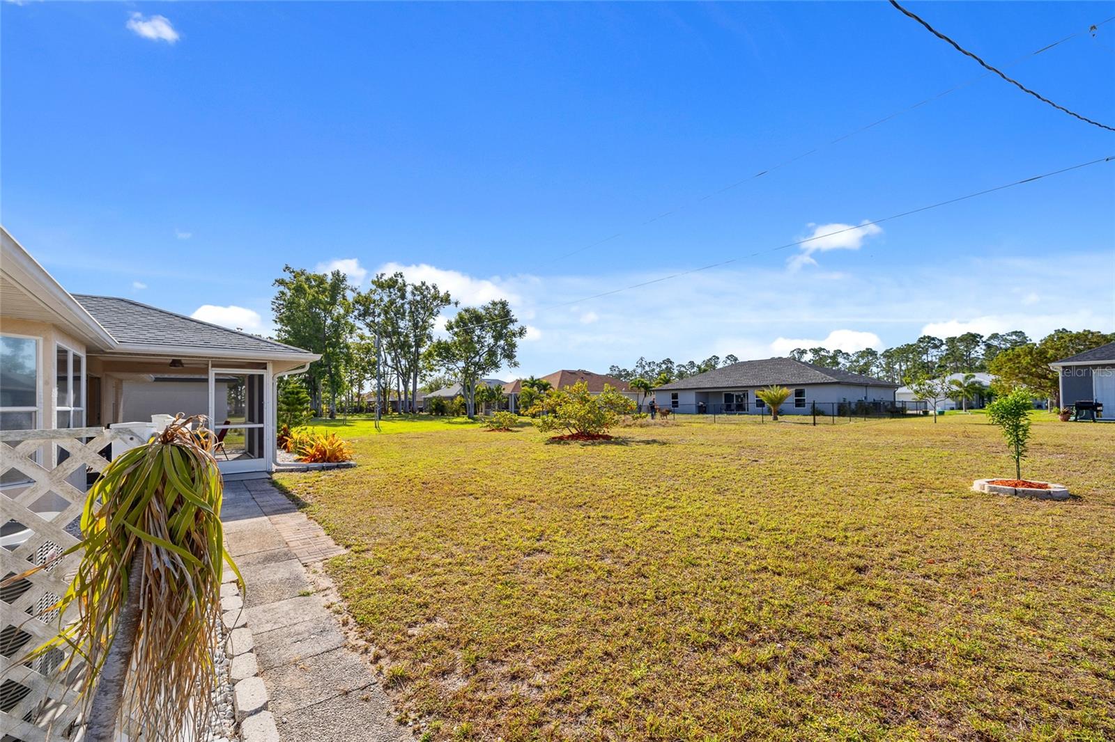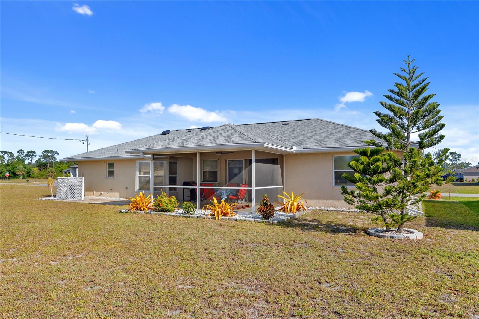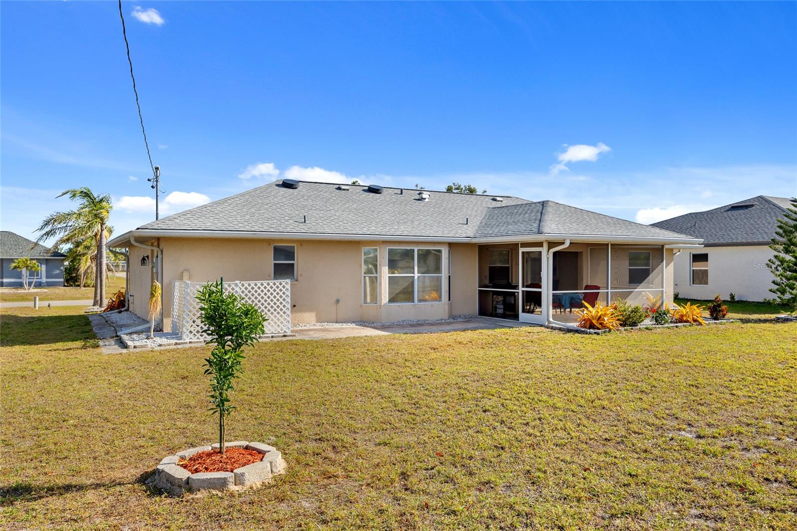 GREAT LOCATION! This 3-bedroom, 2-bath, 2-car garage home is nestled in the tranquil deed-restricted community of Burnt Store Village. Situated on a quiet street, this residence offers both comfort and modern convenience plus a new roof and A/C. Over 1,300 sq ft of well-designed living space featuring cathedral ceiling and tile flooring in the main living area, dining area with slider to lanai, kitchen with ample cabinetry and counters space, stainless appliances, pass-thru window to lanai plus breakfast nook with bay window. Primary suite offers vaulted ceiling and private bath with walk-in shower. Split floor plan provides privacy for guests with two additional bedrooms and separate full bath. Step outside to your screened-in back porch with southern exposure, perfect for enjoying plenty of sunshine and greenbelt views this property offers plus there is room for a pool. Burnt Store Village is known for its peaceful, laid-back lifestyle, complete with walking trails, scenic lakes, and a community park for the little ones. The location of this property is unbeatable, just 20 minutes from downtown Punta Gorda and 30 minutes from downtown Fort Myers. Additionally, it's close to the relaxed waterfront community of Burnt Store Marina, offering access to resort and golfing facilities, waterfront dining, and entertainment. It is conveniently located to the airport, restaurants, shopping and award-winning fishing and boating. Plus, a short drive will take you to the breathtaking Gulf beaches. Don't miss out on this opportunity! Schedule your private showing today!