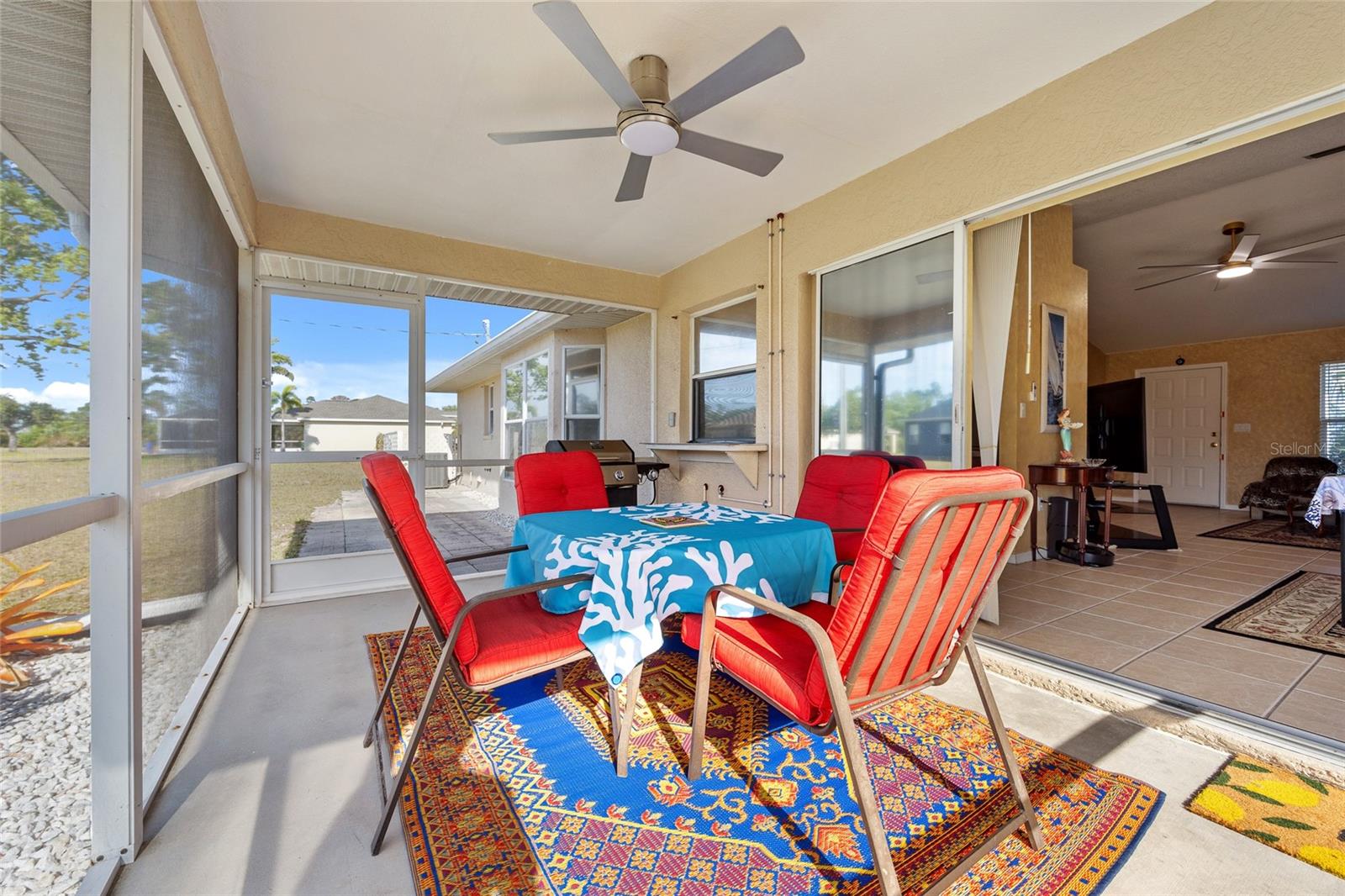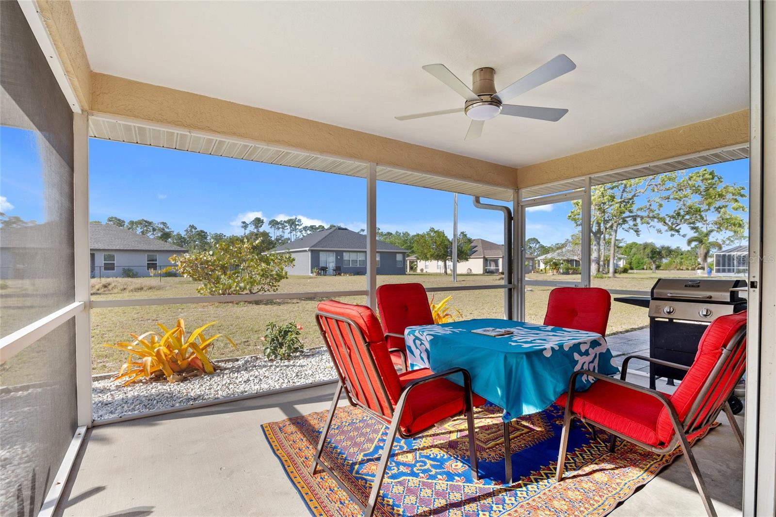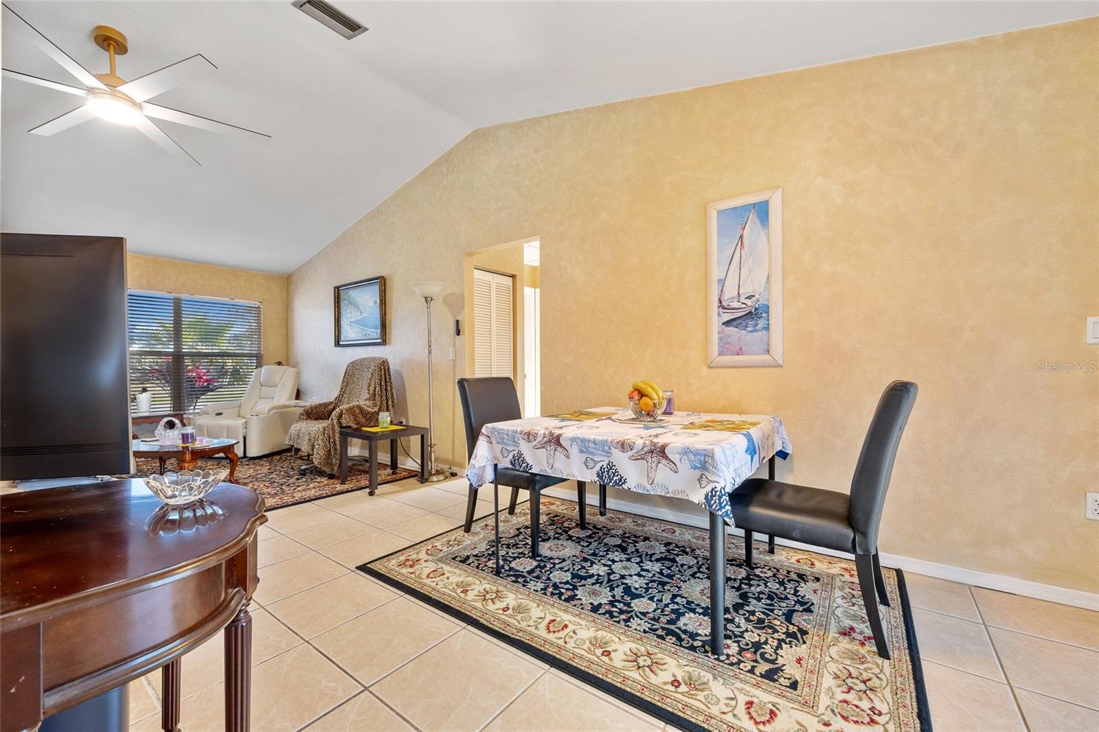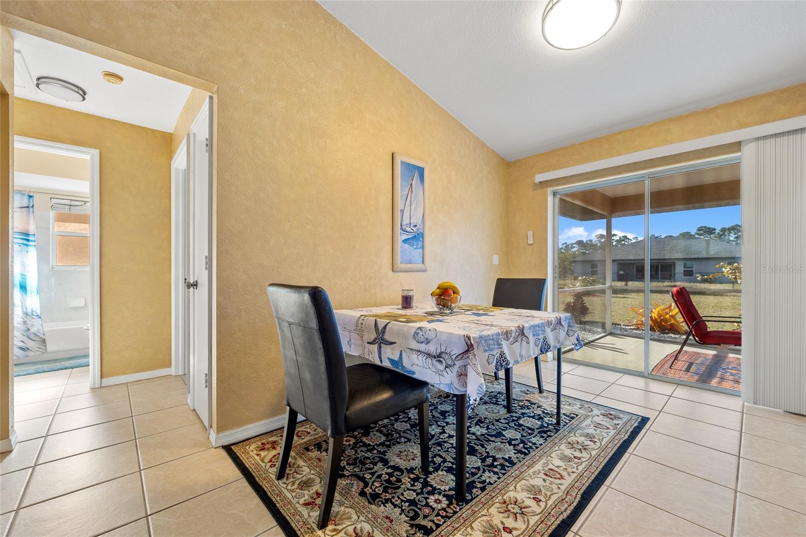 GREAT LOCATION! This 3-bedroom, 2-bath, 2-car garage home is nestled in the tranquil deed-restricted community of Burnt Store Village. Situated on a quiet street, this residence offers both comfort and modern convenience plus a new roof and A/C. Over 1,300 sq ft of well-designed living space featuring cathedral ceiling and tile flooring in the main living area, dining area with slider to lanai, kitchen with ample cabinetry and counters space, stainless appliances, pass-thru window to lanai plus breakfast nook with bay window. Primary suite offers vaulted ceiling and private bath with walk-in shower. Split floor plan provides privacy for guests with two additional bedrooms and separate full bath. Step outside to your screened-in back porch with southern exposure, perfect for enjoying plenty of sunshine and greenbelt views this property offers plus there is room for a pool. Burnt Store Village is known for its peaceful, laid-back lifestyle, complete with walking trails, scenic lakes, and a community park for the little ones. The location of this property is unbeatable, just 20 minutes from downtown Punta Gorda and 30 minutes from downtown Fort Myers. Additionally, it's close to the relaxed waterfront community of Burnt Store Marina, offering access to resort and golfing facilities, waterfront dining, and entertainment. It is conveniently located to the airport, restaurants, shopping and award-winning fishing and boating. Plus, a short drive will take you to the breathtaking Gulf beaches. Don't miss out on this opportunity! Schedule your private showing today!