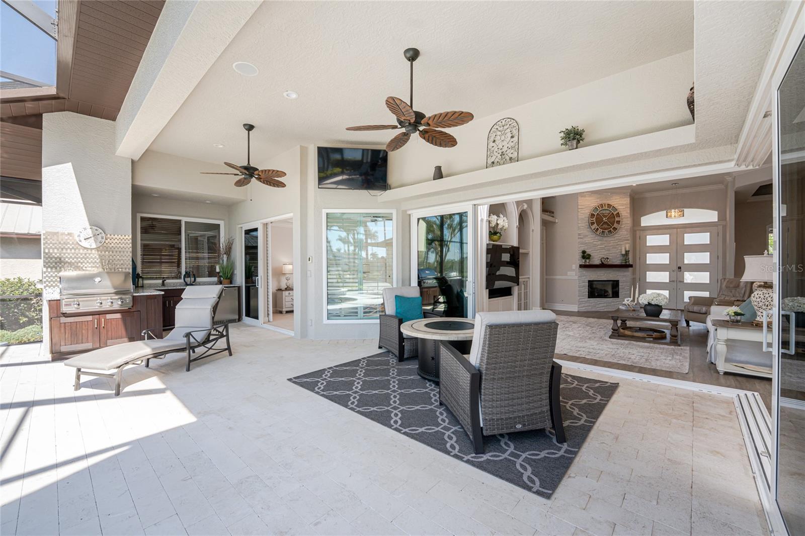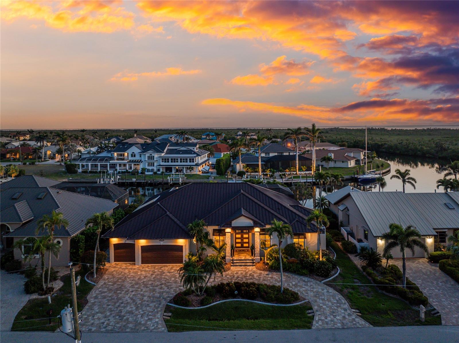 NEW PRICE !! You will LOVE this spectacular 4BR + office home on an oversized 100 x 120 ft canal lot! As you approach this stunning home on it’s circular paver driveway, you will be impressed by the smart, up to date look with stacked stone columns, modern double entry doors and Bahama style shade awnings. Behind the 2 garage doors is a roomy, epoxy floored, mini split cooled, garage with a workshop, room for 4 cars on the floor (Tandem parking on single side) and adequate height for a car lift, ideal for the car guy or gal. There is also a separate 60+ SF storage room on the central AC. Enter the keyless entry, double front doors & the view will take your breath away. The great room with double tray ceiling, with romantic mood lighting,and built in shelving with hidden speakers is SO inviting with its mantle topped gas fireplace on a stacked stone wall, But that’s not all! The lofty 12’ ceilings and 21 ft of “disappearing, zero corner” hurricane sliders lead to the lanai and pool making your indoor and outdoor entertaining seamless. The outdoor living is at it’s best with the 32’ x 15’ covered area, travertine pool deck, fully equipped outdoor kitchen, attractively shaped and lit 30’ x 15’ sparkling pool with a water feature and attached spa with spillover. The whole outdoor 46’ x 25’ area with panoramic, no see um screen is huge. A natural spray system keeps also bugs away. Look further to the 100’ of canal waterfront seawall and 85’ of dock. You have room for a big boat, PLUS an 18,000 lb lift for a sizable boat PLUS a jet ski lift! You can have room for it ALL! It’s only 7-8 (no wake) minutes to get out to the Ponce de Leon inlet and to the open sparkling water of Charlotte Harbor, then onward to the Intracoastal waterway and Boca Grande Pass (5 miles), then out to the Gulf for some spectacular deep sea fishing. After your day out on the Gulf and back in your new home, take a nap in your 18’ x 16’ owner’s suite with it’s plantation shuttered, hurricane slider access to the pool. Peek around the corner of the walk in closet because it goes on forever, but it’s not even the main closet! There is a room near the entrance of the BR that the present owner has made into a humongous “closet” that would also be suitable as an office or smaller BR. There’s even HW floors and a smaller closet within this ”closet”! On the other side of the house is a well thought out wing with a guest bath with a Roman shower and 2 more bedrooms, one having slider access to the pool, the other with access to a private outdoor, under roof courtyard in addition to a large office, totally outfitted with built ins and en suite bathroom. The office also has access to the courtyard with it’s outside entrance, so guests coming to the office do not need to come through the house."Punta Gorgeous" is loaded with charm, lots of great restaurants, a historic district, and tons of waterfront parks. With walking and biking trails, a great dog park, the popular Fishermans Village (shops with even more restaurants),Isles Yacht Club, and St. Andrew’s South Golf Club. There's a Farmer’s Market on Saturdays and a smaller one at the History Park and Artisan Village (next to the new library)on Sundays. A Wildlife Center is being built there too, play Pickleball at the“Pickleplex”. If you are bored here, it's by choice. If you have found our delightful town of “Punta Gorgeous” then you are very, very lucky indeed! Now you just need this stunning home to make it your own paradise!