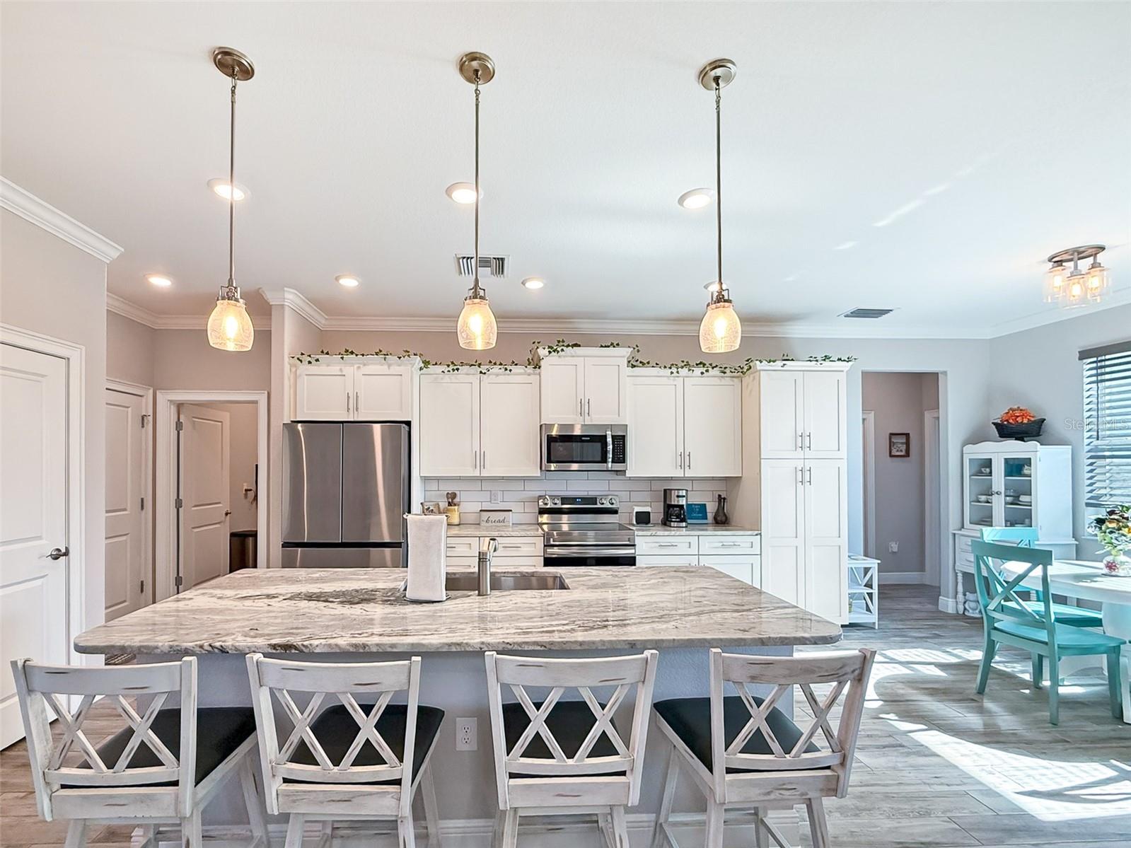 Experience the pinnacle of Florida living with this exceptional Pelletier Brothers 3 bedroom, 2-bathroom home, perfectly situated in Burnt Store Village. Designed for those who appreciate space, style, and seamless indoor-outdoor living, this residence offers the perfect blend of elegance and functionality. Step inside to discover an expansive open floor plan, where natural light pours into the beautifully designed living spaces. The gourmet kitchen is a chef’s dream, featuring luxurious granite countertops, Wellborn wood cabinetry, a spacious center island, and a breakfast bar, ideal for both casual dining and entertaining. The owner’s suite is a true retreat, boasting dual walk-in closets and a spa-like en-suite bathroom with dual vanities, a generous walk-in shower, and ample storage. A thoughtfully designed split-bedroom layout ensures maximum privacy, with spacious guest bedrooms providing comfort and versatility. Outside, the possibilities are endless. Enjoy your morning coffee on the inviting screened Lania envision your own outdoor oasis on the fully fenced yard. Burnt Store Village consists of 520 acres and welcomes the retiree as well as young families. The 13 miles of quiet, county-maintained streets are great for bike riding, and the Burnt Store Village Community Park has a walking path around a picturesque lake, picnic tables and a playground.