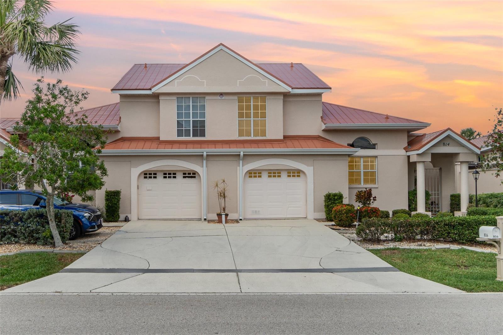 WELCOME TO 814 VIA TRIPOLI — a beautifully remodeled townhome in the heart of Punta Gorda Isles. This 2-bedroom, 2.5-bath home, with an upstairs bonus den and immaculate garage, is perfect as a full-time residence or seasonal retreat. A gated garden entry leads to the stained-glass front door and into a massive Great Room with soaring ceilings, a wall of windows, and an updated kitchen with new appliances. Off the kitchen, you’ll find a laundry room with new washer/dryer, powder room, and a spacious dining area. The first-floor primary suite features an ensuite bath and dual walk-in closets, with direct access to the peaceful lanai. Out back, enjoy a private, Italian-tiled plunge pool, plenty of space for dining and entertaining, plus a shared dock and private boat slip—offering easy access to Charlotte Harbor, the Gulf, fishing, sailing, kayaking, and more. Upstairs, you’ll find a second bedroom, full bath, and an airy loft that’s ideal for an office, studio, or guest space. Fresh paint and new carpeting complete this move-in ready home. Enjoy breathtaking views and sunsets in one of Florida’s most desirable waterfront communities--- come see your new home today!
