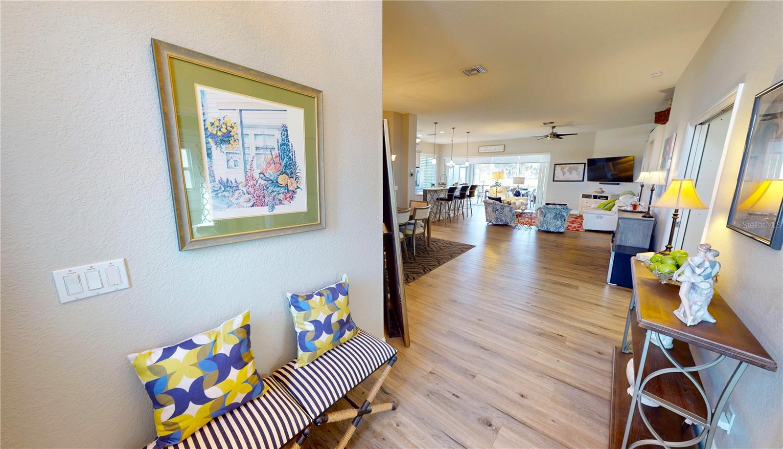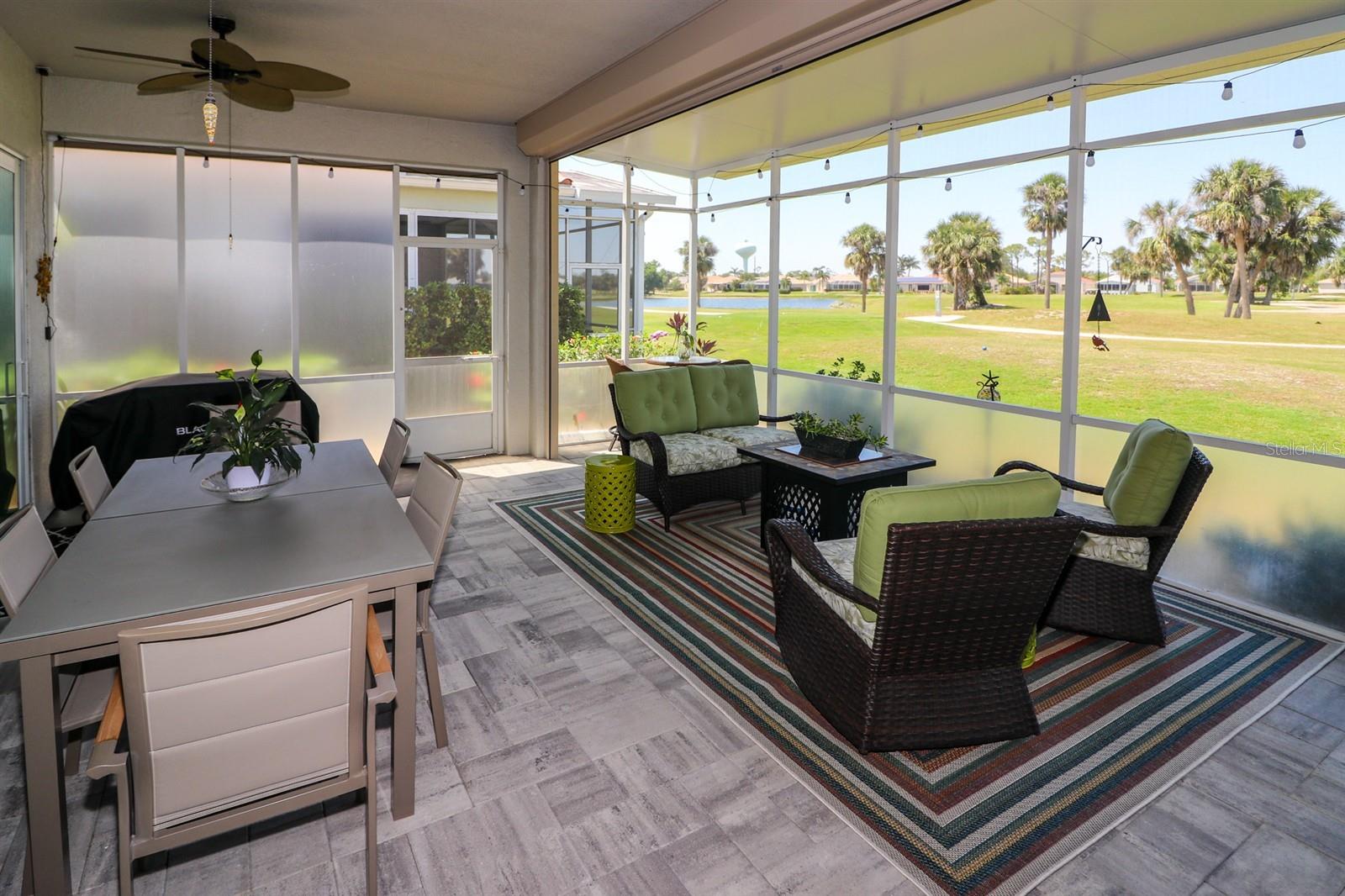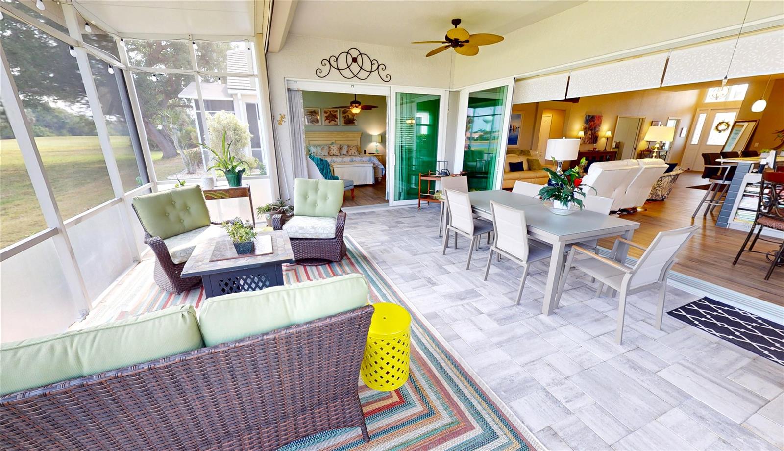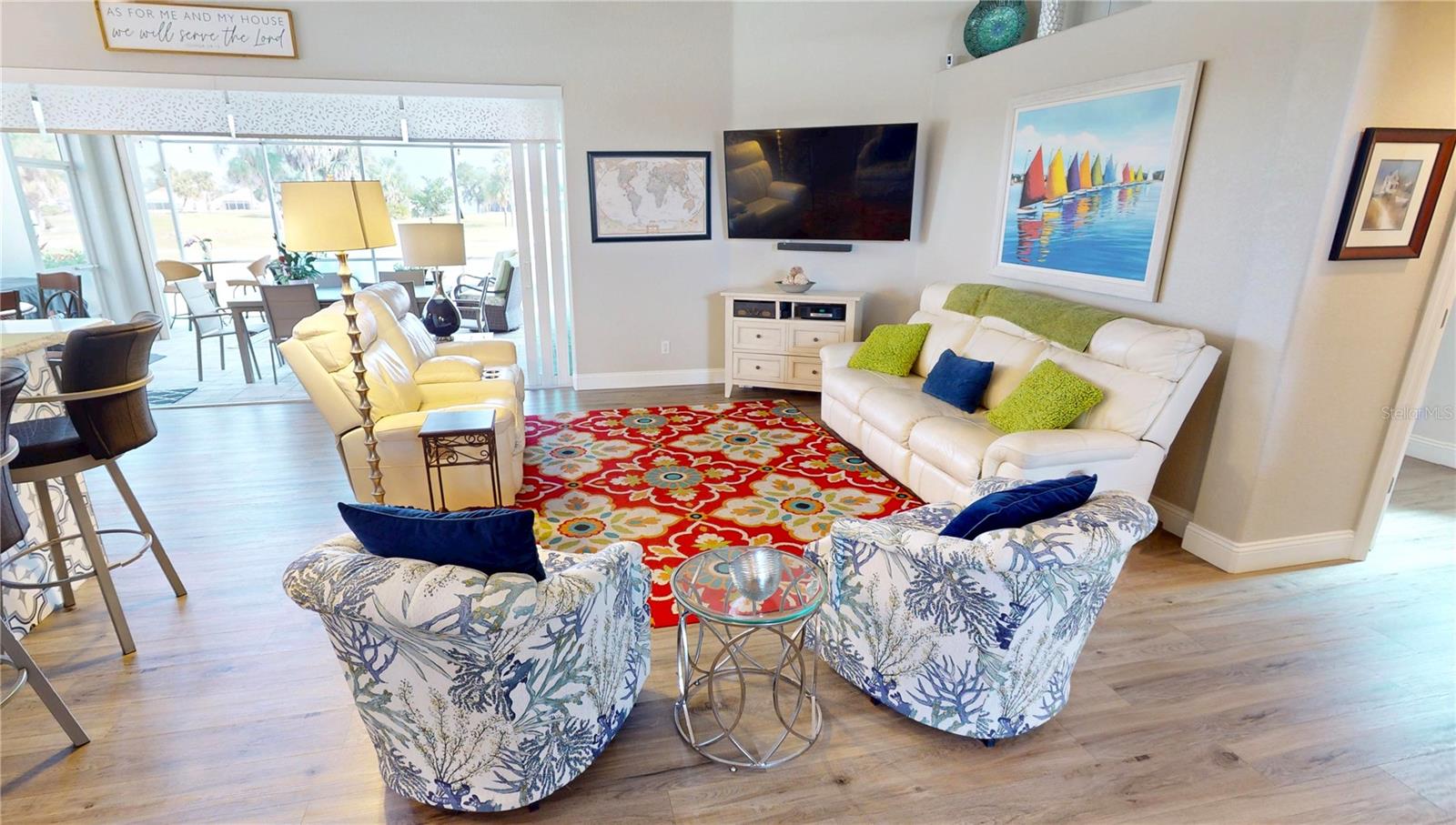 Have you been looking for a fully updated home? Look no further! This home has it all. This stunning move in ready home is located in the gated community of Seminole Lakes. Beautifully updated in neutral tones, this 3 bedroom 2 bath home has a 2 car garage and is the perfect blend of modern elegance and comfort. Every detail has been thoughtfully renovated within the last five years, so all you have to do is move in. Inside, you'll find a new kitchen with quartz countertops, new appliances, new cabinets, pantry and updated plumbing throughout the home. Unique to this home is the additional kick plate drawers,under cabinet electrical and lighting. The unique ceiling light is also a hidden fan along with recess lighting. Both bathrooms have also been remodeled. The primary bath has dual sinks with granite countertops, plenty of storage, a walk in shower with a rain shower head & hand held, bench and waterfall tile. The tower cabinet holds an additional socket within for charging. Comfort height commode and bidet. The guest bath boasts of quartz countertop vanity and a shower over the tub. The entire home has luxury vinyl floors, the baths with tile flooring. There is a spacious laundry room with quartz countertops, additional cabinets, and a pantry along with under the counter washer & dryer. Impact windows and doors provide peace of mind, while the epoxy finished garage with a lifestyle screen adds functionality. The driveway has neutral pavers and the landscaping curbing was also replaced. The impact garage and new garage door opener can be remotely controlled from your phone. Pocketing sliders from the great room and kitchen allow you to step outside to you paver lanai and take in the picturesque views -this home sits on the fifth tee box of a par 3 golf course. Note that the lanai has additional hurricane protection with electric roll down shutters.There is also access to the Lanai with pocketing doors from the primary bedroom. To complete the picture, you have a new tile roof, hot water heater, and Central Air. You are just minutes from major highways and the quaint city of Punta Gorda with shopping and restaurants. Seminole Lakes has a pay as you play executive golf course, tennis courts and pickleball are available for a nominal fee. The community pool and tiki are a gathering place for morning aerobics and fun. Don’t miss this opportunity, schedule your showing today!