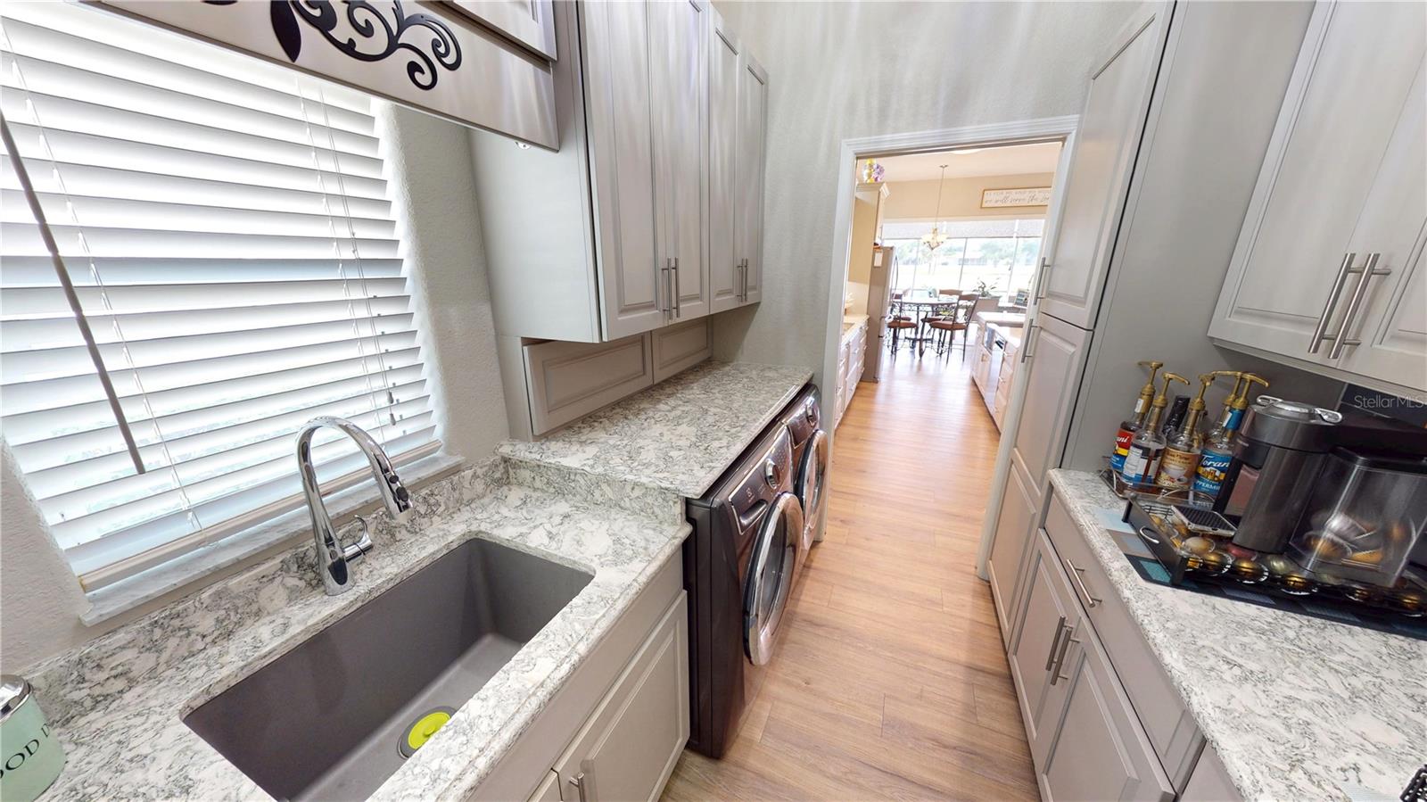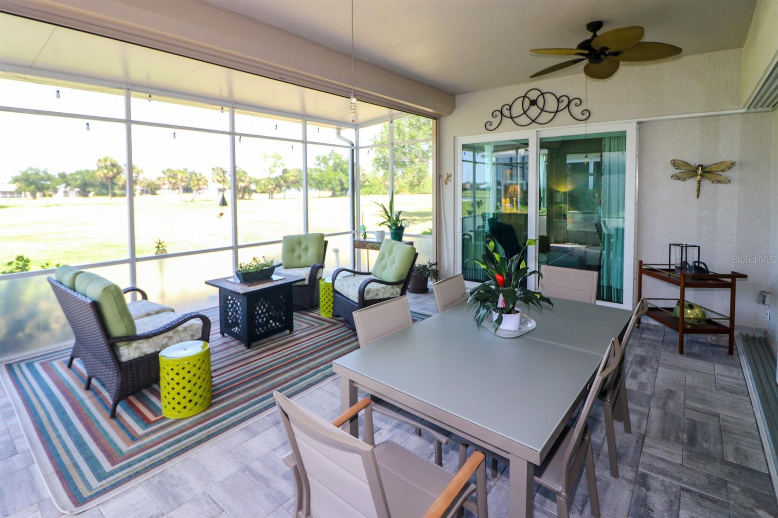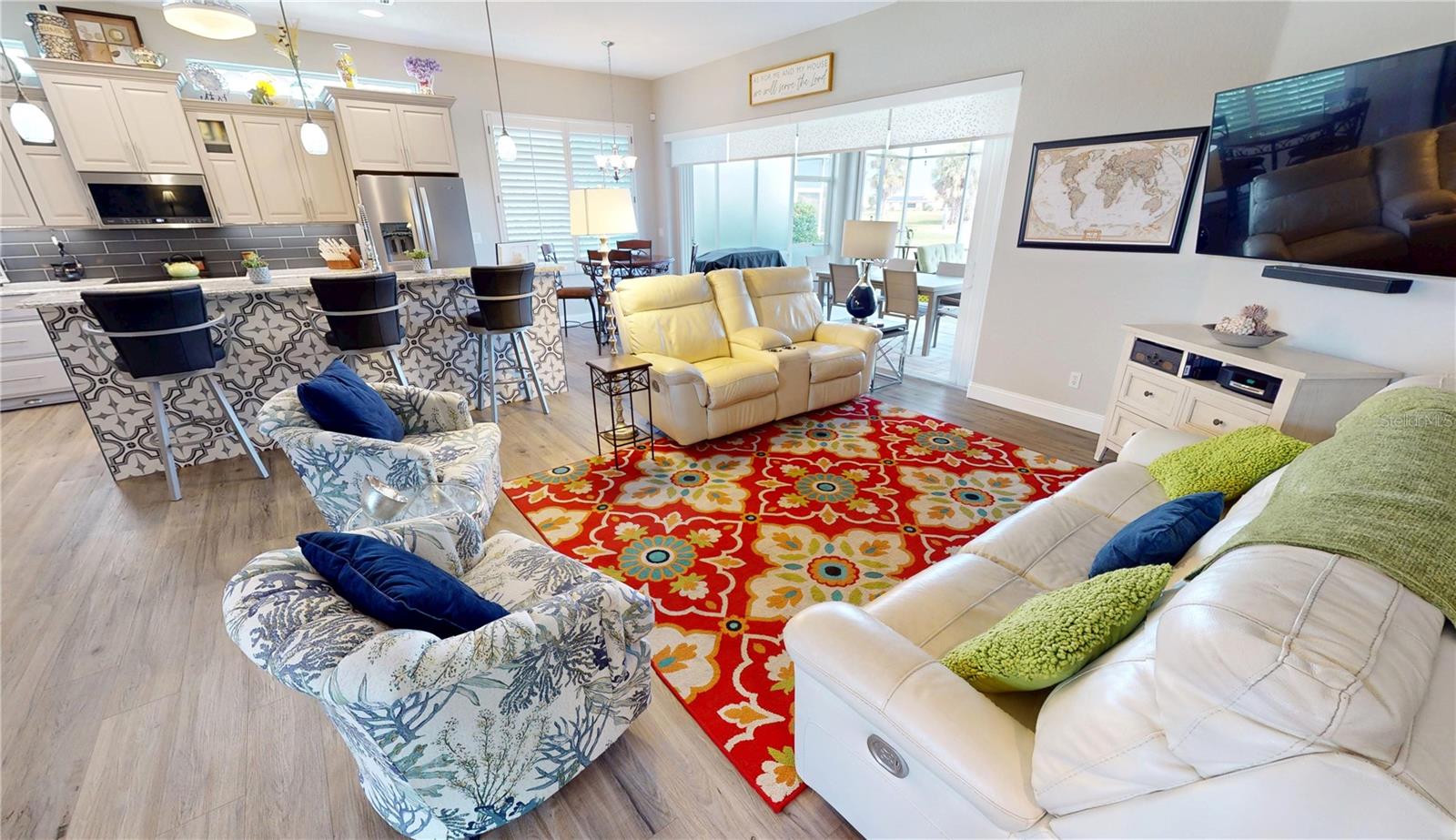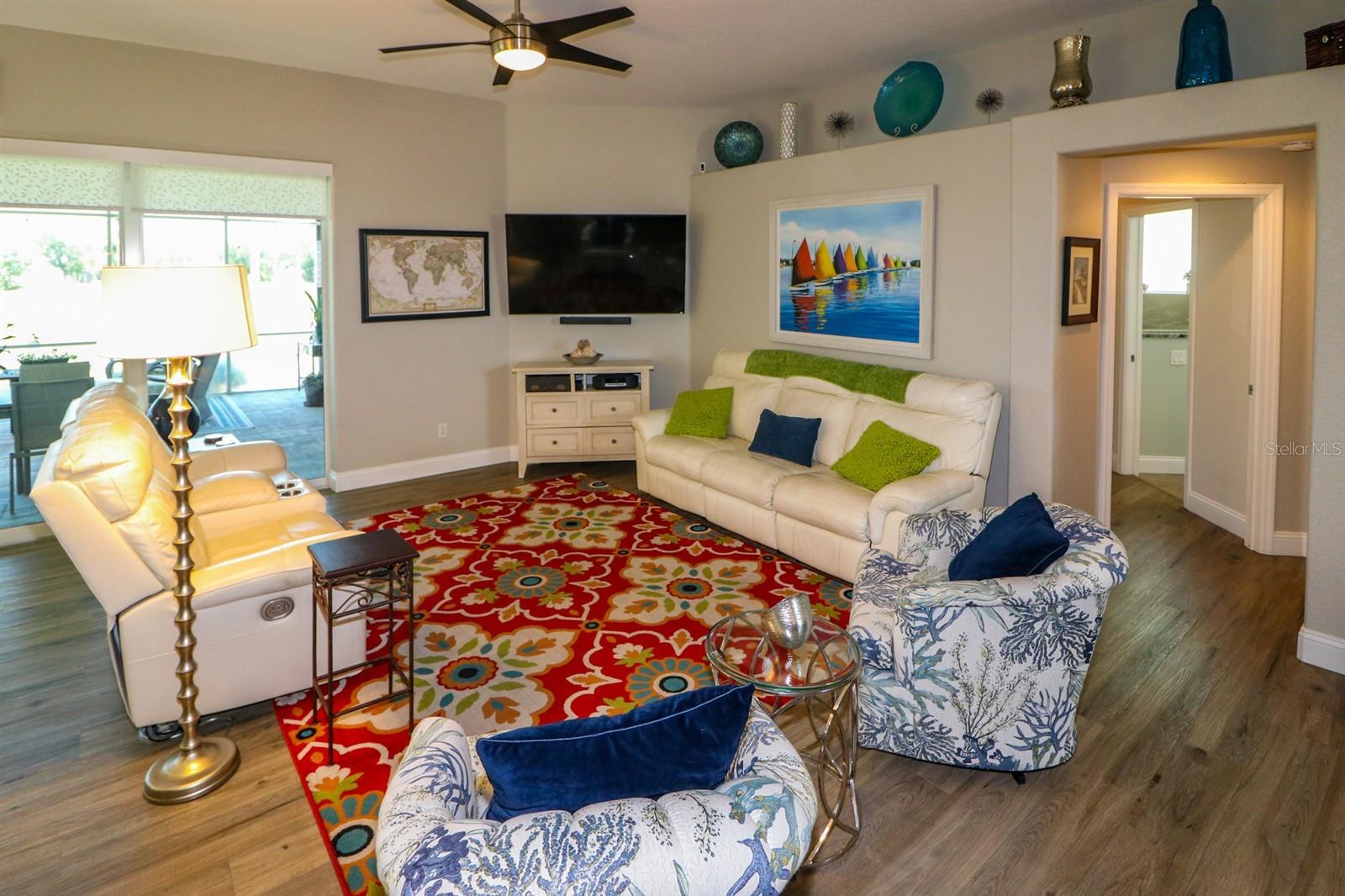 Have you been looking for a fully updated home? Look no further! This home has it all. This stunning move in ready home is located in the gated community of Seminole Lakes. Beautifully updated in neutral tones, this 3 bedroom 2 bath home has a 2 car garage and is the perfect blend of modern elegance and comfort. Every detail has been thoughtfully renovated within the last five years, so all you have to do is move in. Inside, you'll find a new kitchen with quartz countertops, new appliances, new cabinets, pantry and updated plumbing throughout the home. Unique to this home is the additional kick plate drawers,under cabinet electrical and lighting. The unique ceiling light is also a hidden fan along with recess lighting. Both bathrooms have also been remodeled. The primary bath has dual sinks with granite countertops, plenty of storage, a walk in shower with a rain shower head & hand held, bench and waterfall tile. The tower cabinet holds an additional socket within for charging. Comfort height commode and bidet. The guest bath boasts of quartz countertop vanity and a shower over the tub. The entire home has luxury vinyl floors, the baths with tile flooring. There is a spacious laundry room with quartz countertops, additional cabinets, and a pantry along with under the counter washer & dryer. Impact windows and doors provide peace of mind, while the epoxy finished garage with a lifestyle screen adds functionality. The driveway has neutral pavers and the landscaping curbing was also replaced. The impact garage and new garage door opener can be remotely controlled from your phone. Pocketing sliders from the great room and kitchen allow you to step outside to you paver lanai and take in the picturesque views -this home sits on the fifth tee box of a par 3 golf course. Note that the lanai has additional hurricane protection with electric roll down shutters.There is also access to the Lanai with pocketing doors from the primary bedroom. To complete the picture, you have a new tile roof, hot water heater, and Central Air. You are just minutes from major highways and the quaint city of Punta Gorda with shopping and restaurants. Seminole Lakes has a pay as you play executive golf course, tennis courts and pickleball are available for a nominal fee. The community pool and tiki are a gathering place for morning aerobics and fun. Don’t miss this opportunity, schedule your showing today!