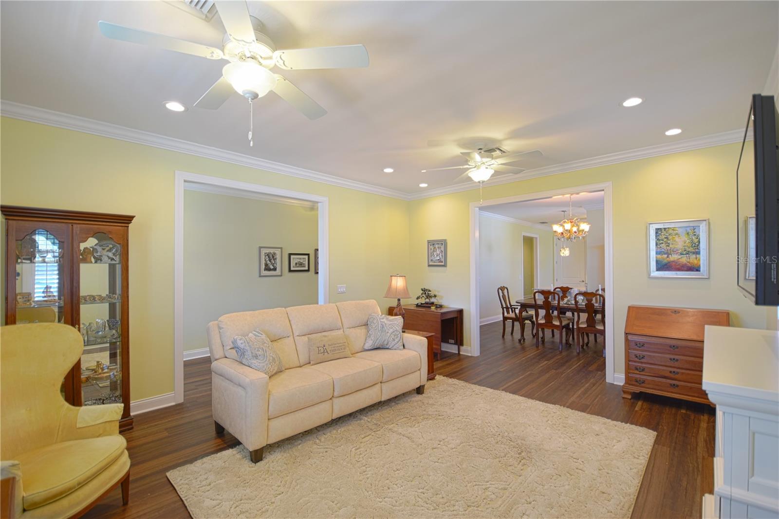 PRICE IMPROVEMENT~WOW!! This home is truly one of a kind! Solid, high-quality construction and NOT IN A FLOOD ZONE. Custom built by Thornberry Custom Builders in 2018, this well-maintained 3 Bedroom, 3 Bathroom home with an oversized 2-car garage and screened-in lanai is loaded with natural light and thoughtful features. As soon as you enter you will be taken by the charm and welcoming nature of this home. It combines the best of an open floor-plan feel with a gallery-inspired layout connected by a spacious main hallway. Throughout the home you'll notice upgraded finishes, including solid wood cabinets and luxury vinyl plank flooring in the main areas. The expansive, tiled kitchen features quartz countertops, a walk-in pantry, stainless steel appliances, a vented range hood, and ample storage space. In addition, the home is handicap accessible, including all doors and hallways, with walk-in showers and closets in 2 of the 3 bathrooms and bedrooms. On top of the "pretty things,” there are added construction features for this home to be resilient and withstand our Southwest Florida weather. The construction includes impact/hurricane windows, impact doors, added adhesive when roof sheathing was installed, added insulation in bedrooms, and insulation in the garage. The garage is “hobby ready” with a recessed workspace and sink, and includes a pre-wire for a mini split AC unit to be added in the future. Experience Deep Creek living at its finest. Enjoy the sunrise on the east-facing, covered front porch, then take in the sunset and backyard greenbelt on the west-facing lanai—already pre-plumbed for an outdoor kitchen or bar. Host guests using the extra long driveway and additional parking pad, or easily explore town. The property is walking distance to cafes and local businesses, and located in a highly convenient area with easy access to I-75, shopping, schools, parks and more. This home is truly unique and is an absolute must-see!