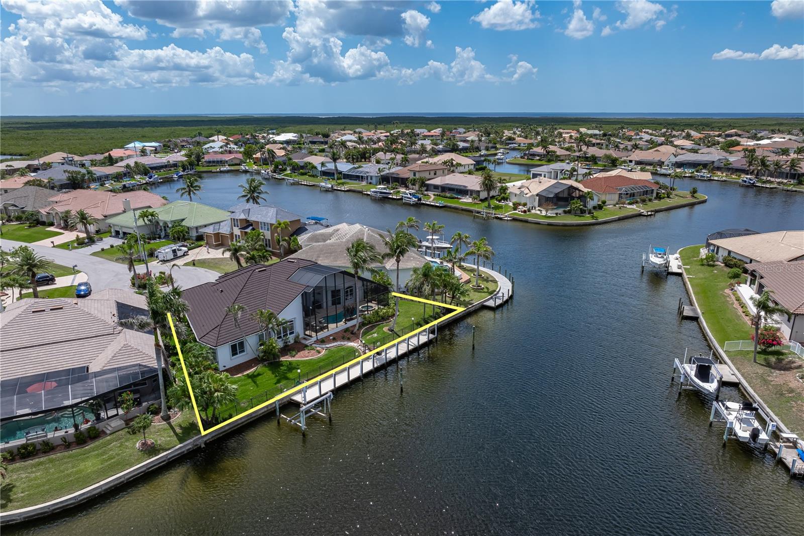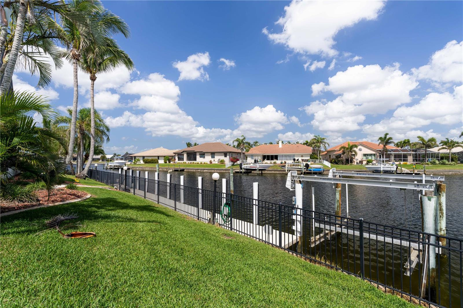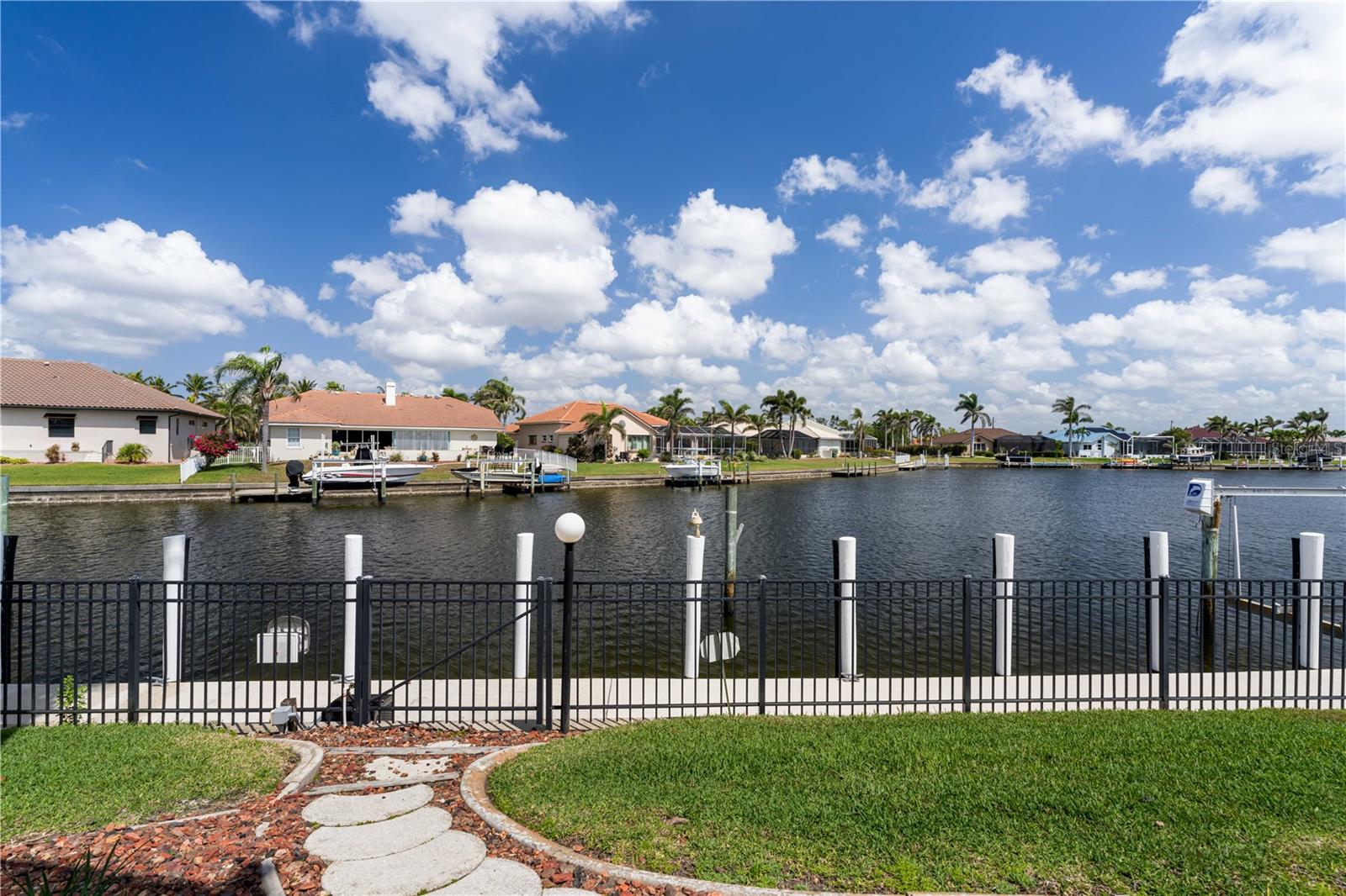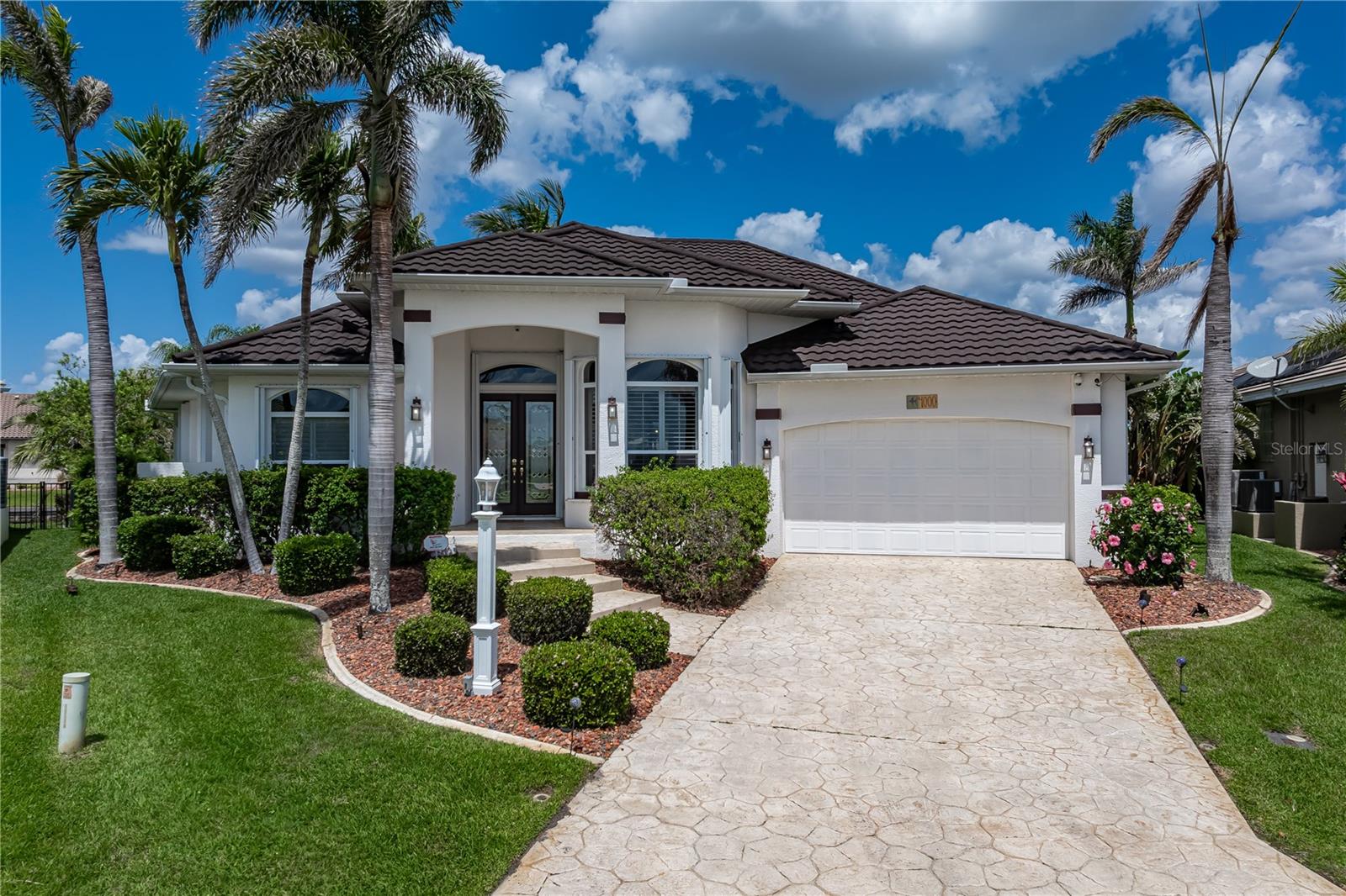 WATERFRONT HOME IN BURNT STORE ISLES ON KEY LOT W/**NEW METAL ROOF** Are you a boater who wants it all? Consider this spacious, 3 bed/3 bath + den waterfront home w/nearly 2,800 sqft of living space, 140 ft of seawall along a wide turning basin, extended concrete dock w/lift & sailboat access to Charlotte Harbor. This custom home by SandStar Construction is located on a key lot w/views of a wide canal basin & intersecting canals. Inside, the open floor plan offers a formal living room, formal dining room & separate family room all situated around the centrally located kitchen. Architectural details include soaring cathedral ceilings, crown molding, & walls of sliding glass doors in living room, family room & master bedroom that allow tons of natural light into the home. The den/home office has glass doors that open to the family room allowing you to stay part of the action while working at your desk. As an added bonus, adjacent to the den & family room is a large craft/hobby area w/an additional built-in desk/workspace. Kitchen has solid surface counters, stainless steel appliances including a built-in oven, w/separate cook top plus plenty cabinet & counters space. The master suite is oversized w/reading area, walk-out access to lanai & a spa-like master bath w/two large walk-in closets, dual sinks, garden tub & tiled walk-in shower w/multiple shower heads. The split bedroom design boasts large guest rooms - each w/an en-suite bath. Disappearing sliding glass doors in the living room & family room open to the lanai extending the living space outside so you can enjoy true, Florida-style, indoor/outdoor living. The large lanai has multiple areas for entertaining, is plumbed for a summer kitchen & features an in-ground, heated pool w/attached spa. Planter on the lanai & tropical landscaping surrounding the home create the illusion of a private oasis on the lanai. The backyard is fenced in for privacy & leads to the extended concrete dock w/boat lift. Water & electric hook-ups are available dockside. Keep your boat docked in your backyard, ready to set off on your latest adventure at a moment's notice. OTHER AMENITIES: attached, two-car garage, hurricane protection, landscape lighting & security system. UPDATES/UPGRADES: NEW water heater (2022), NEW screens cathedral pool cage (2024), NEW roof (2024), pool resurfaced (2023), & NEW pool pump (2021). Home is located in Burnt Store Isles, a deed-restricted waterfront & golfing community w/an optional HOA. The HOA maintains an active social calendar encouraging you to get to know your neighbors. There is also an active boat club. Twin Isles Country Club is located in the center of the community. Practice your short & long game, brush up on your tennis strokes or simply enjoy the social setting. Enjoy the best of everything: boating from your backyard & a round of golf just around the corner at Twin Isles Country Club. Burnt Store Marketplace anchors BSI offering a Publix, Home Depot & several other shops & restaurants. Get all our shopping done without leaving the neighborhood! Take advantage of the active lifestyle available here in Punta Gorda by enjoying the numerous walking & biking trails as well as the many waterfront parks offering everything from playgrounds to pickle ball courts. Start living your Florida dream here. Make an appointment today!