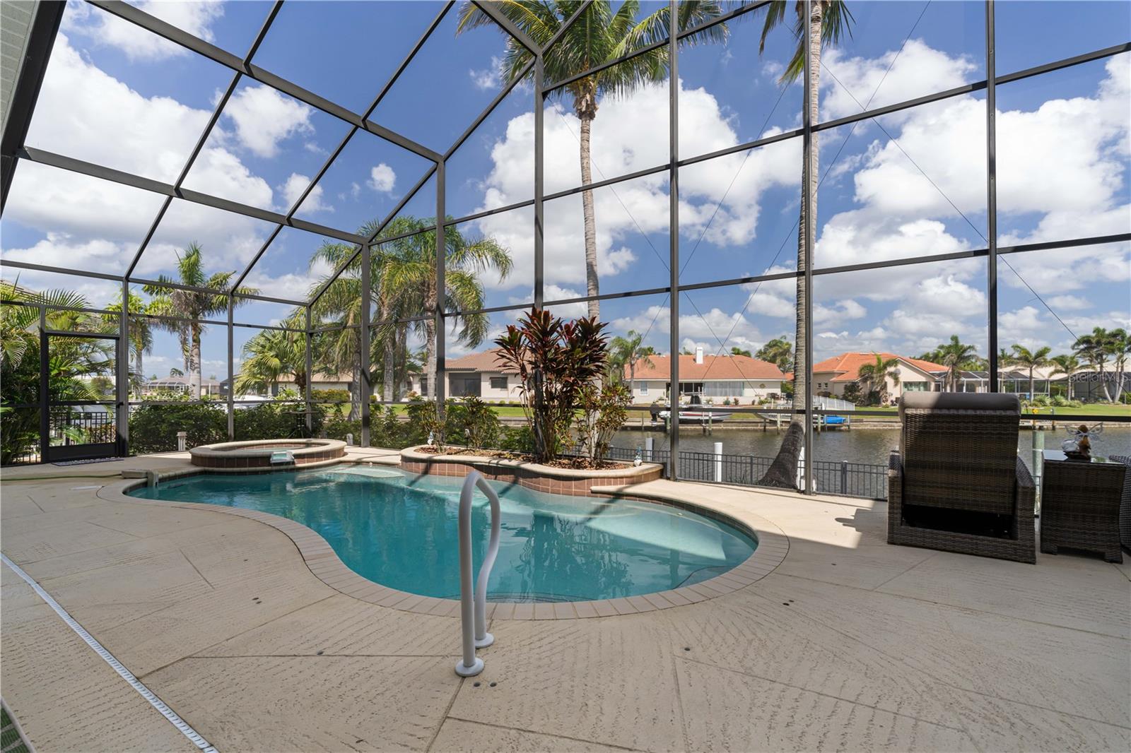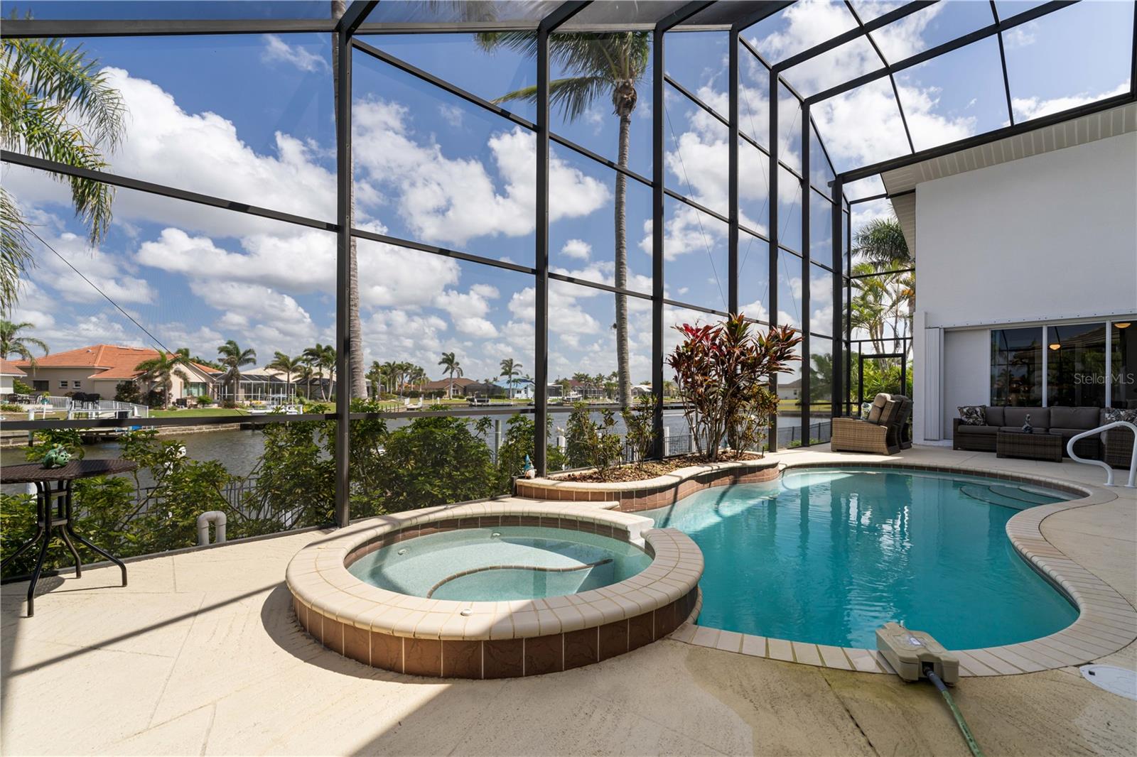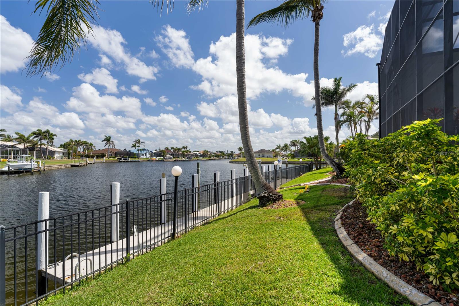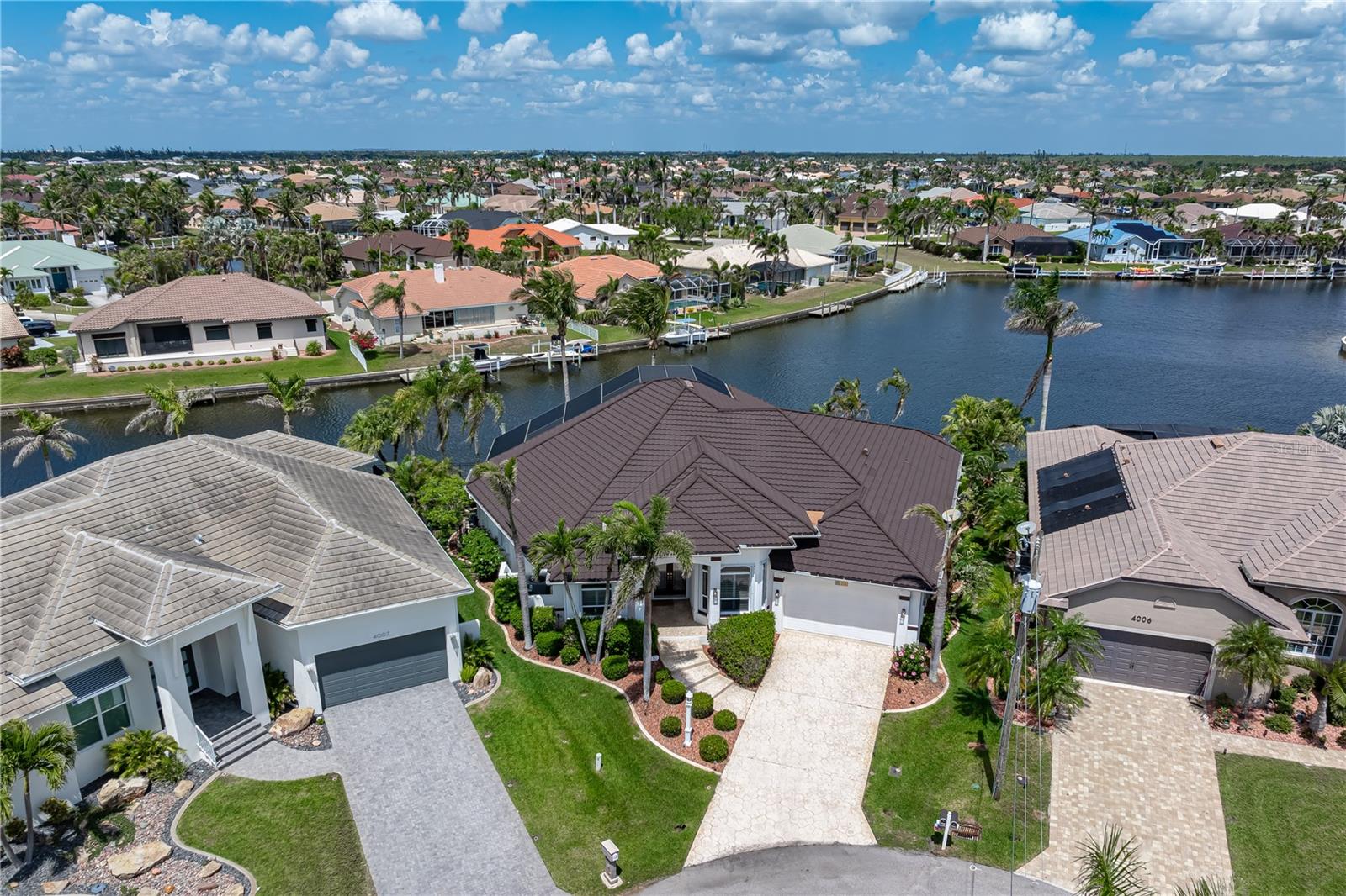 WATERFRONT HOME IN BURNT STORE ISLES ON KEY LOT W/**NEW METAL ROOF** Are you a boater who wants it all? Consider this spacious, 3 bed/3 bath + den waterfront home w/nearly 2,800 sqft of living space, 140 ft of seawall along a wide turning basin, extended concrete dock w/lift & sailboat access to Charlotte Harbor. This custom home by SandStar Construction is located on a key lot w/views of a wide canal basin & intersecting canals. Inside, the open floor plan offers a formal living room, formal dining room & separate family room all situated around the centrally located kitchen. Architectural details include soaring cathedral ceilings, crown molding, & walls of sliding glass doors in living room, family room & master bedroom that allow tons of natural light into the home. The den/home office has glass doors that open to the family room allowing you to stay part of the action while working at your desk. As an added bonus, adjacent to the den & family room is a large craft/hobby area w/an additional built-in desk/workspace. Kitchen has solid surface counters, stainless steel appliances including a built-in oven, w/separate cook top plus plenty cabinet & counters space. The master suite is oversized w/reading area, walk-out access to lanai & a spa-like master bath w/two large walk-in closets, dual sinks, garden tub & tiled walk-in shower w/multiple shower heads. The split bedroom design boasts large guest rooms - each w/an en-suite bath. Disappearing sliding glass doors in the living room & family room open to the lanai extending the living space outside so you can enjoy true, Florida-style, indoor/outdoor living. The large lanai has multiple areas for entertaining, is plumbed for a summer kitchen & features an in-ground, heated pool w/attached spa. Planter on the lanai & tropical landscaping surrounding the home create the illusion of a private oasis on the lanai. The backyard is fenced in for privacy & leads to the extended concrete dock w/boat lift. Water & electric hook-ups are available dockside. Keep your boat docked in your backyard, ready to set off on your latest adventure at a moment's notice. OTHER AMENITIES: attached, two-car garage, hurricane protection, landscape lighting & security system. UPDATES/UPGRADES: NEW water heater (2022), NEW screens cathedral pool cage (2024), NEW roof (2024), pool resurfaced (2023), & NEW pool pump (2021). Home is located in Burnt Store Isles, a deed-restricted waterfront & golfing community w/an optional HOA. The HOA maintains an active social calendar encouraging you to get to know your neighbors. There is also an active boat club. Twin Isles Country Club is located in the center of the community. Practice your short & long game, brush up on your tennis strokes or simply enjoy the social setting. Enjoy the best of everything: boating from your backyard & a round of golf just around the corner at Twin Isles Country Club. Burnt Store Marketplace anchors BSI offering a Publix, Home Depot & several other shops & restaurants. Get all our shopping done without leaving the neighborhood! Take advantage of the active lifestyle available here in Punta Gorda by enjoying the numerous walking & biking trails as well as the many waterfront parks offering everything from playgrounds to pickle ball courts. Start living your Florida dream here. Make an appointment today!