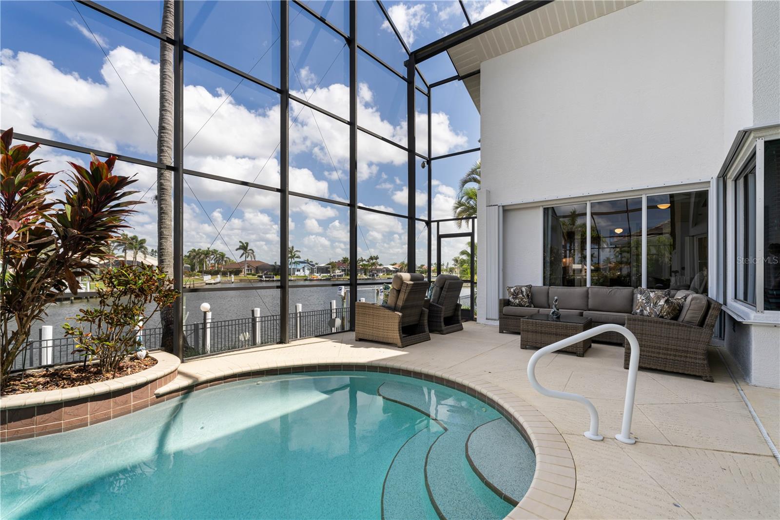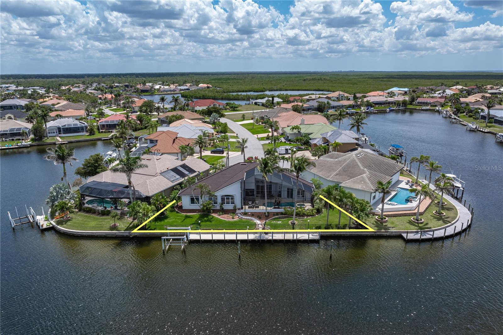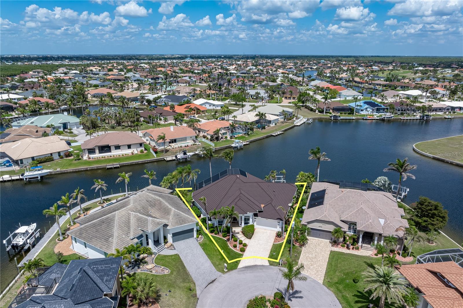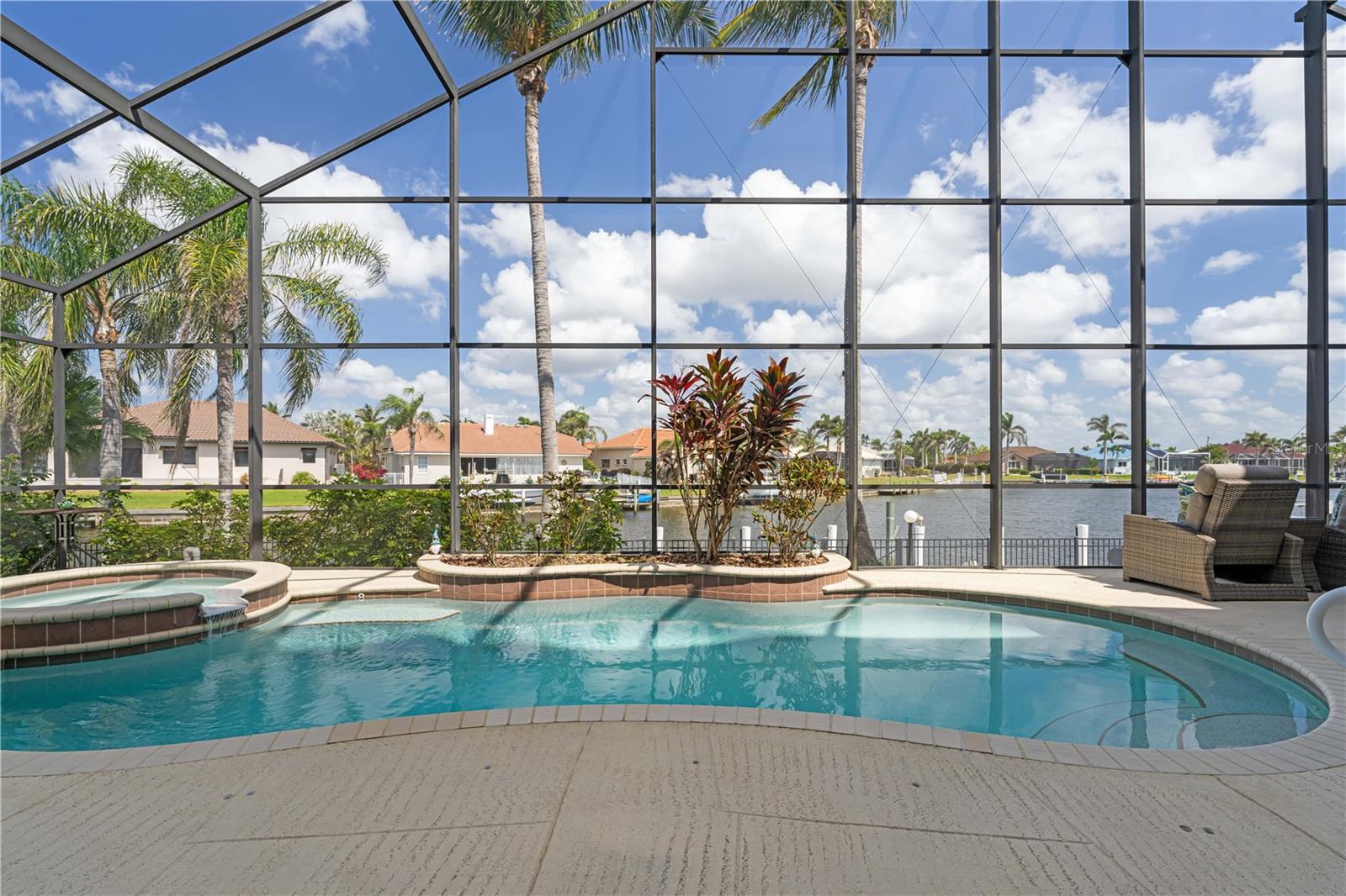 WATERFRONT HOME IN BURNT STORE ISLES ON KEY LOT W/**NEW METAL ROOF** Are you a boater who wants it all? Consider this spacious, 3 bed/3 bath + den waterfront home w/nearly 2,800 sqft of living space, 140 ft of seawall along a wide turning basin, extended concrete dock w/lift & sailboat access to Charlotte Harbor. This custom home by SandStar Construction is located on a key lot w/views of a wide canal basin & intersecting canals. Inside, the open floor plan offers a formal living room, formal dining room & separate family room all situated around the centrally located kitchen. Architectural details include soaring cathedral ceilings, crown molding, & walls of sliding glass doors in living room, family room & master bedroom that allow tons of natural light into the home. The den/home office has glass doors that open to the family room allowing you to stay part of the action while working at your desk. As an added bonus, adjacent to the den & family room is a large craft/hobby area w/an additional built-in desk/workspace. Kitchen has solid surface counters, stainless steel appliances including a built-in oven, w/separate cook top plus plenty cabinet & counters space. The master suite is oversized w/reading area, walk-out access to lanai & a spa-like master bath w/two large walk-in closets, dual sinks, garden tub & tiled walk-in shower w/multiple shower heads. The split bedroom design boasts large guest rooms - each w/an en-suite bath. Disappearing sliding glass doors in the living room & family room open to the lanai extending the living space outside so you can enjoy true, Florida-style, indoor/outdoor living. The large lanai has multiple areas for entertaining, is plumbed for a summer kitchen & features an in-ground, heated pool w/attached spa. Planter on the lanai & tropical landscaping surrounding the home create the illusion of a private oasis on the lanai. The backyard is fenced in for privacy & leads to the extended concrete dock w/boat lift. Water & electric hook-ups are available dockside. Keep your boat docked in your backyard, ready to set off on your latest adventure at a moment's notice. OTHER AMENITIES: attached, two-car garage, hurricane protection, landscape lighting & security system. UPDATES/UPGRADES: NEW water heater (2022), NEW screens cathedral pool cage (2024), NEW roof (2024), pool resurfaced (2023), & NEW pool pump (2021). Home is located in Burnt Store Isles, a deed-restricted waterfront & golfing community w/an optional HOA. The HOA maintains an active social calendar encouraging you to get to know your neighbors. There is also an active boat club. Twin Isles Country Club is located in the center of the community. Practice your short & long game, brush up on your tennis strokes or simply enjoy the social setting. Enjoy the best of everything: boating from your backyard & a round of golf just around the corner at Twin Isles Country Club. Burnt Store Marketplace anchors BSI offering a Publix, Home Depot & several other shops & restaurants. Get all our shopping done without leaving the neighborhood! Take advantage of the active lifestyle available here in Punta Gorda by enjoying the numerous walking & biking trails as well as the many waterfront parks offering everything from playgrounds to pickle ball courts. Start living your Florida dream here. Make an appointment today!