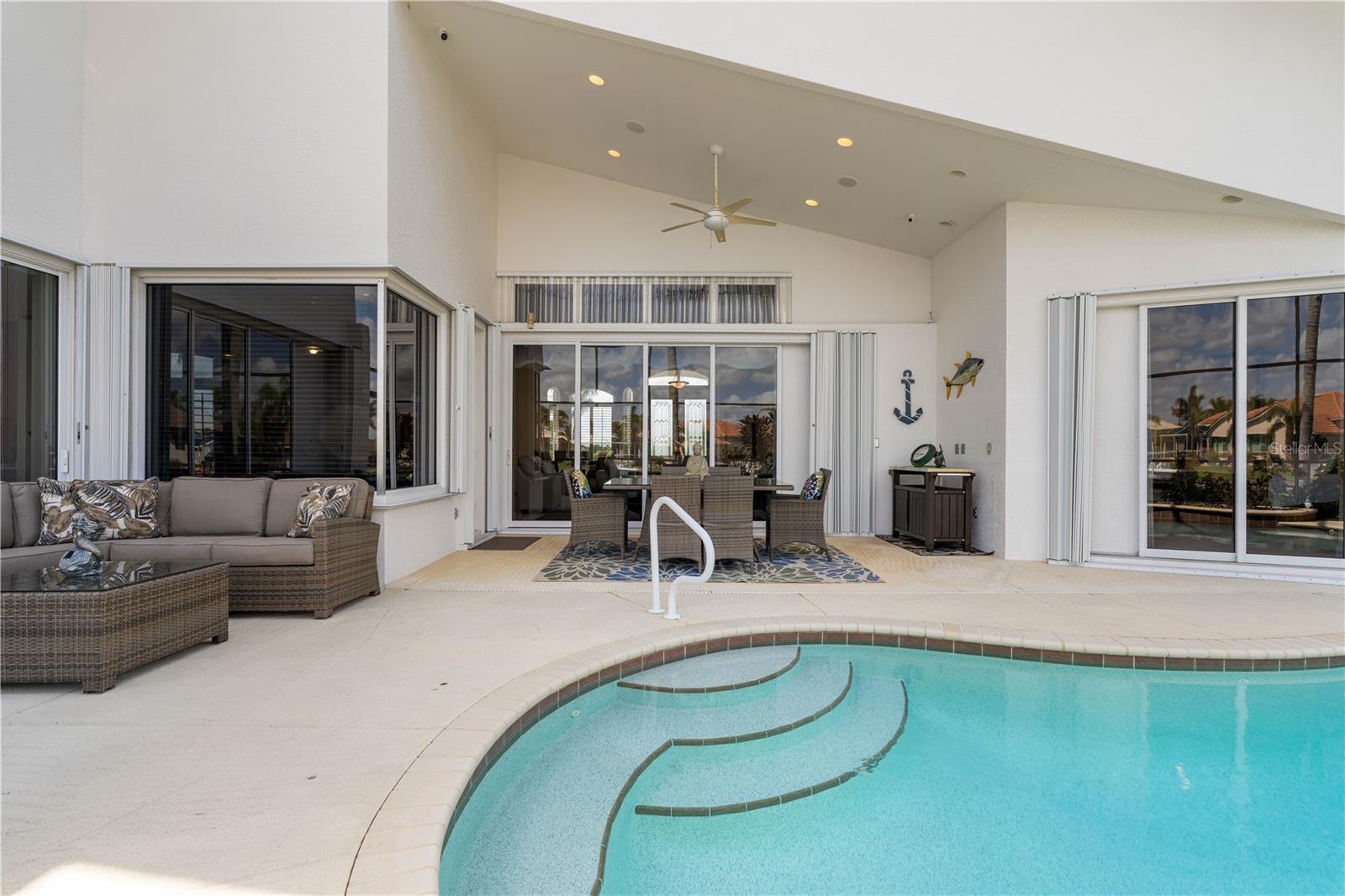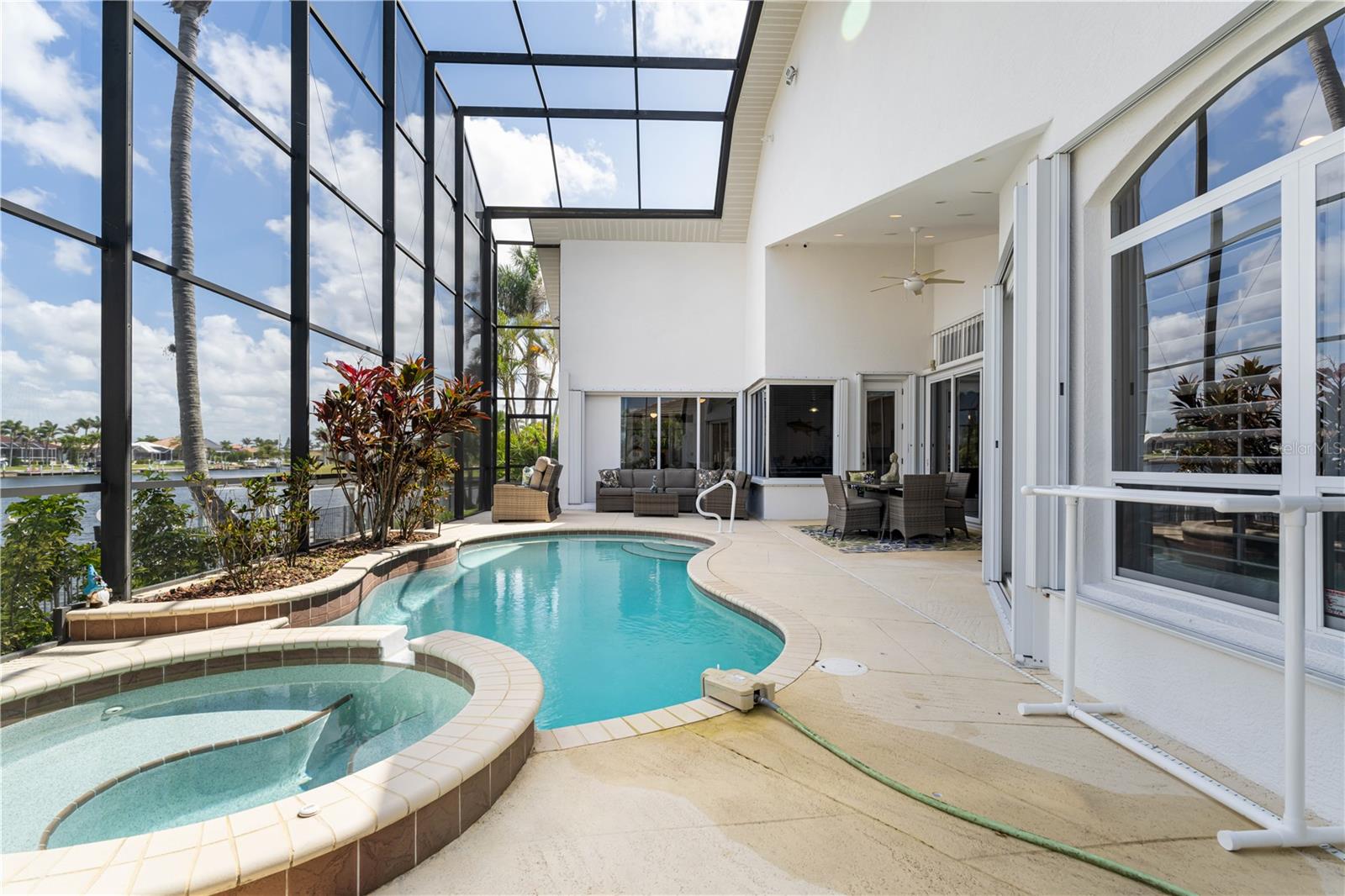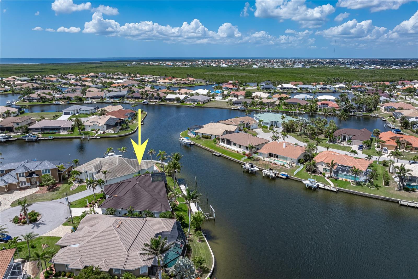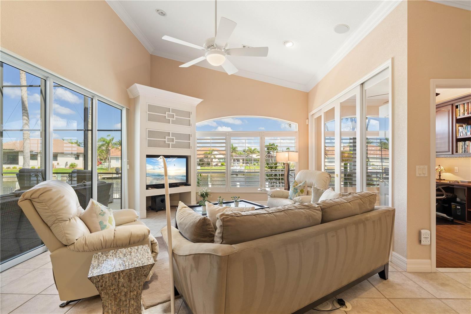 WATERFRONT HOME IN BURNT STORE ISLES ON KEY LOT W/**NEW METAL ROOF** Are you a boater who wants it all? Consider this spacious, 3 bed/3 bath + den waterfront home w/nearly 2,800 sqft of living space, 140 ft of seawall along a wide turning basin, extended concrete dock w/lift & sailboat access to Charlotte Harbor. This custom home by SandStar Construction is located on a key lot w/views of a wide canal basin & intersecting canals. Inside, the open floor plan offers a formal living room, formal dining room & separate family room all situated around the centrally located kitchen. Architectural details include soaring cathedral ceilings, crown molding, & walls of sliding glass doors in living room, family room & master bedroom that allow tons of natural light into the home. The den/home office has glass doors that open to the family room allowing you to stay part of the action while working at your desk. As an added bonus, adjacent to the den & family room is a large craft/hobby area w/an additional built-in desk/workspace. Kitchen has solid surface counters, stainless steel appliances including a built-in oven, w/separate cook top plus plenty cabinet & counters space. The master suite is oversized w/reading area, walk-out access to lanai & a spa-like master bath w/two large walk-in closets, dual sinks, garden tub & tiled walk-in shower w/multiple shower heads. The split bedroom design boasts large guest rooms - each w/an en-suite bath. Disappearing sliding glass doors in the living room & family room open to the lanai extending the living space outside so you can enjoy true, Florida-style, indoor/outdoor living. The large lanai has multiple areas for entertaining, is plumbed for a summer kitchen & features an in-ground, heated pool w/attached spa. Planter on the lanai & tropical landscaping surrounding the home create the illusion of a private oasis on the lanai. The backyard is fenced in for privacy & leads to the extended concrete dock w/boat lift. Water & electric hook-ups are available dockside. Keep your boat docked in your backyard, ready to set off on your latest adventure at a moment's notice. OTHER AMENITIES: attached, two-car garage, hurricane protection, landscape lighting & security system. UPDATES/UPGRADES: NEW water heater (2022), NEW screens cathedral pool cage (2024), NEW roof (2024), pool resurfaced (2023), & NEW pool pump (2021). Home is located in Burnt Store Isles, a deed-restricted waterfront & golfing community w/an optional HOA. The HOA maintains an active social calendar encouraging you to get to know your neighbors. There is also an active boat club. Twin Isles Country Club is located in the center of the community. Practice your short & long game, brush up on your tennis strokes or simply enjoy the social setting. Enjoy the best of everything: boating from your backyard & a round of golf just around the corner at Twin Isles Country Club. Burnt Store Marketplace anchors BSI offering a Publix, Home Depot & several other shops & restaurants. Get all our shopping done without leaving the neighborhood! Take advantage of the active lifestyle available here in Punta Gorda by enjoying the numerous walking & biking trails as well as the many waterfront parks offering everything from playgrounds to pickle ball courts. Start living your Florida dream here. Make an appointment today!