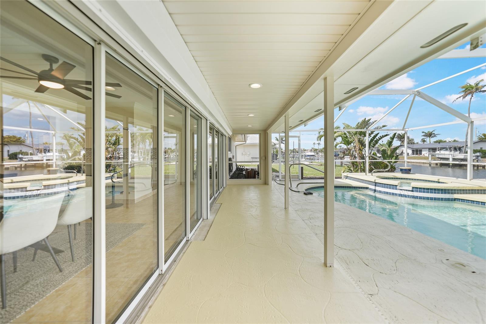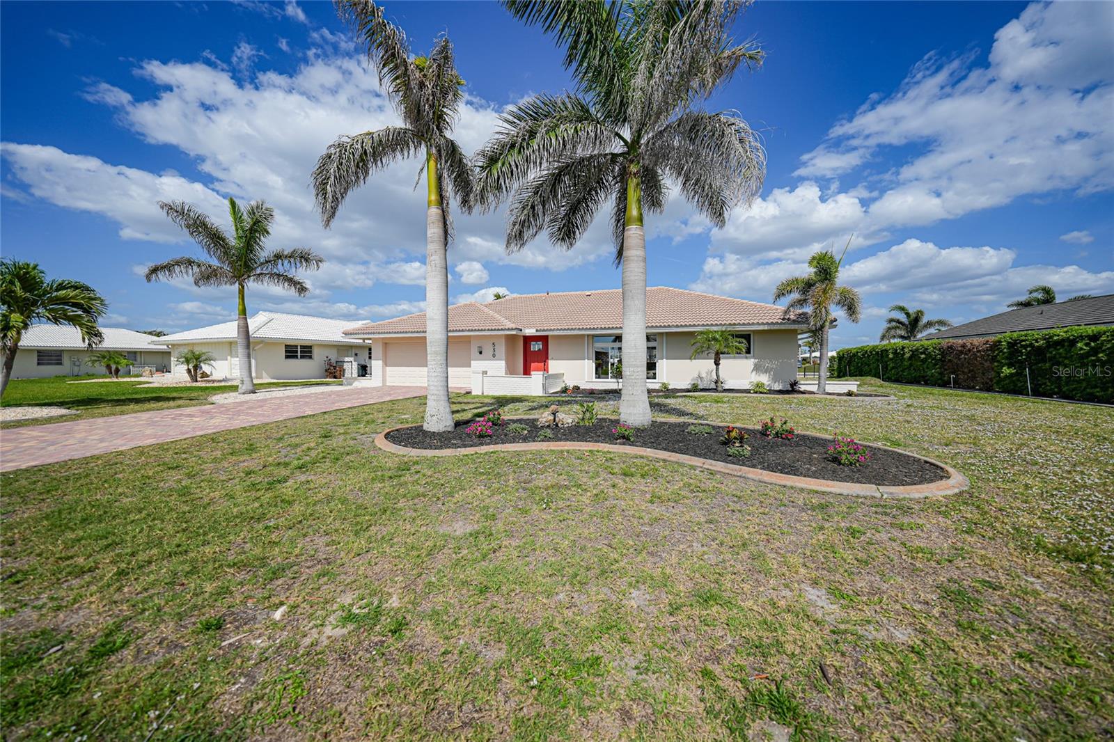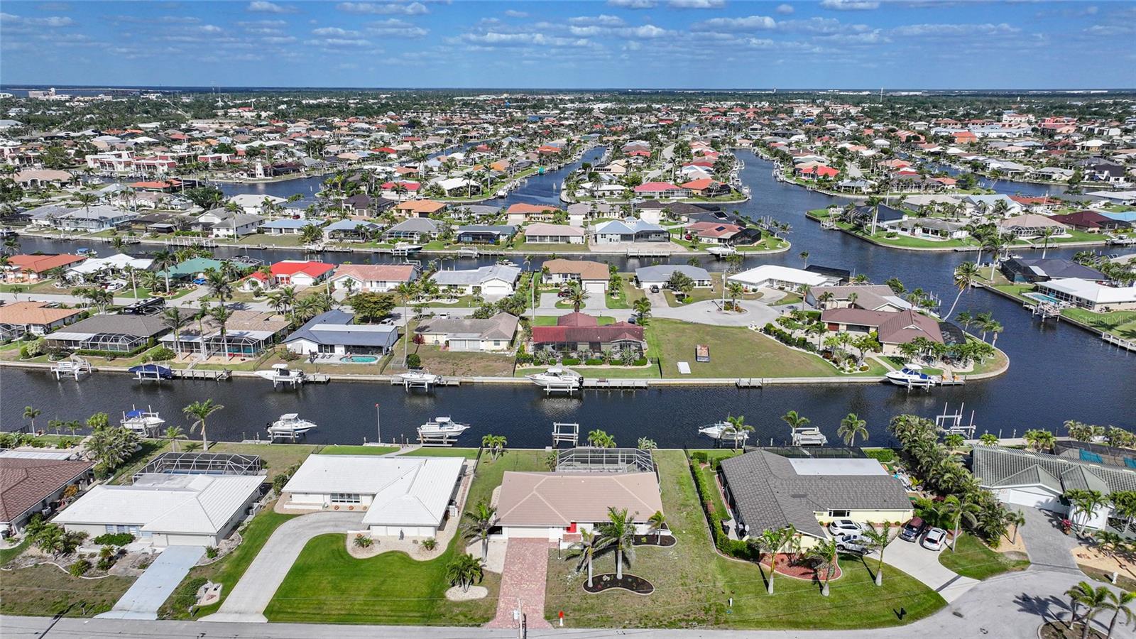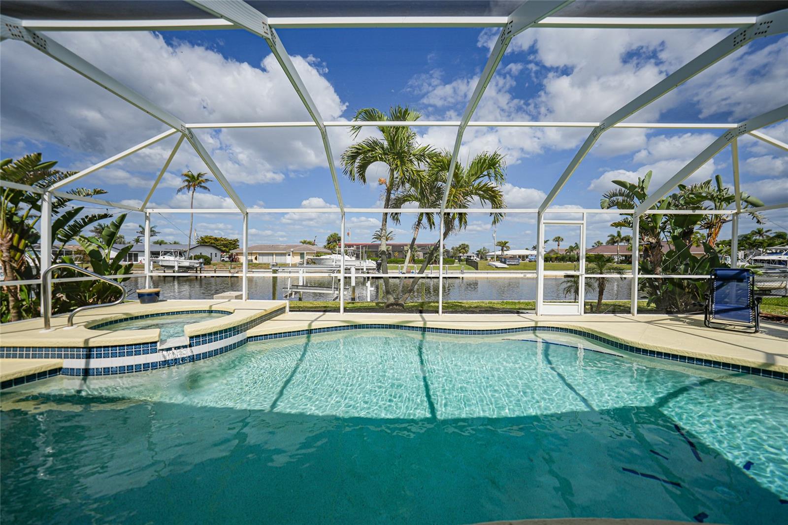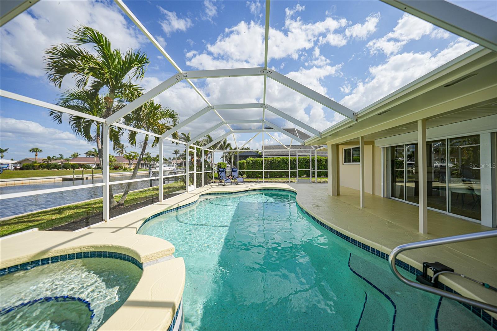 OVERSIZED GULF-ACCESS LOT WITH 99 FEET OF WATERFRONT set on a city-maintained concrete seawall, includes a 10,000 lb Lift & a concrete dock in Punta Gorda Isles. QUICK ACCESS to Charlotte Harbor and then on to the Gulf of America! A true ENTERTAINERS DELIGHT includes an OPEN FLOOR PLAN, upgraded soft-closed cabinetry, MARBLE KITCHEN ISLAND, NEW appliances - this spacious kitchen is a chef’s delight! The kitchen also includes a water filtration system (sink only). The dining room measures approximately 24x11 and includes a built-in bar area, NEW wine refrigerator and an electric fireplace. The home enjoys a split plan with 3 bedrooms, 2 baths and a generous sized 2 car garage (17x20.5). The master suite has a walk-in shower, upgraded cabinetry, his & hers closets and tile floors throughout. GORGEOUS Tile in all bedrooms & baths, NEW DOORS, a cement tile roof on an oversized lot. HEATED POOL & SPA!!! NEW POOL EQUIPMENT 2025. A/C 2023. Hurricane protection with a combination of motorized shutters and windows. This BEAUTIFUL home is on a cul-de-sac with a much sought after eastern facing lanai, allowing you to enjoy your outdoor space all year long. Paver driveway and walkway up to the front door SEALED 2025. Punta Gorda is home to many festivals, a vibrant downtown area, world-class dining, entertainment & the Pickle Plex. Approximately 30 minutes away from several Gulf beaches and easy access to I-75, route 41. Make your exclusive showing today as this home is sure to please! Virtual tour attached.