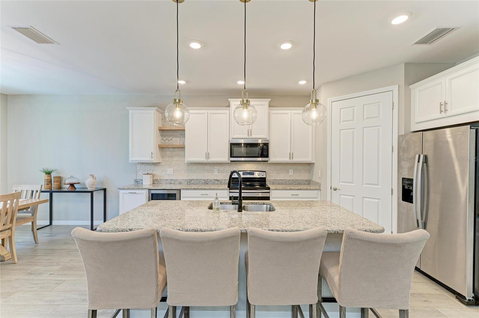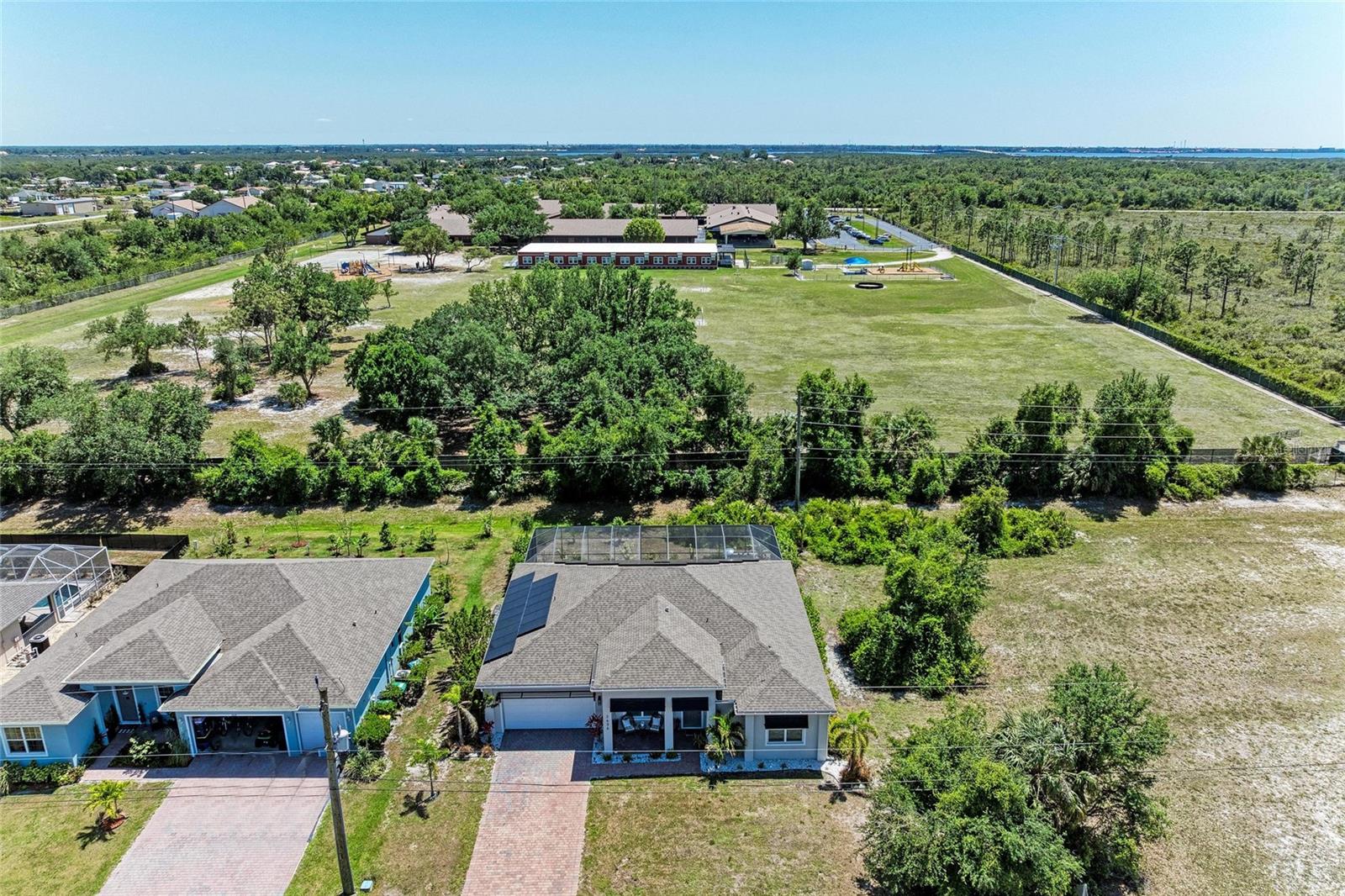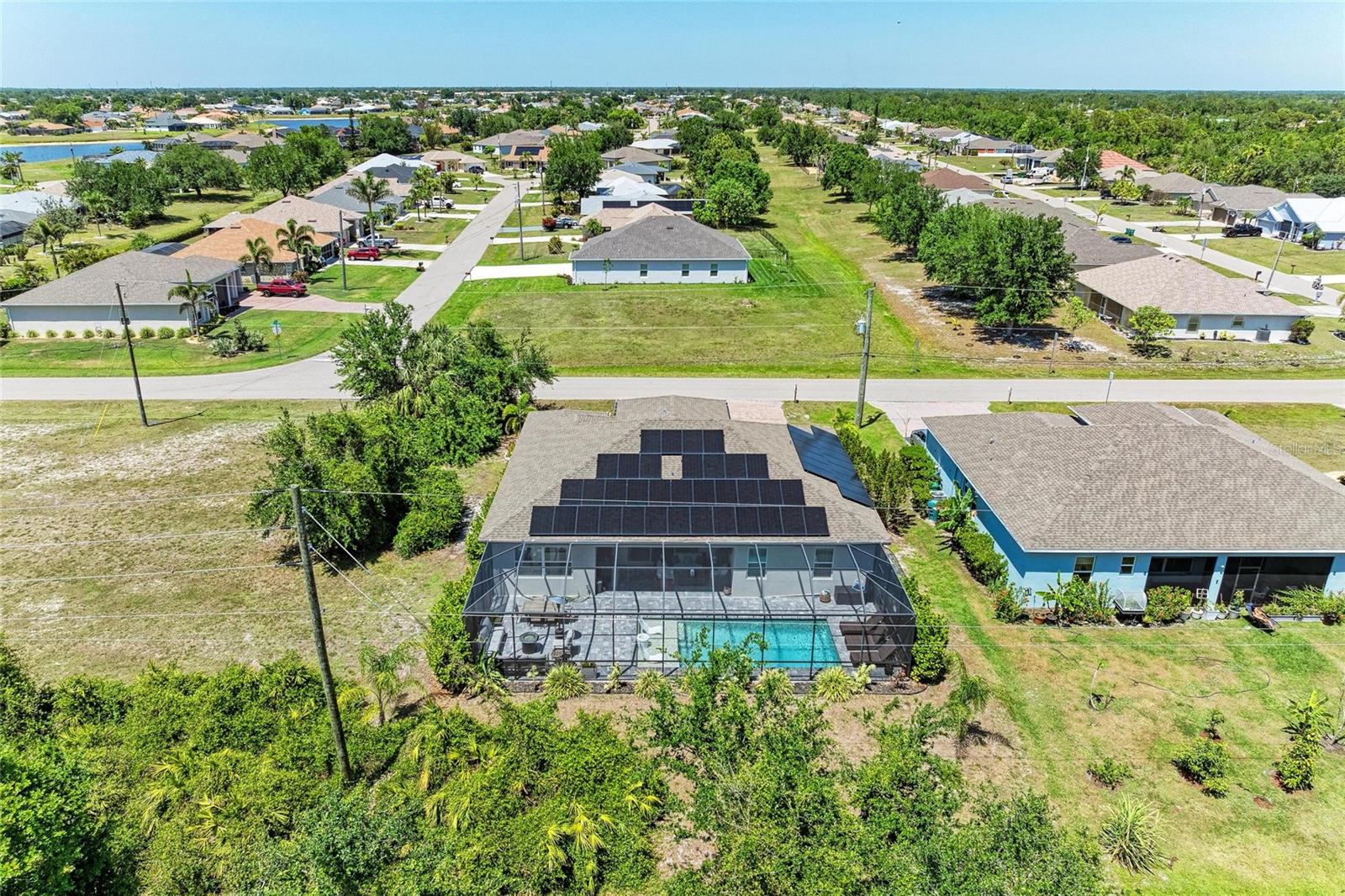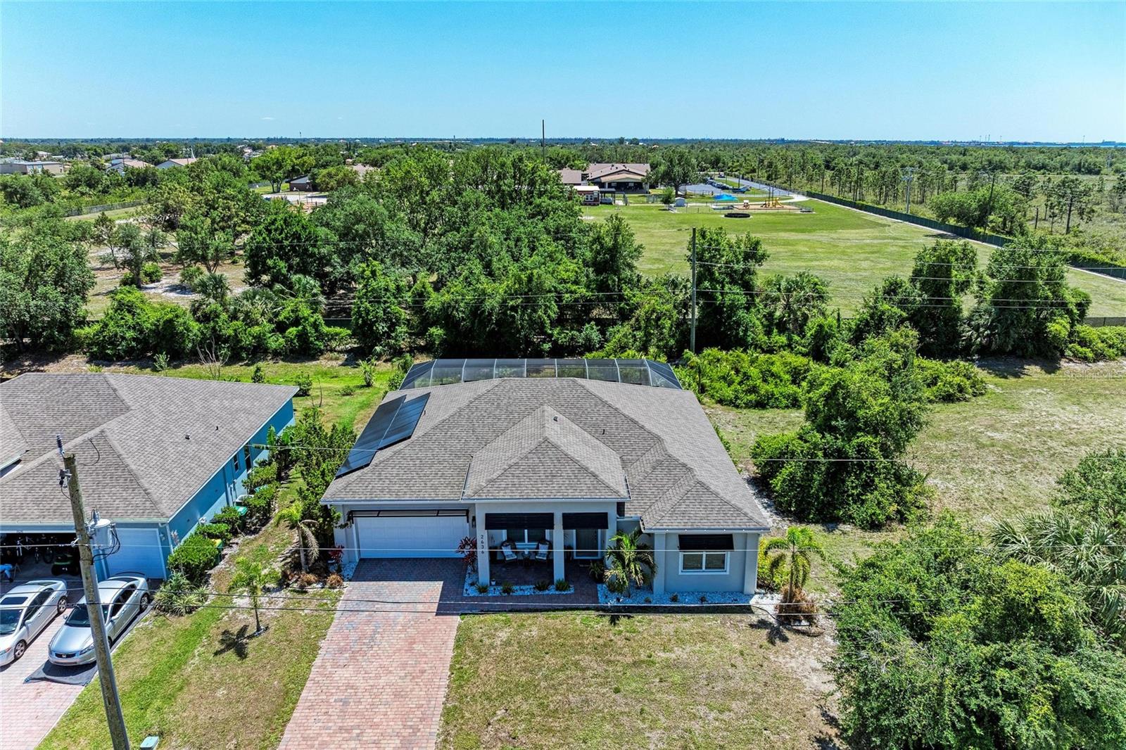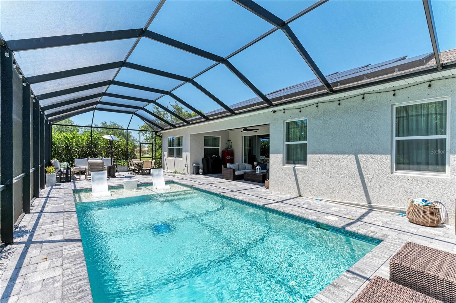 BRING OFFERS! This stunning CUSTOM BUILT (2021) 4 bed, 2 bath HEATED POOL home IN A NON-FLOOD ZONE (ZONE "X") is the perfect place to call your own. Why go through the hassle of building when you can move right in and start enjoying all this beautiful property has INCLUDING 50 SOLAR PANELS (FULLY PAID OFF AT CLOSING) that not only reduce your electric bill but also make you an eco-friendly homeowner! As you step inside, you'll be greeted by HIGH CEILINGS WITH CUSTOM WOOD BEAMS at the entrance, adding a touch of elegance and charm. The open layout of the home creates a spacious and inviting atmosphere, perfect for entertaining guests or simply relaxing with your loved ones. Your kitchen boasts a 9 ft. extension of cabinets, stylish QUARTZ ISLAND, providing ample space for meal prep and casual dining. Additionally, a custom backsplash, WALK IN PANTRY, PENDANT LIGHTING and a wine/beverage fridge. Imagine cooking up your favorite dishes while overlooking the sparkling pool just outside your window. Step outside to your private oasis through SLIDING GLASS DOORS where you can soak up the Florida sun in your own backyard ON YOUR HUGE SCREENED LANAI. Whether you're taking a refreshing dip in the pool or lounging on the patio with a cold drink in hand, this outdoor space is sure to become your favorite spot to unwind! This meticulously maintained house boasts special upgrades that set it apart from the rest - from 8 ft. doors to WHOLE HOUSE WATER FILTER & SOFTENING SYSTEM, stunning quartz countertops and custom lighting and fans throughout. With extra storage space in the AIR CONDITIONED GARAGE, you'll have plenty of room for all your belongings. Located in a quiet and peaceful neighborhood, this home provides the perfect retreat for those seeking tranquility and luxury. Don't miss out on this opportunity to own a truly exceptional property in Deep Creek!! BE SURE TO CLICK THE FULL VIRTUAL TOUR LINKS FOR DETAILS AND ASK FOR A FULL FEATURE SHEET!