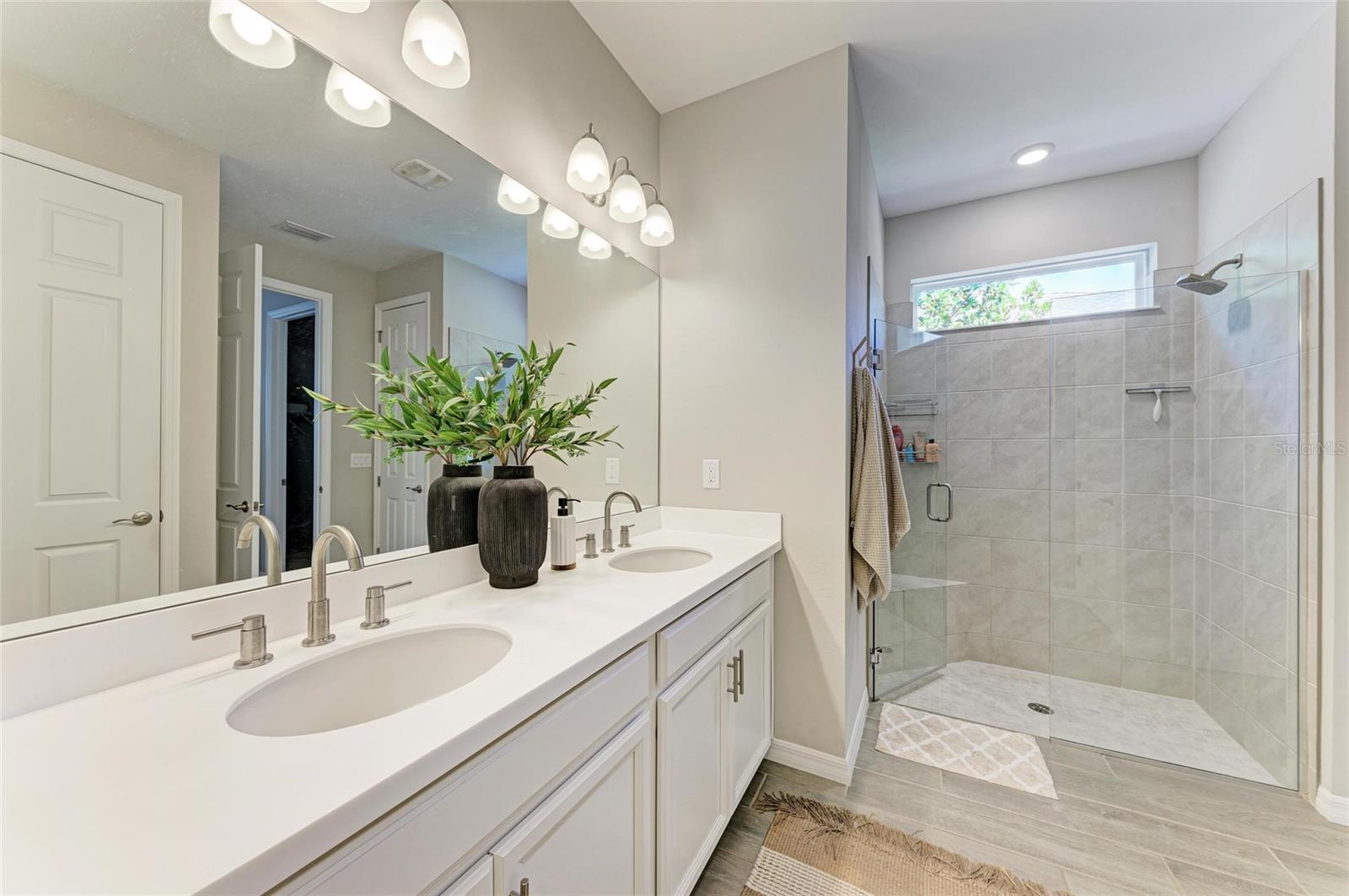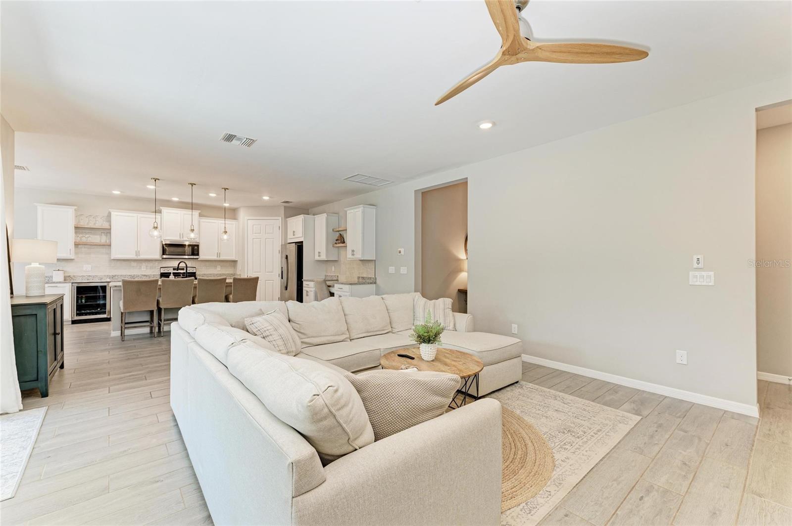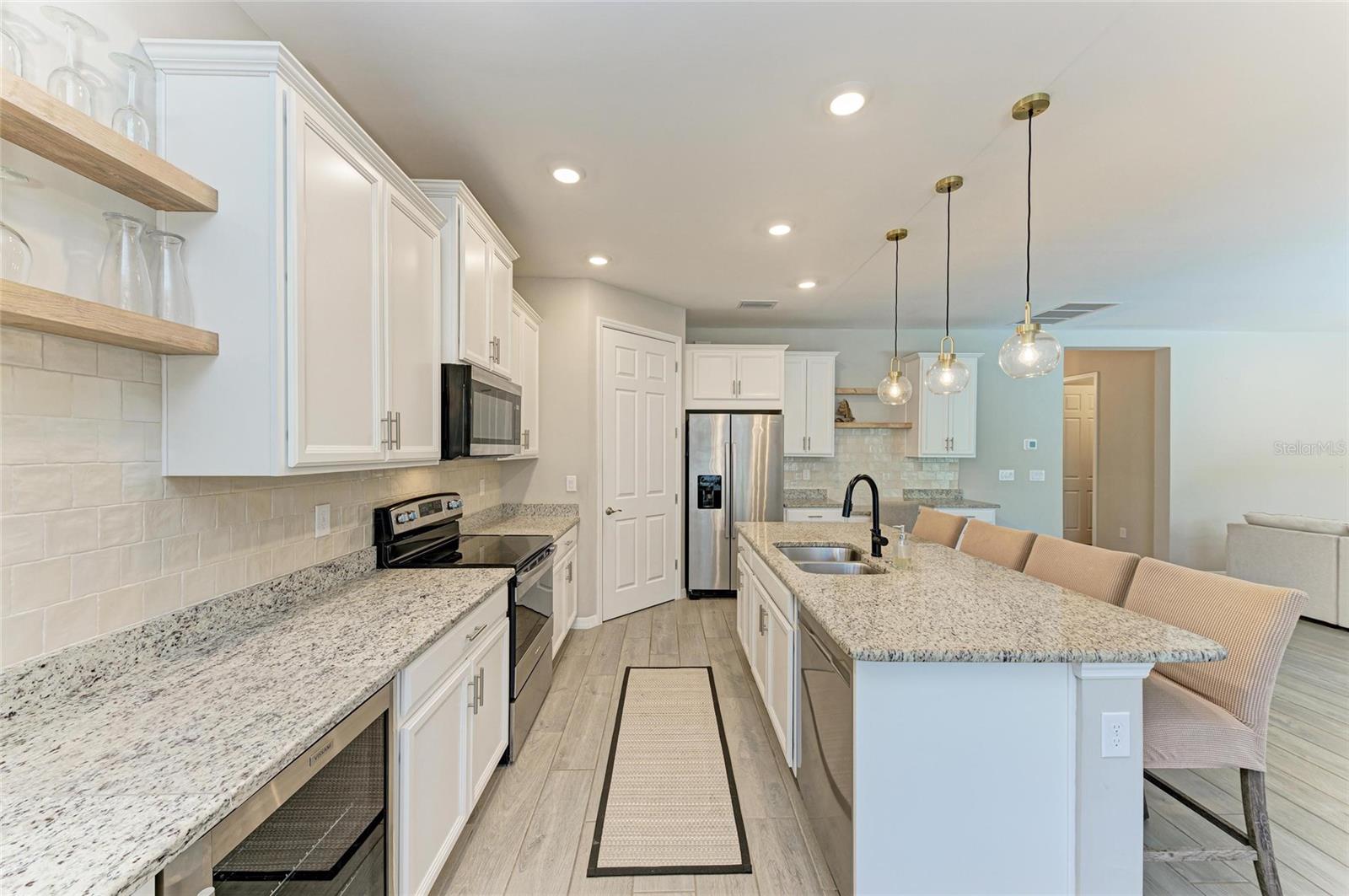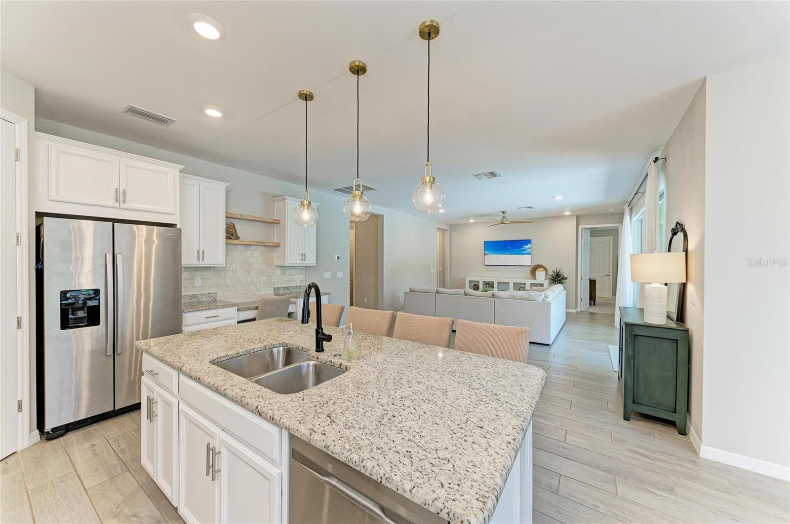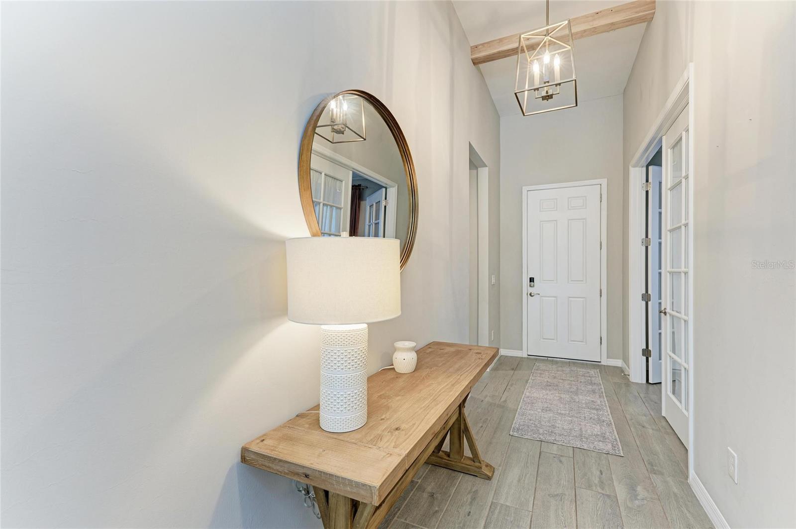 BRING OFFERS! This stunning CUSTOM BUILT (2021) 4 bed, 2 bath HEATED POOL home IN A NON-FLOOD ZONE (ZONE "X") is the perfect place to call your own. Why go through the hassle of building when you can move right in and start enjoying all this beautiful property has INCLUDING 50 SOLAR PANELS (FULLY PAID OFF AT CLOSING) that not only reduce your electric bill but also make you an eco-friendly homeowner! As you step inside, you'll be greeted by HIGH CEILINGS WITH CUSTOM WOOD BEAMS at the entrance, adding a touch of elegance and charm. The open layout of the home creates a spacious and inviting atmosphere, perfect for entertaining guests or simply relaxing with your loved ones. Your kitchen boasts a 9 ft. extension of cabinets, stylish QUARTZ ISLAND, providing ample space for meal prep and casual dining. Additionally, a custom backsplash, WALK IN PANTRY, PENDANT LIGHTING and a wine/beverage fridge. Imagine cooking up your favorite dishes while overlooking the sparkling pool just outside your window. Step outside to your private oasis through SLIDING GLASS DOORS where you can soak up the Florida sun in your own backyard ON YOUR HUGE SCREENED LANAI. Whether you're taking a refreshing dip in the pool or lounging on the patio with a cold drink in hand, this outdoor space is sure to become your favorite spot to unwind! This meticulously maintained house boasts special upgrades that set it apart from the rest - from 8 ft. doors to WHOLE HOUSE WATER FILTER & SOFTENING SYSTEM, stunning quartz countertops and custom lighting and fans throughout. With extra storage space in the AIR CONDITIONED GARAGE, you'll have plenty of room for all your belongings. Located in a quiet and peaceful neighborhood, this home provides the perfect retreat for those seeking tranquility and luxury. Don't miss out on this opportunity to own a truly exceptional property in Deep Creek!! BE SURE TO CLICK THE FULL VIRTUAL TOUR LINKS FOR DETAILS AND ASK FOR A FULL FEATURE SHEET!