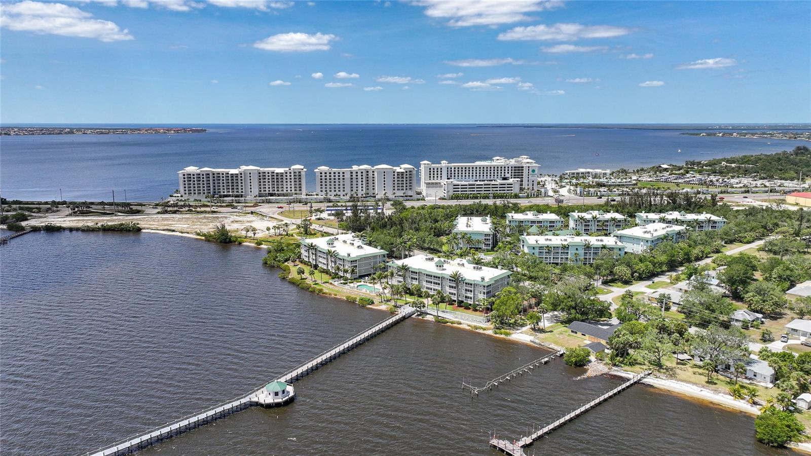 Experience luxurious waterfront living in this beautifully updated, handicap-accessible condo featuring 3 bedrooms, 2.5 bathrooms, and approximately 1,759 square feet of well-designed living space. Enjoy stunning views of Charlotte Harbor from the comfort of your screened-in balcony—perfect for morning coffee or sunset cocktails. The interior showcases a comfortable blend of carpet and tile flooring, complemented by automatic remote-controlled, room-darkening blinds. Recent upgrades include a new hot water heater and a newer refrigerator, adding to the home’s modern appeal. The spacious primary suite features sunrise water views whether looking out the two spacious windows or the access to the lanai from your own bedroom, custom with electric blinds with its own remote. In the master bathroom you will find dual vanity sinks, and a large walk-in shower. A guest bedroom offers a private ensuite with a tub/shower combo, while a third spacious bedroom with a queen size bed is served by a convenient nearby half bath. An in-unit laundry room with a full-size washer and dryer enhances day-to-day convenience. Additional highlights include a community pool/jacuzzi, and a kayak launch for exploring the scenic waterways. Located just a short walk from the new Sun Seeker Resort and minutes from downtown Punta Gorda, this condo is close to vibrant dining, shopping, and entertainment. You'll also enjoy easy access to some of the area’s most beautiful beaches, including Englewood, Boca Grande, and Venice Beach. This property offers the perfect blend of comfort, accessibility, and coastal charm—ideal for year-round living or a relaxing seasonal retreat.