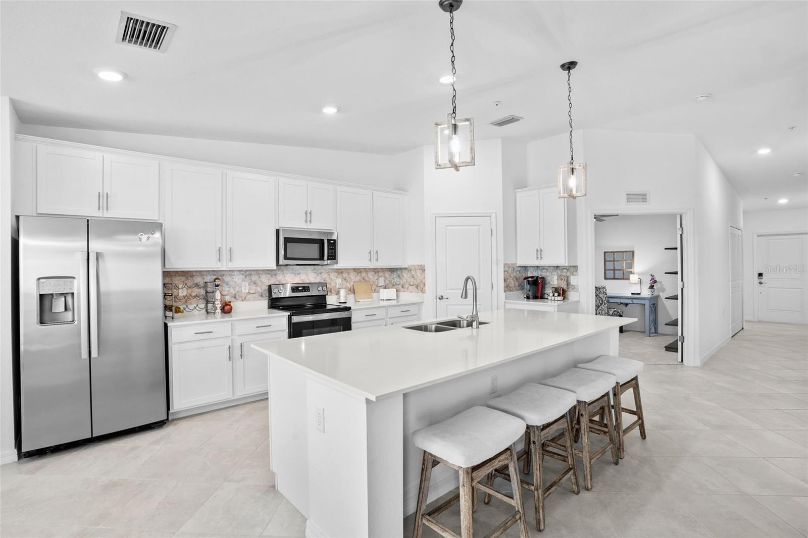 PRICE ADJUSTMENT- SELLER SAYS GET IT SOLD! Live the Florida Resort Lifestyle, GOLF MEMBERSHIP Included! Welcome to Heritage Landing Golf & Country Club, where this TURNKEY Veranda Diangelo condo is ready for you to move right in and start enjoying the good life! Ideally situated near one of the community’s sparkling pools, this home offers breathtaking water views, vibrant sunrises, and a front-row seat to Punta Gorda’s stunning sunsets – all from your two private lanais. Yes, two! Step inside and feel right at home with light-filled, open-concept living. The spacious kitchen boasts quartz countertops, stylish shaker cabinets, a large island, and two pantries for extra storage. The primary suite features a king bed, and an ensuite bathroom with quartz vanity and double sinks, and a walk-in shower. The Guest bedroom with a queen bed has a full bath just steps away. Need a space to work or unwind? The den offers a dedicated desk area and a comfy sofa, ideal for remote work or relaxation. Outside your door, adventure awaits. Enjoy the areas best golf, challenge your friends to a match of pickleball, unwind with a massage at the spa, or sip cocktails at the tiki bar by the resort-style pool. Dine in style at the clubhouse’s fine restaurant and get involved in fun events hosted by the full-time Lifestyles Director. Located just minutes from I-75, this slice of paradise is also conveniently close to two airports, making travel a breeze. Plus, the charming waterfront town of Punta Gorda offers chef-owned restaurants, fishing, boating, and exciting weekly festivals. This is the lifestyle you've been dreaming of – don’t wait!